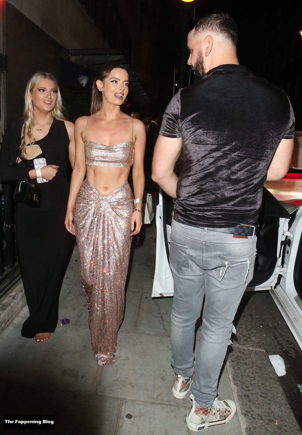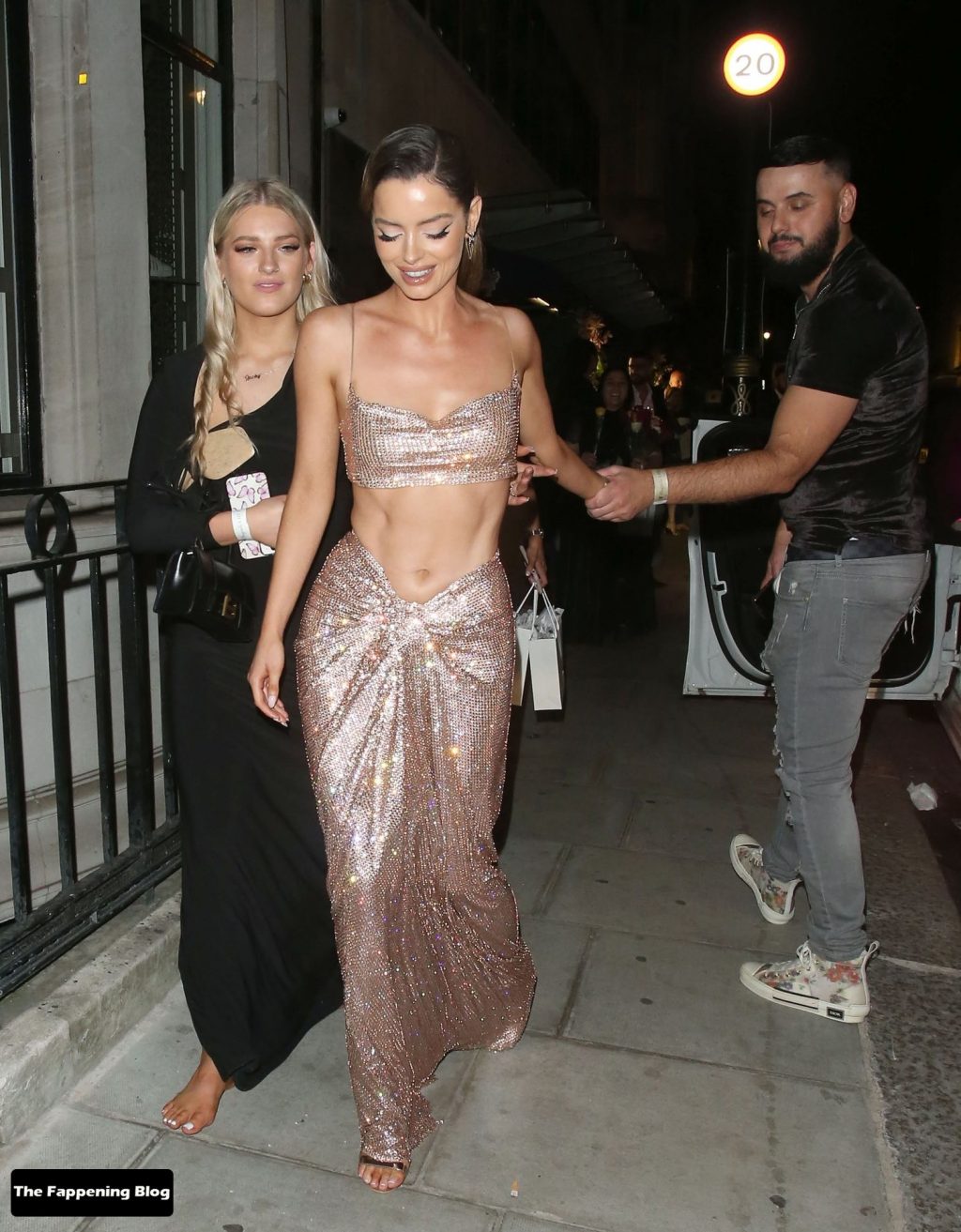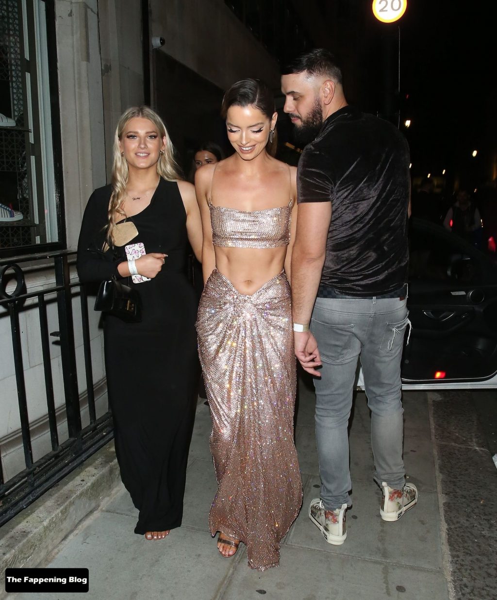 Maura é vista com um deslumbrante traje cintilante ao deixar a festa pós-NTA no Bagatelle London em Mayfair, 09/09/2021.