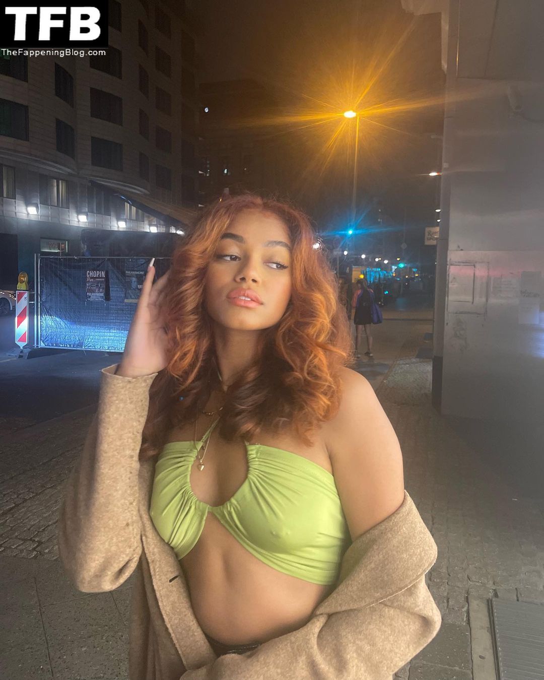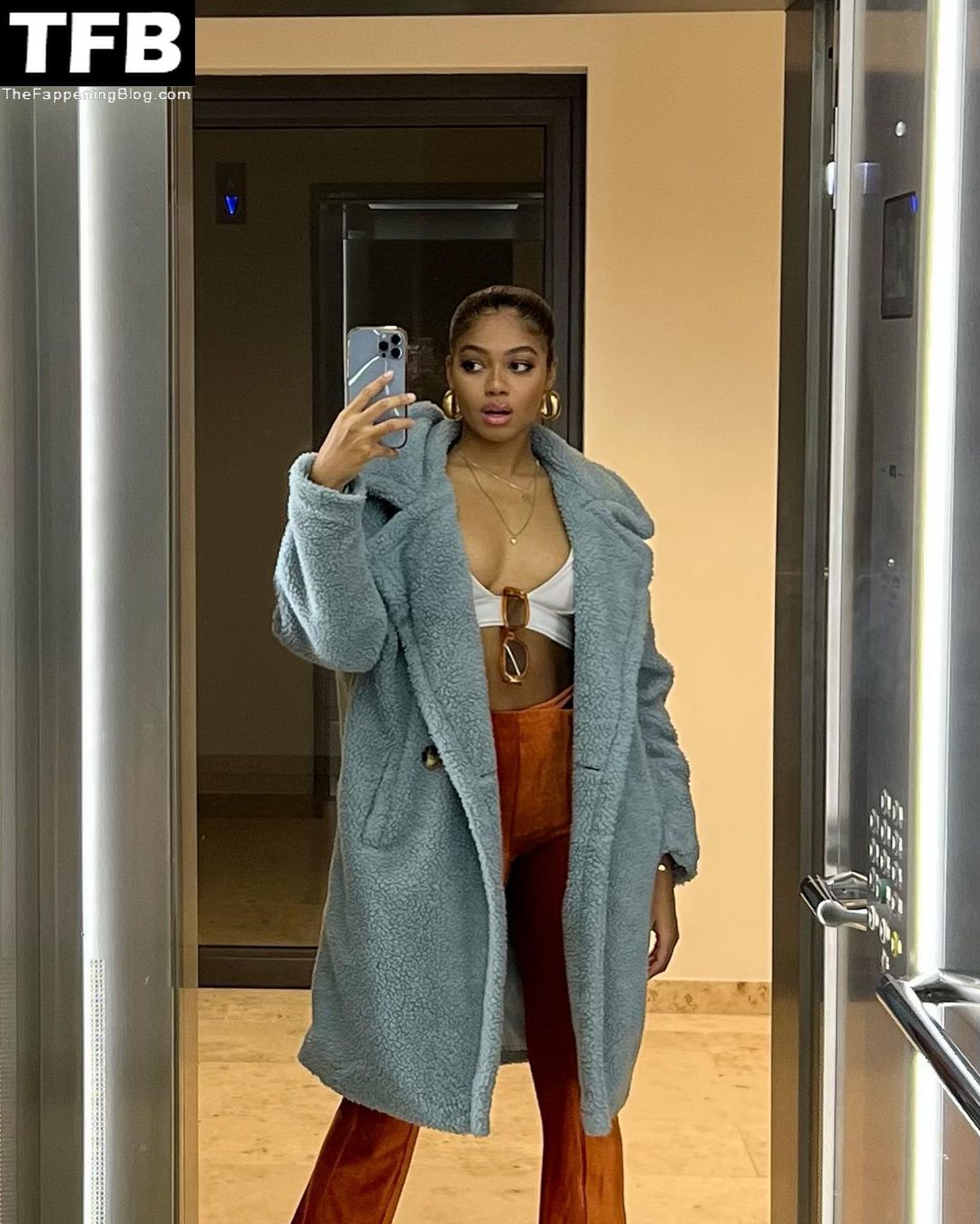 Veja as fotos de modelagem e redes sociais de Maureen Ugodi, mostrando suas pernas e seios sexy com um piercing no mamilo.