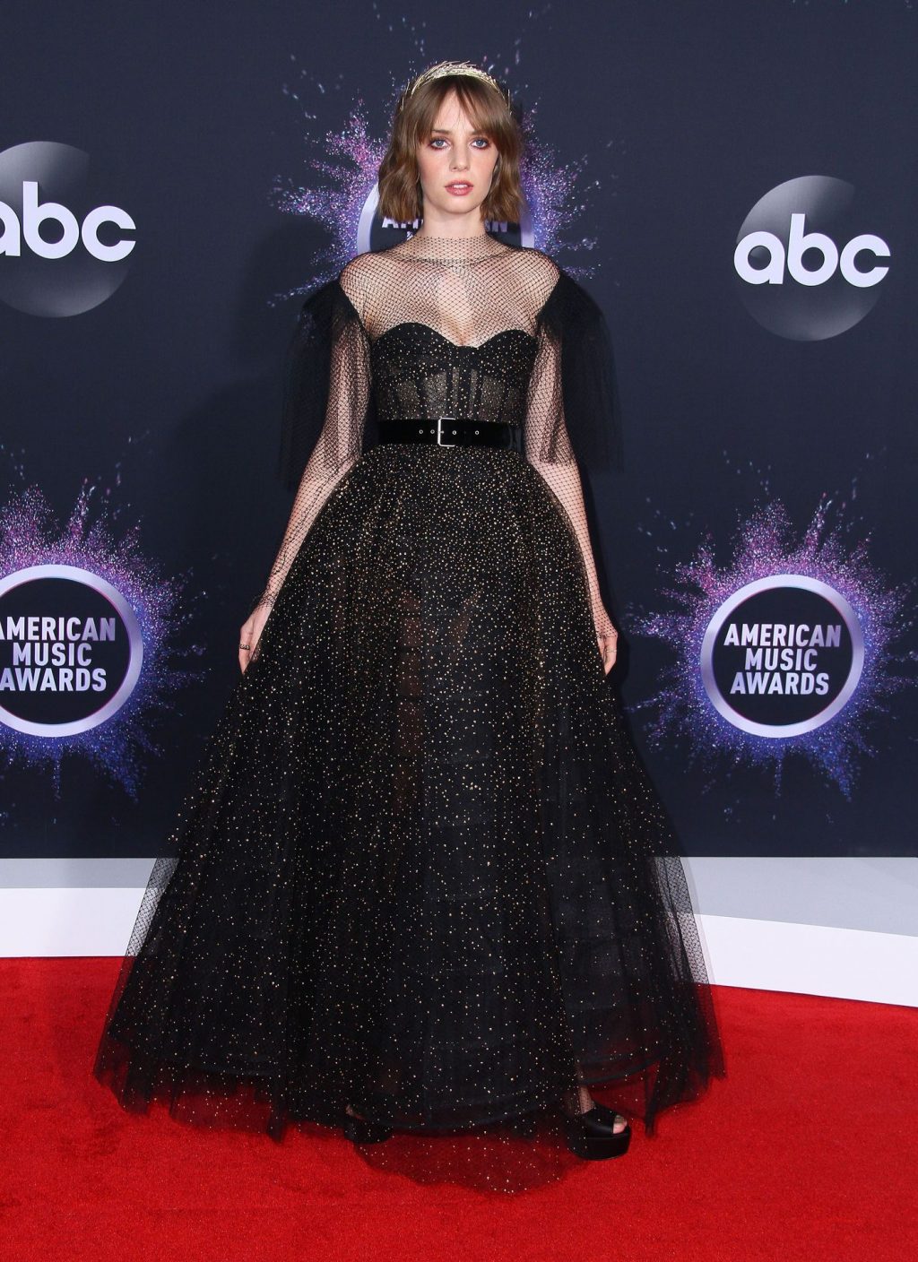 Cantora, atriz e modelo Maya Hawke foi vista no American Music Awards 2019 no Microsoft Theater em Los Angeles, Califórnia, no dia 24 de novembro de 2019. Ela frequentemente mostra decote em eventos, desta vez seus seios estavam quase escondidos.