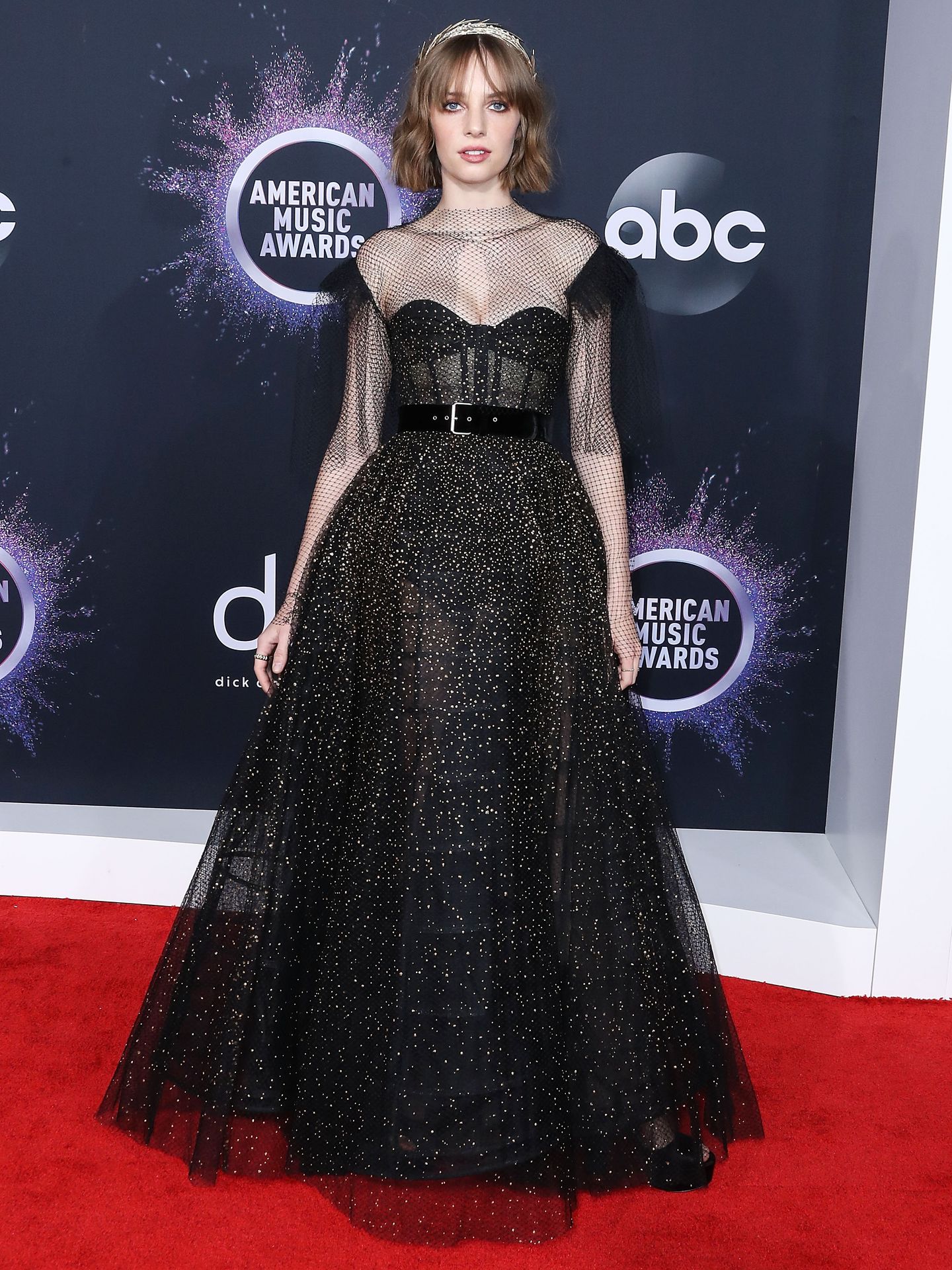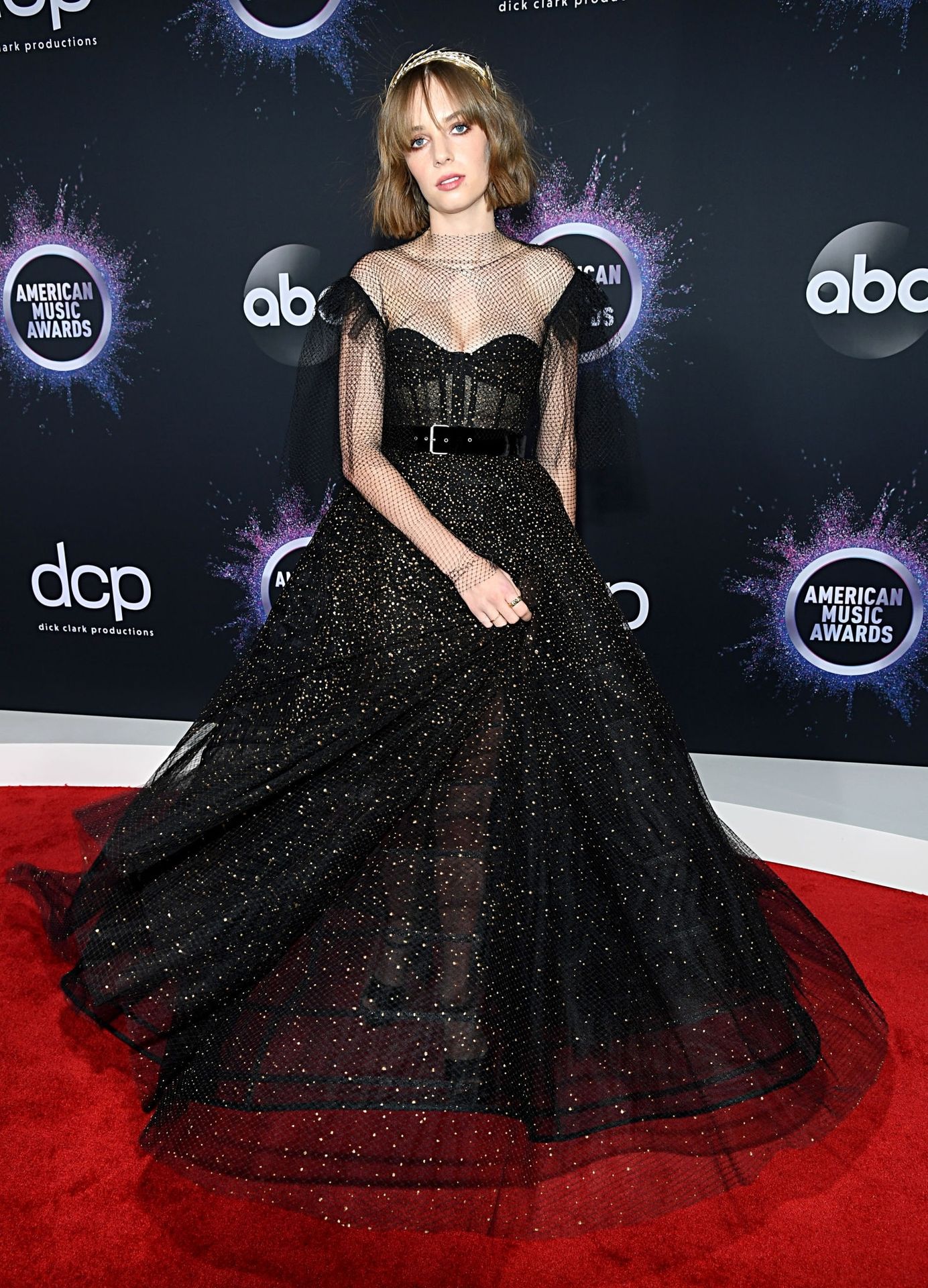 Cantora, atriz e modelo Maya Hawke foi vista no American Music Awards 2019 no Microsoft Theater em Los Angeles, Califórnia, no dia 24 de novembro de 2019. Ela frequentemente mostra decote em eventos, desta vez seus seios estavam quase escondidos.