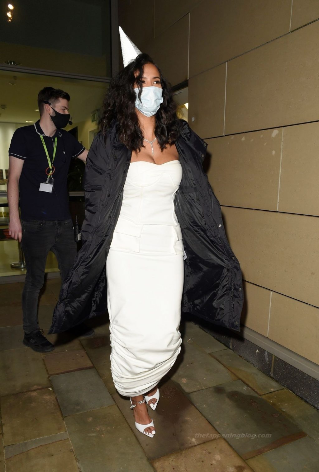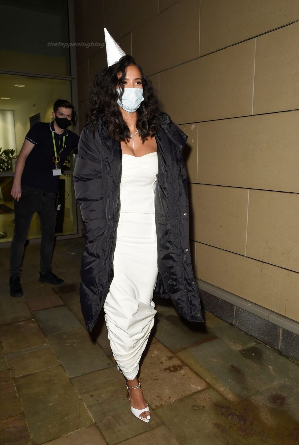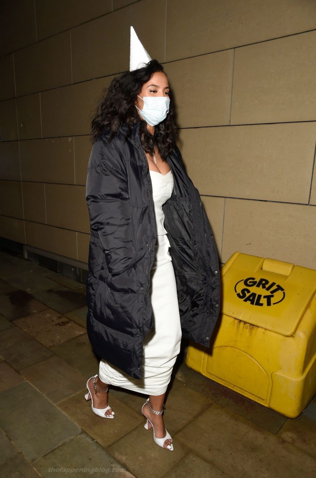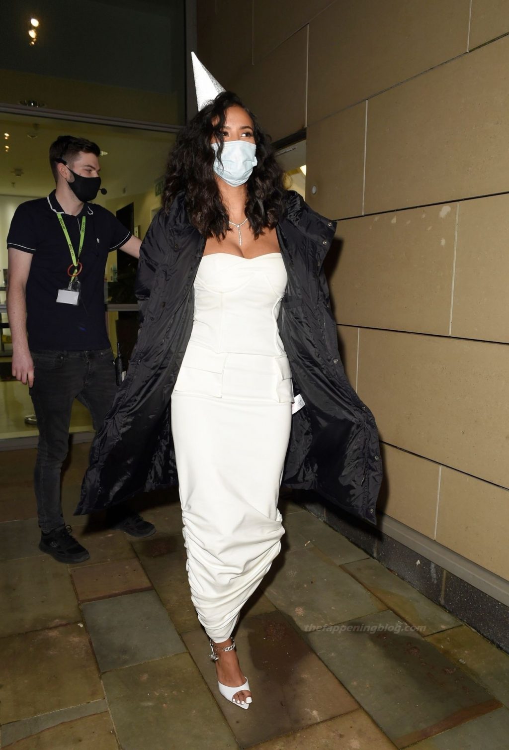 Maya Jama foi fotografada saindo da Media City em Manchester após o show de Ano Novo na BBC, 31/12/2020.