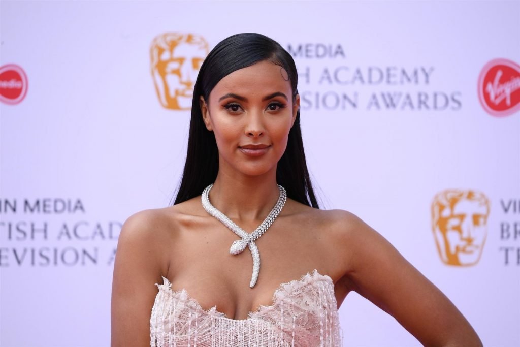 A apresentadora britânica de TV e rádio Maya Jama exibiu seu decote usando um lindo vestido branco no Virgin Media British Academy Television Awards no Royal Festival Hall em Londres, 12/05/2019.