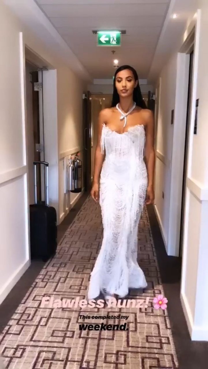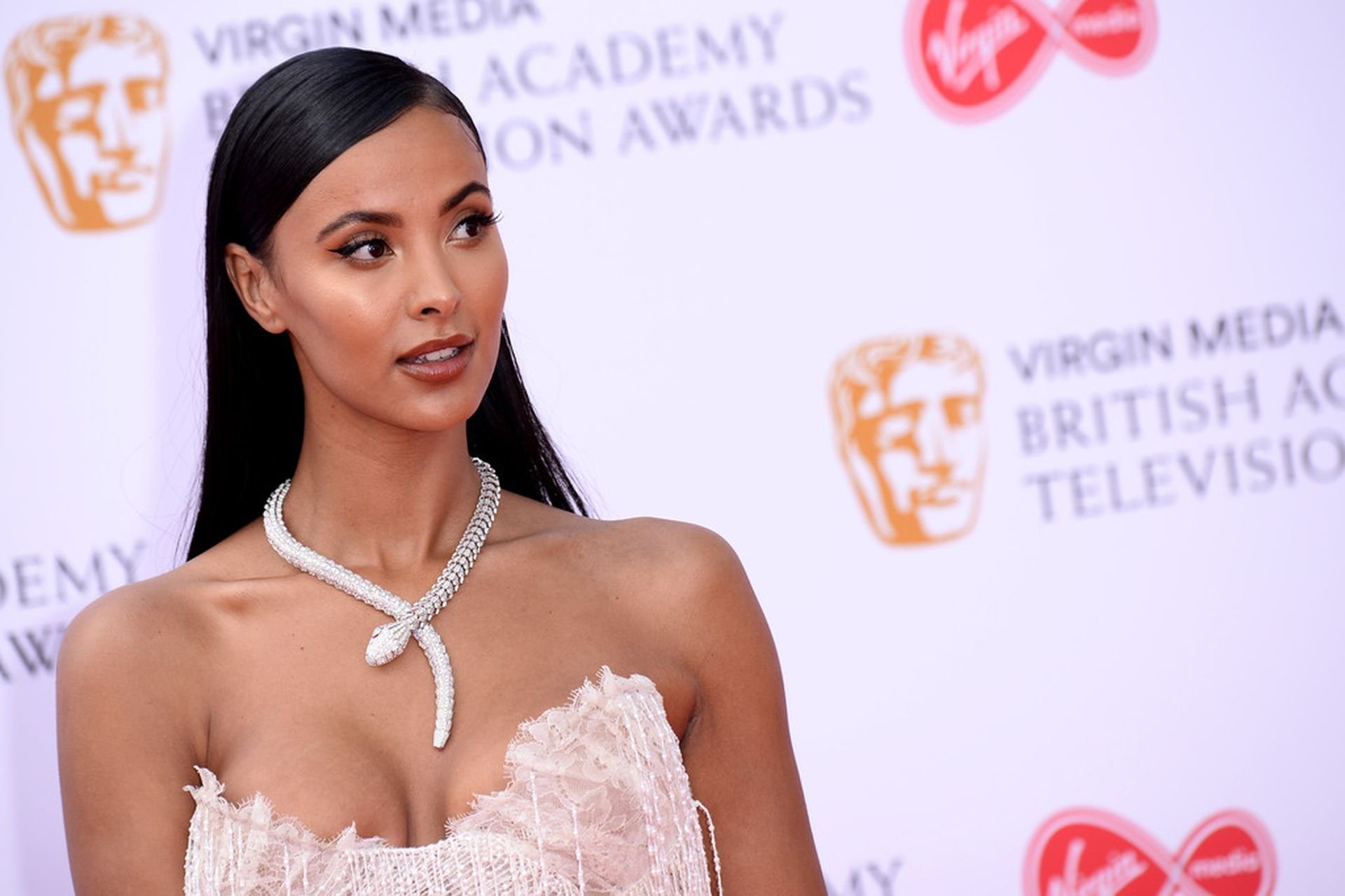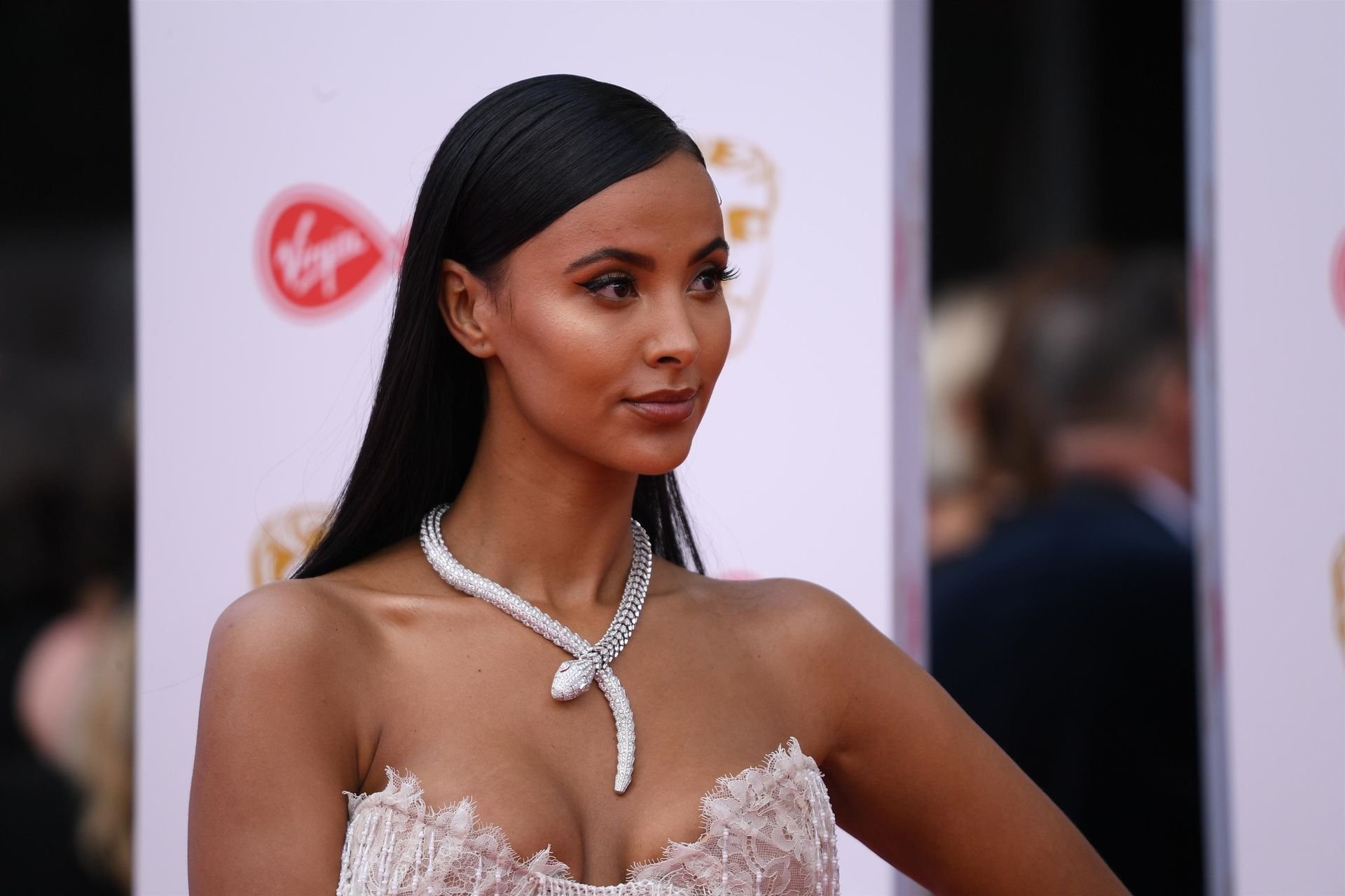 A apresentadora britânica de TV e rádio Maya Jama exibiu seu decote usando um lindo vestido branco no Virgin Media British Academy Television Awards no Royal Festival Hall em Londres, 12/05/2019.