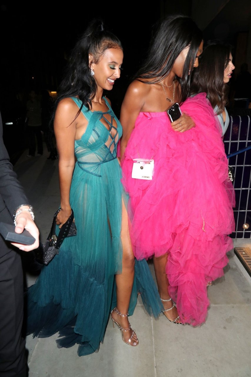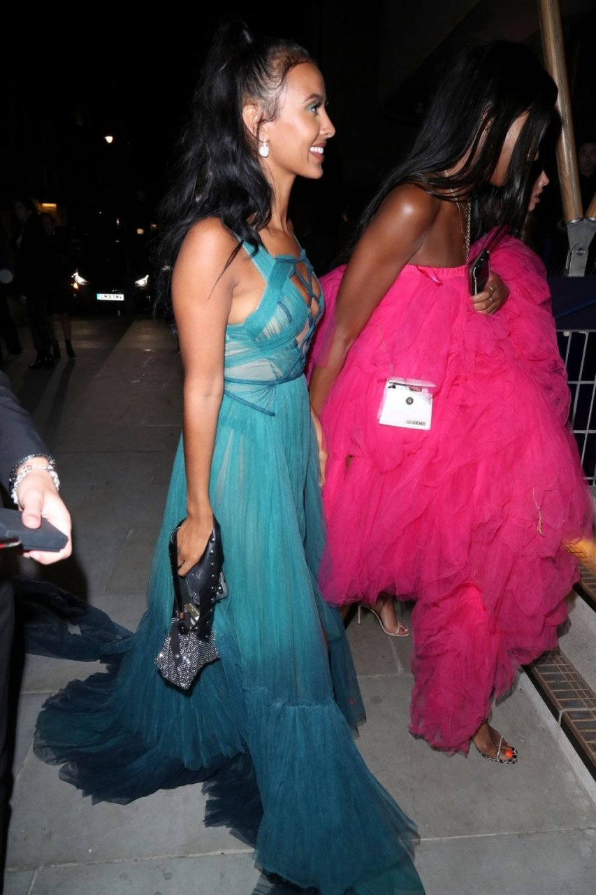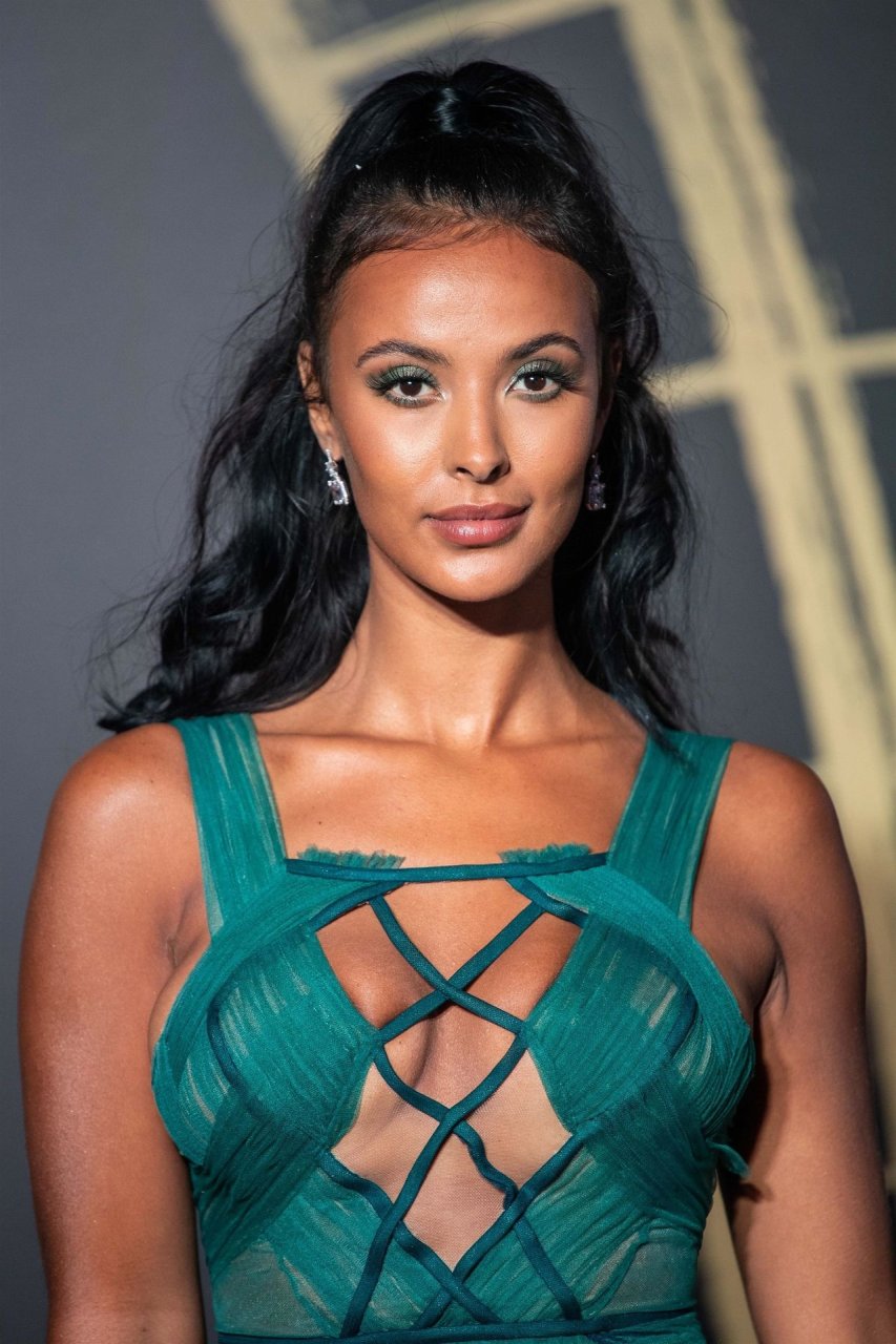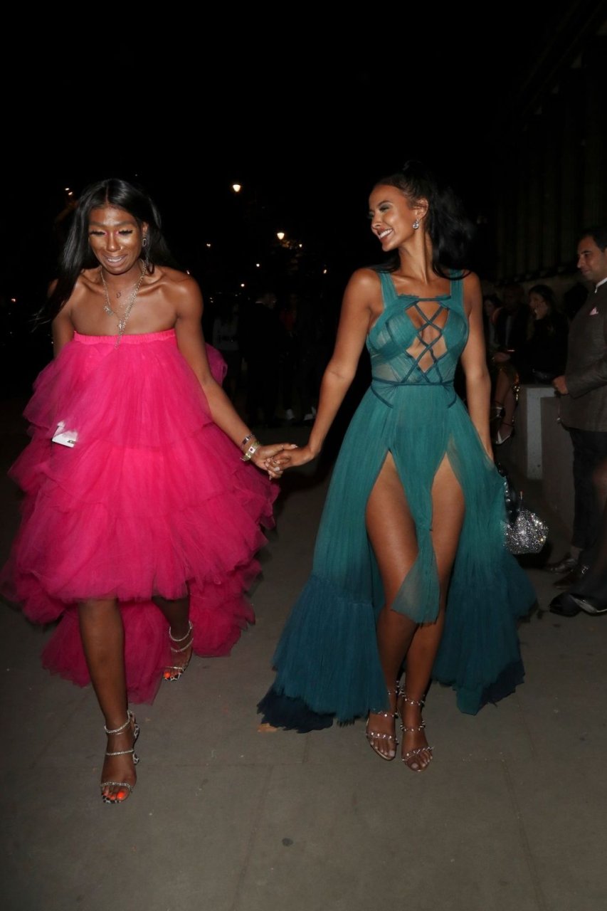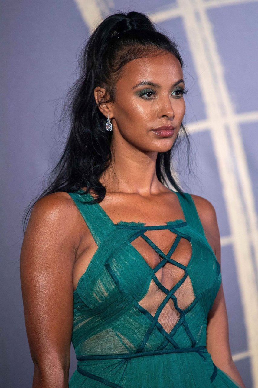 Apresentadora de TV sexy Maya Jama participa do Fashion For Relief no Museu Britânico em Londres, Inglaterra, 14/09/2019. Maya exibiu suas pernas deslumbrantes posando com um vestido leve de noite, revelando sua calcinha.