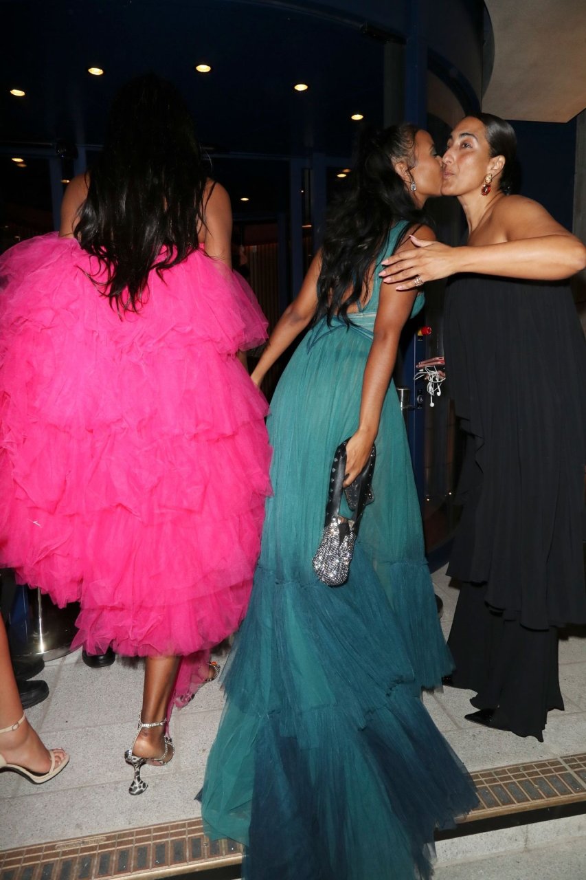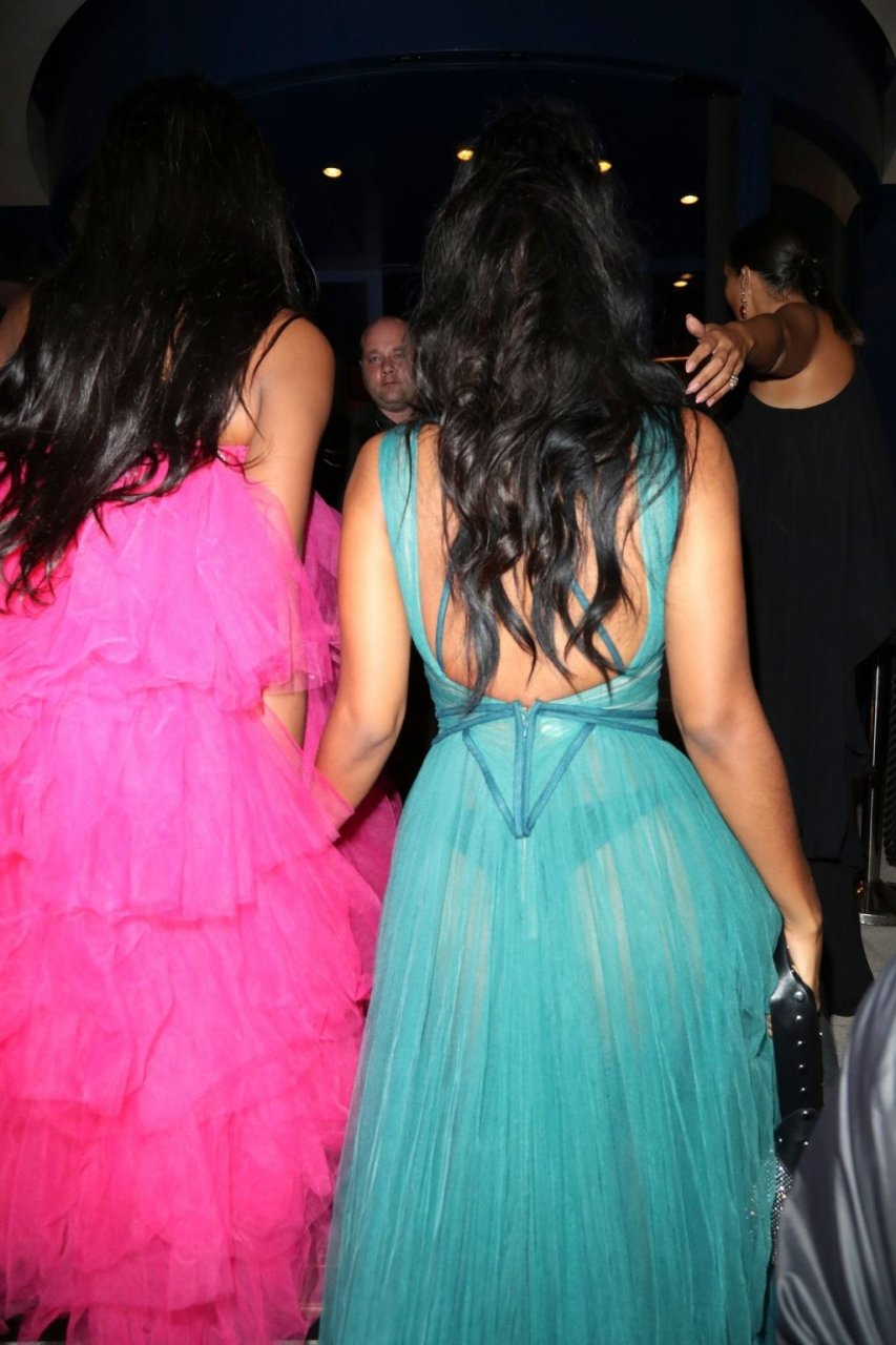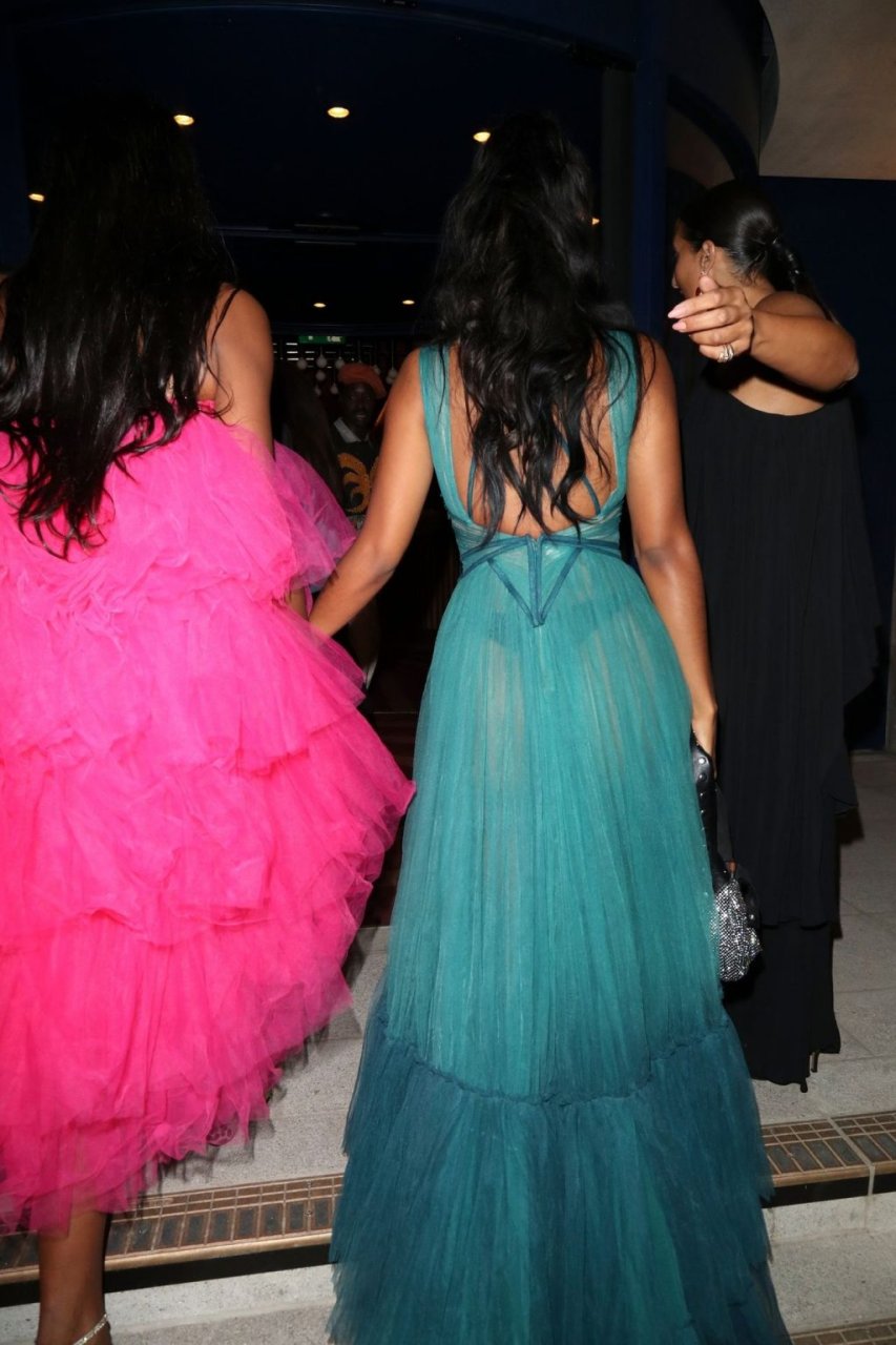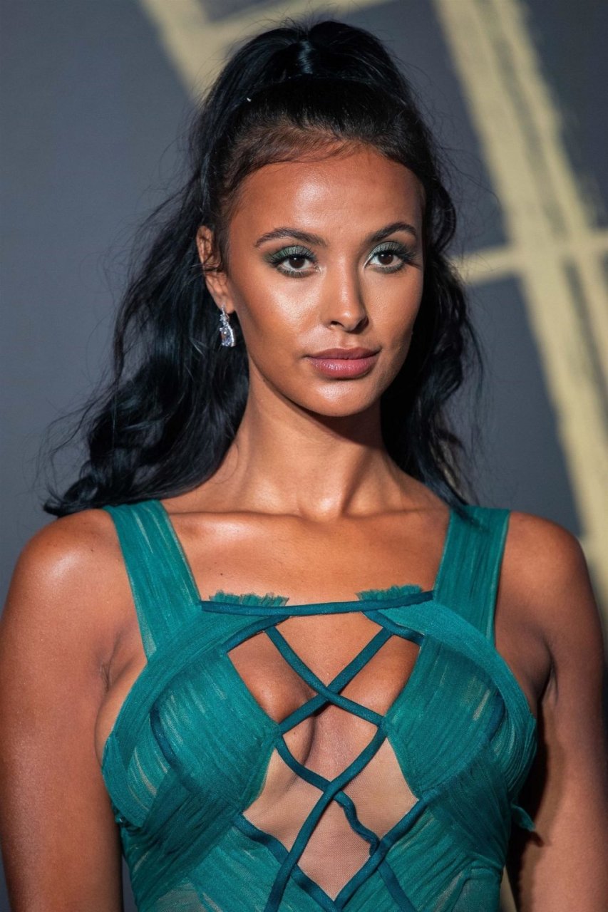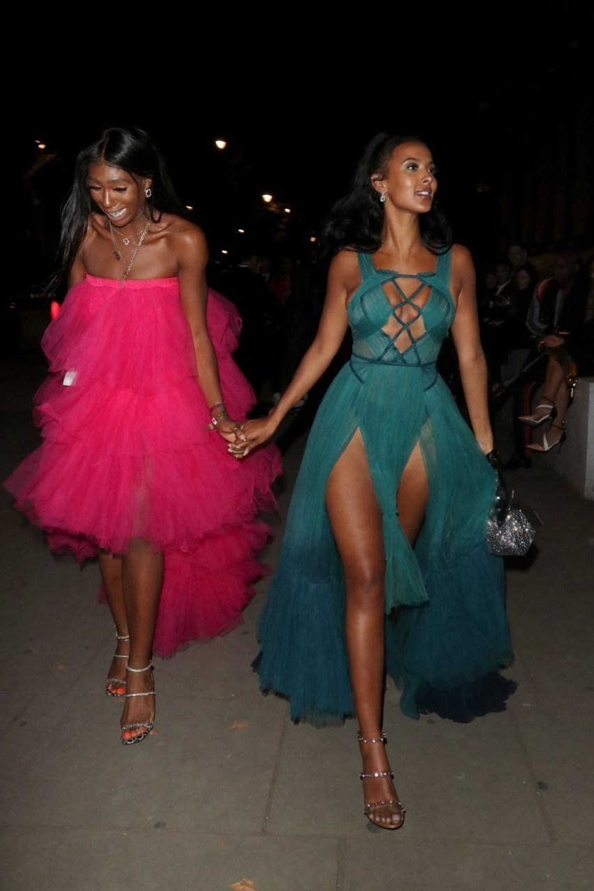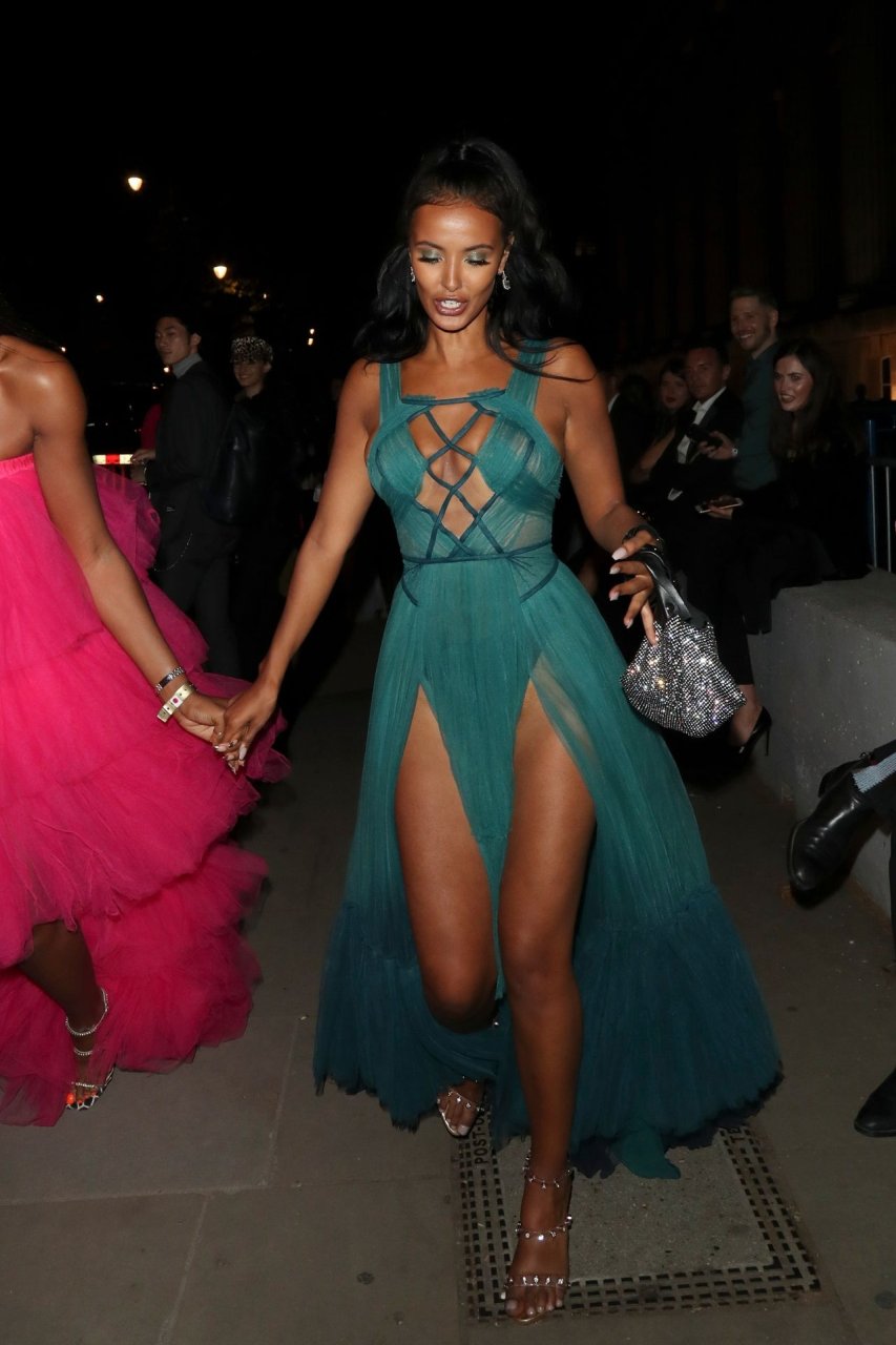Apresentadora de TV sexy Maya Jama participa do Fashion For Relief no Museu Britânico em Londres, Inglaterra, 14/09/2019. Maya exibiu suas pernas deslumbrantes posando com um vestido leve de noite, revelando sua calcinha.