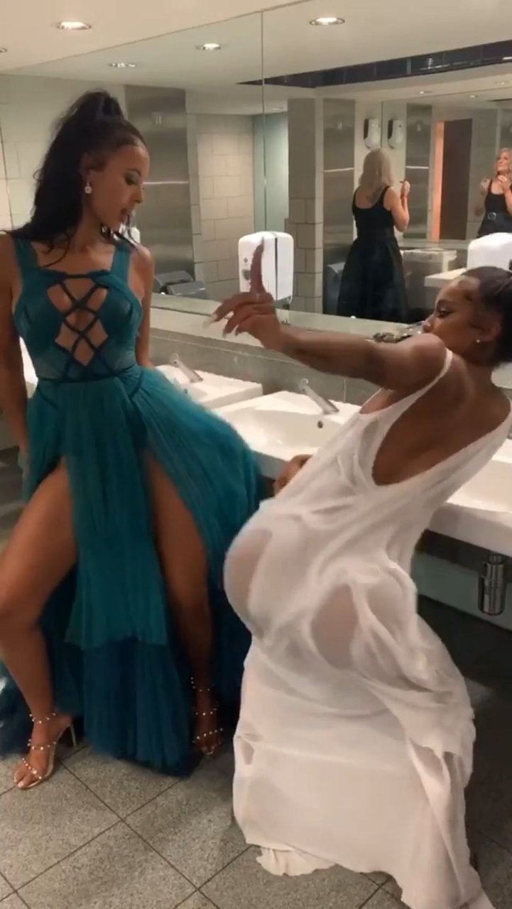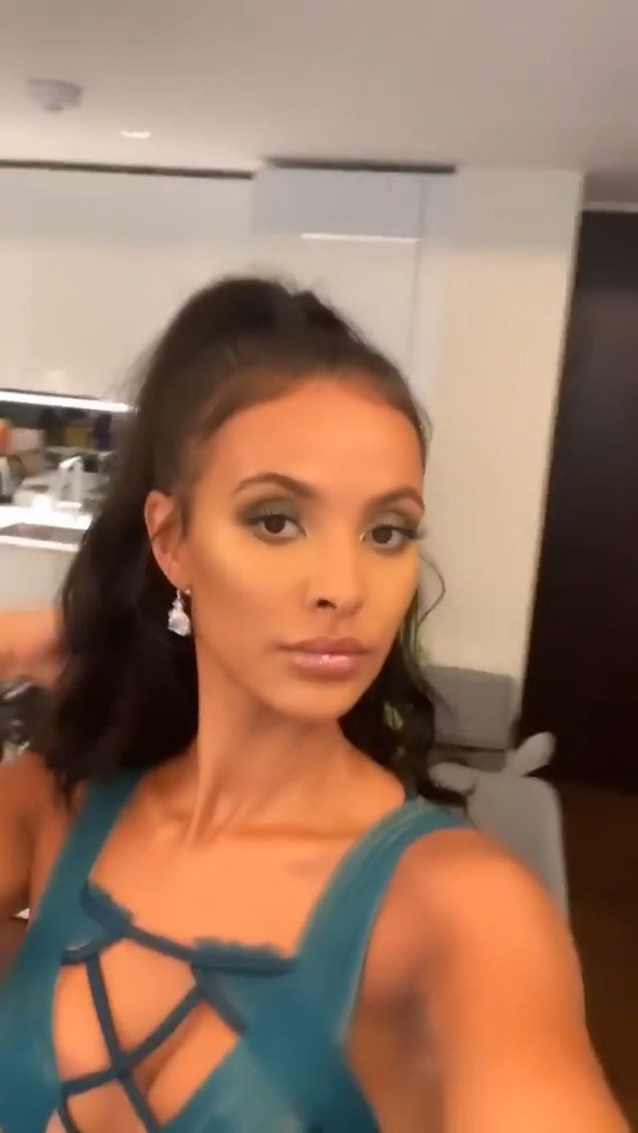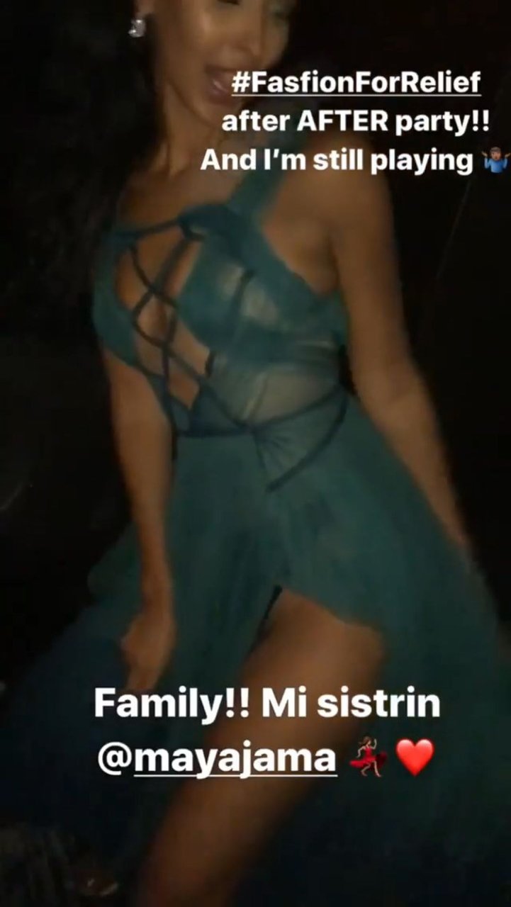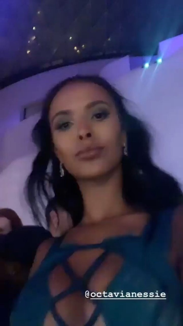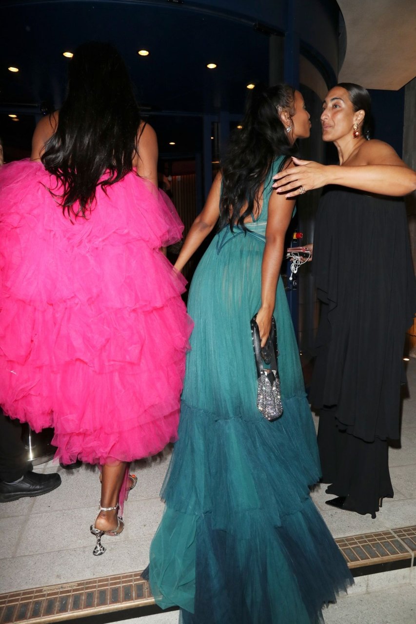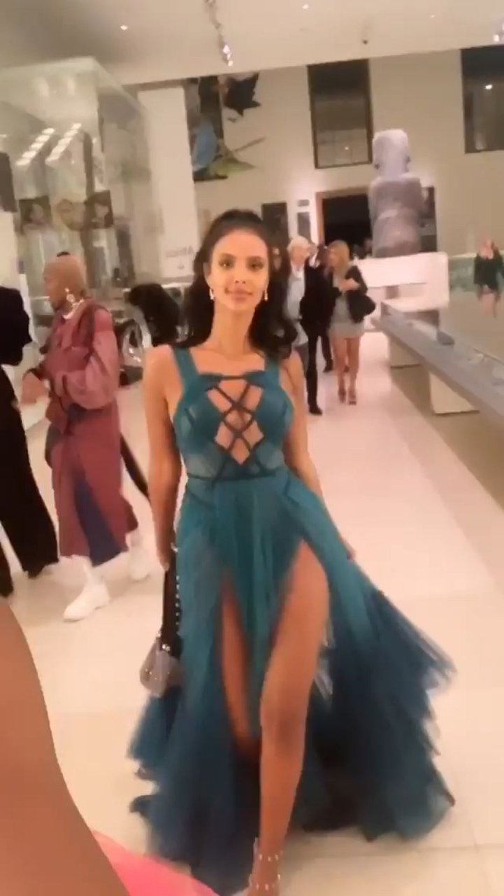 Apresentadora de TV sexy Maya Jama participa do Fashion For Relief no Museu Britânico em Londres, Inglaterra, 14/09/2019. Maya exibiu suas pernas deslumbrantes posando com um vestido leve de noite, revelando sua calcinha.