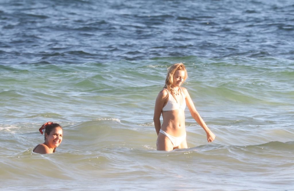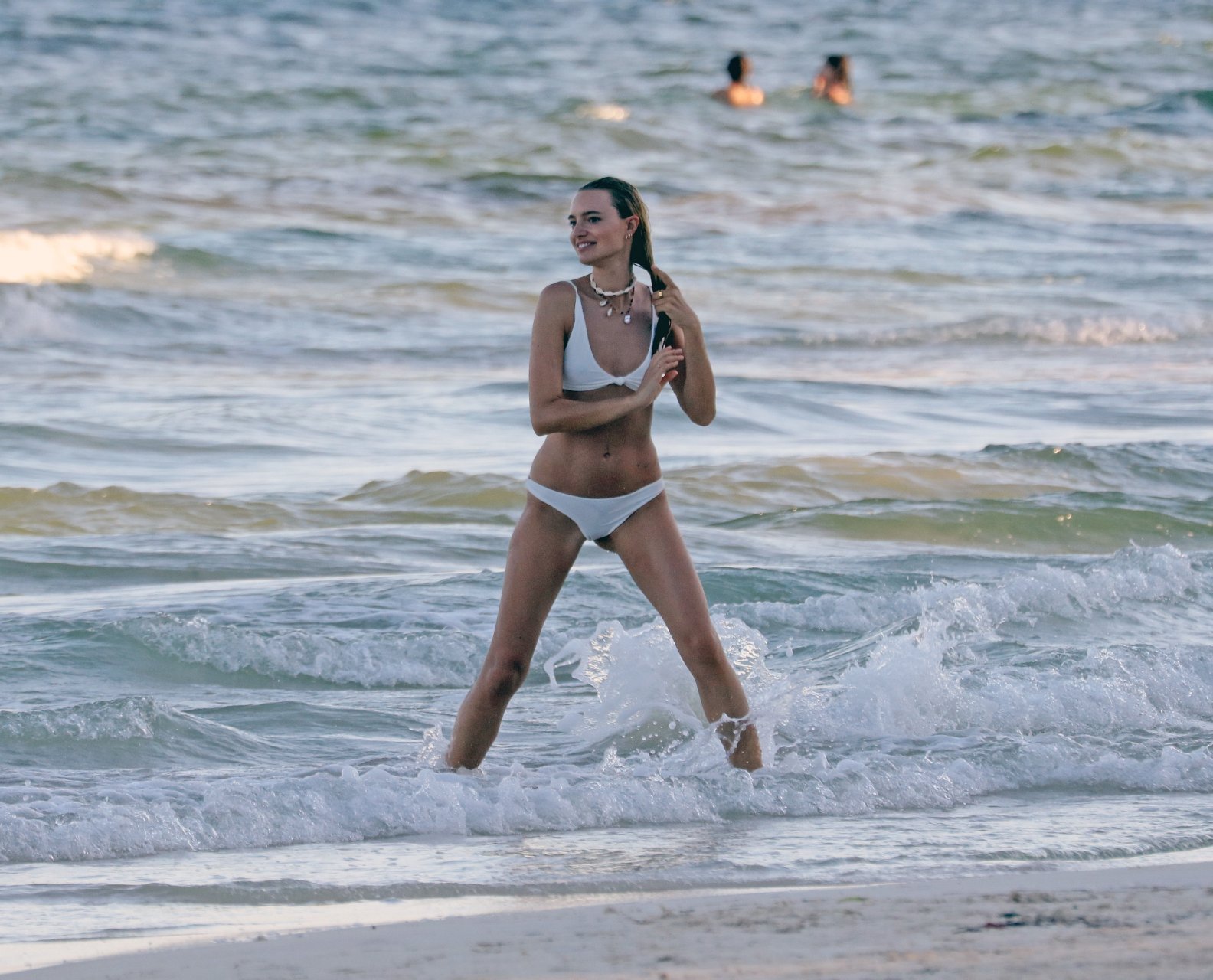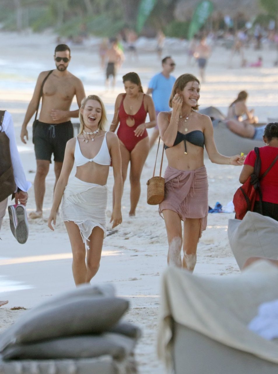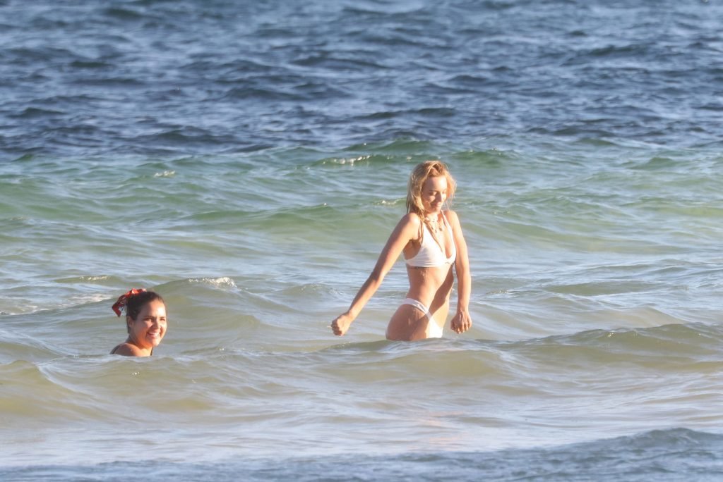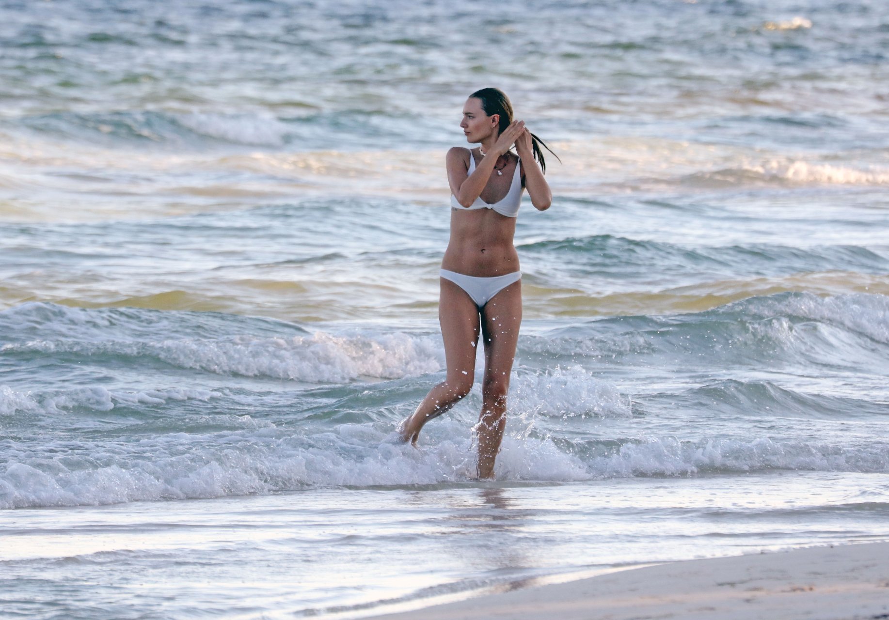 A modelo alemã Maya Stepper (27) foi vista usando um biquíni branco enquanto se divertia durante as férias no México, 14/10/2018.