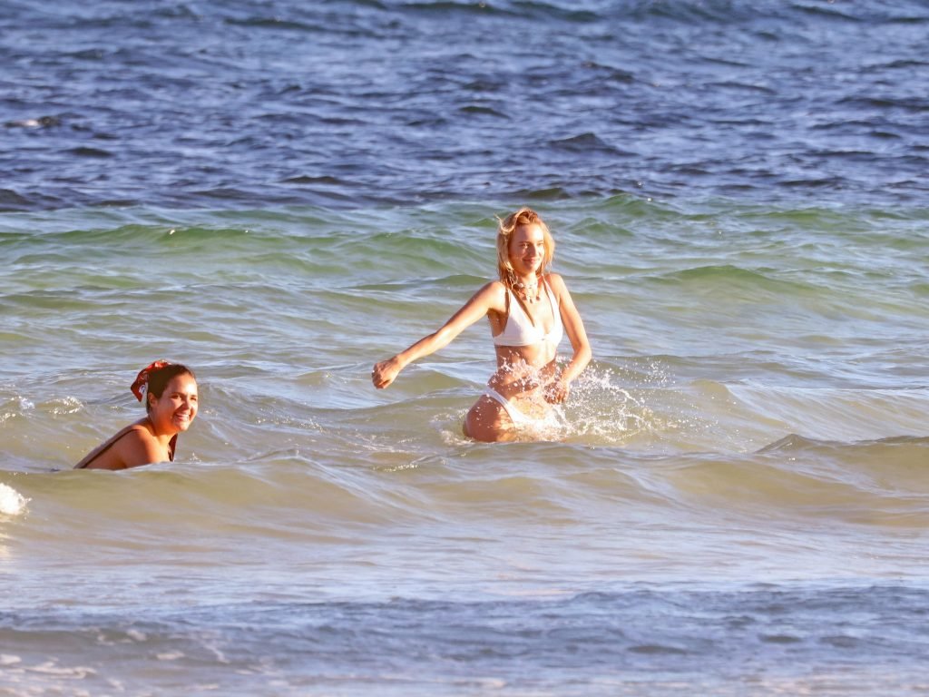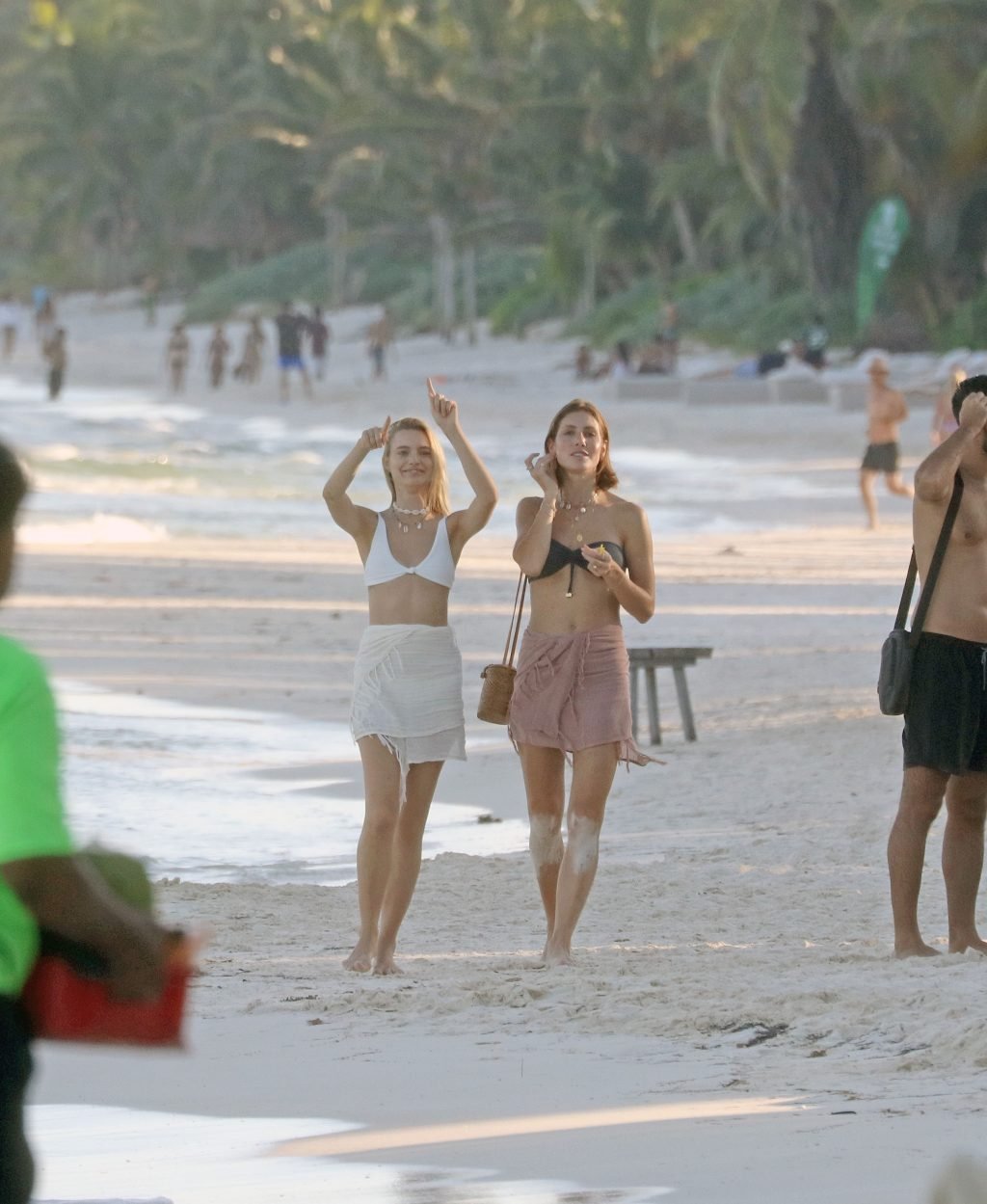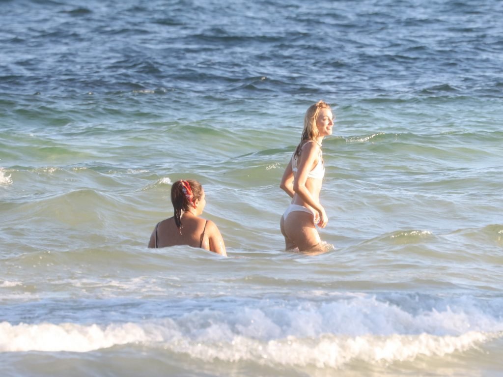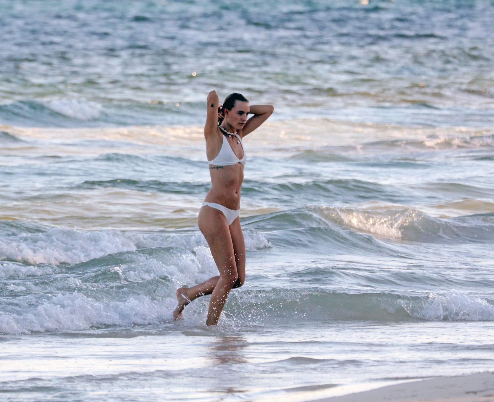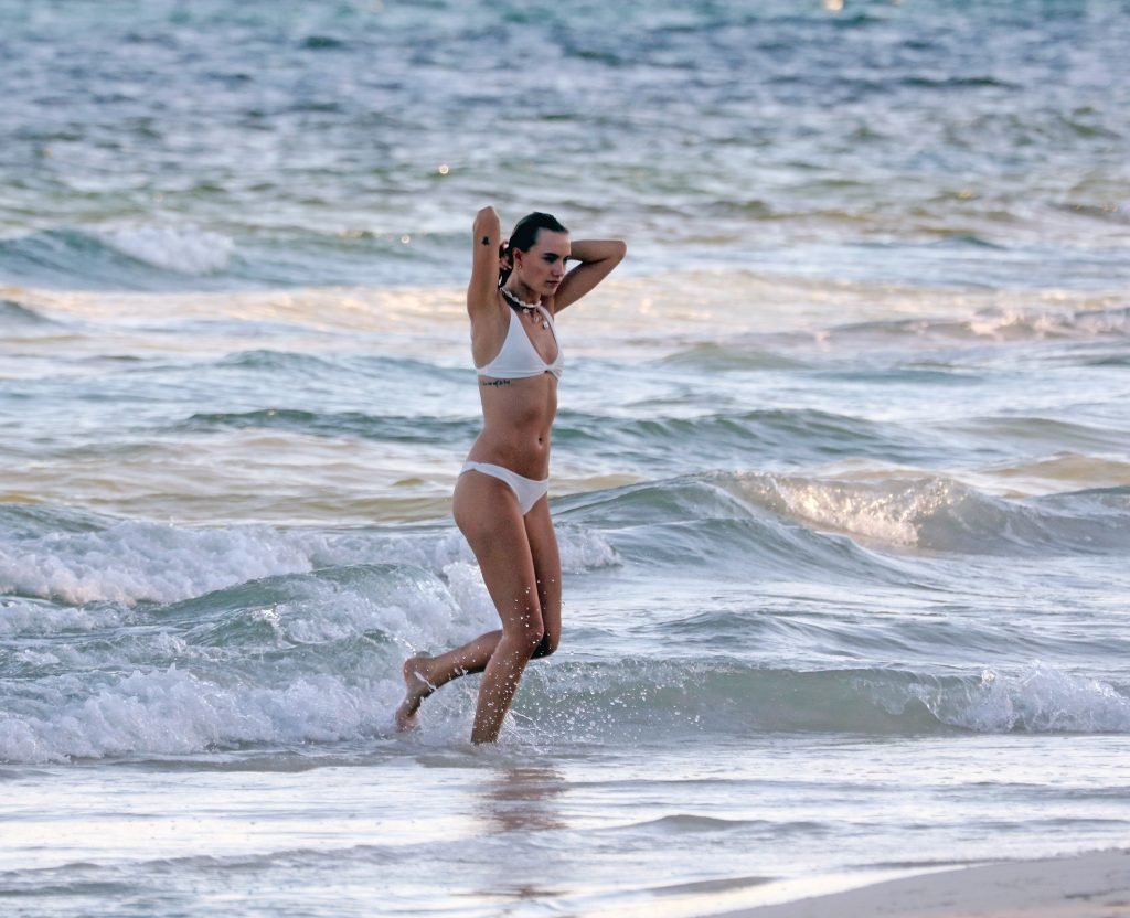 A modelo alemã Maya Stepper (27) foi vista usando um biquíni branco enquanto se divertia durante as férias no México, 14/10/2018.