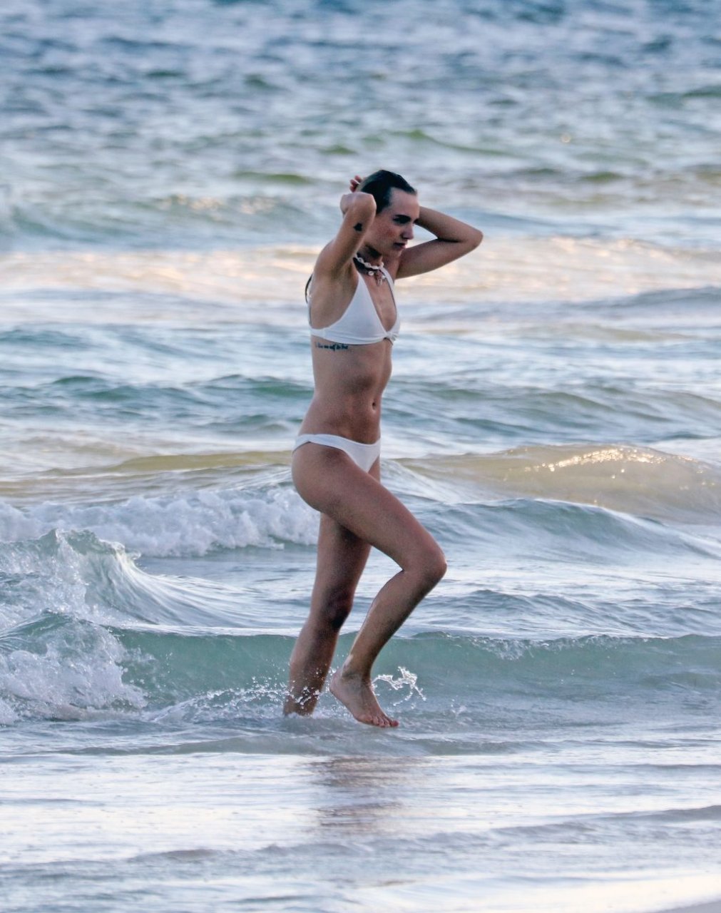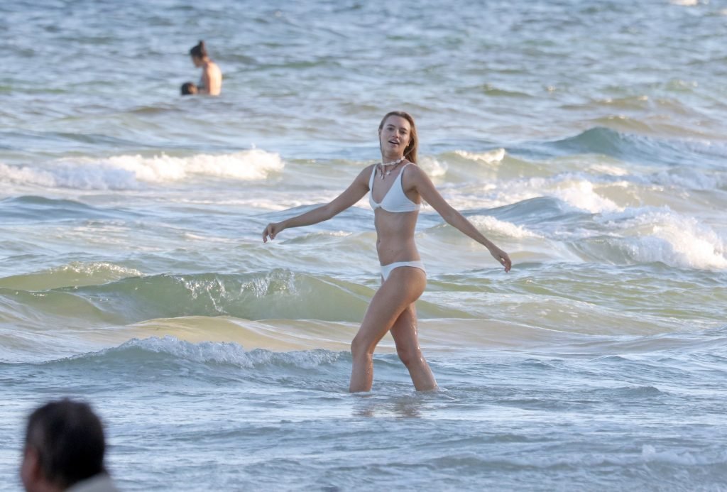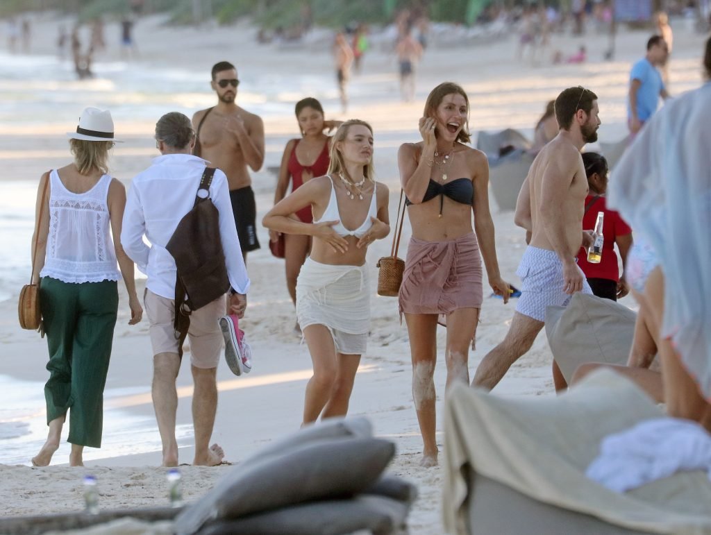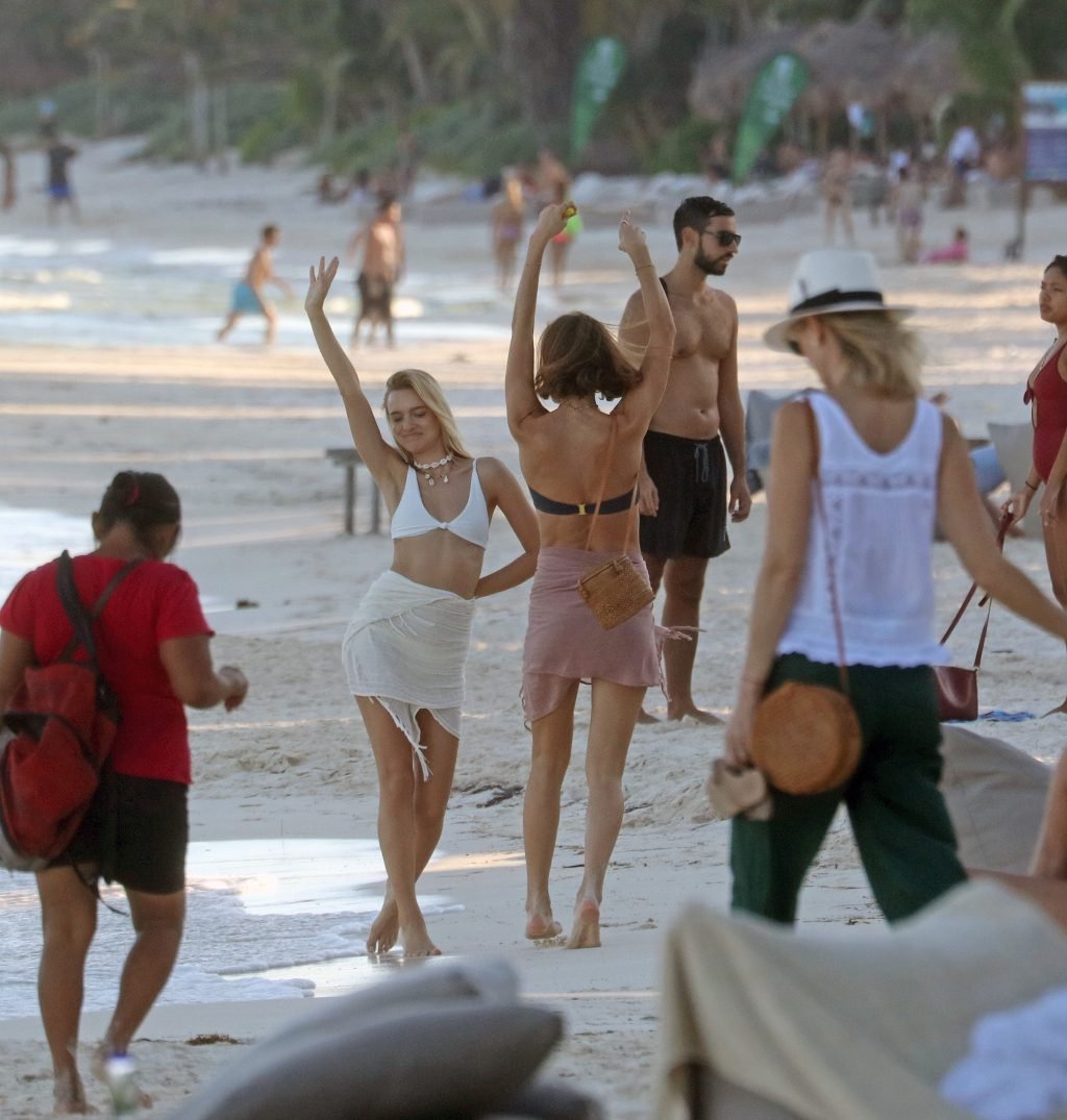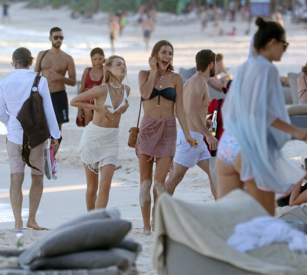 A modelo alemã Maya Stepper (27) foi vista usando um biquíni branco enquanto se divertia durante as férias no México, 14/10/2018.