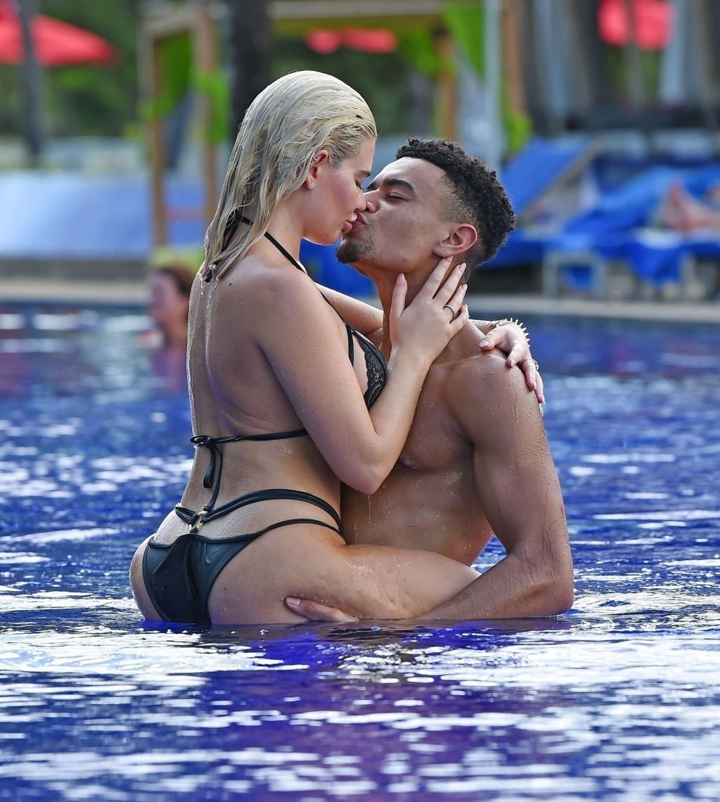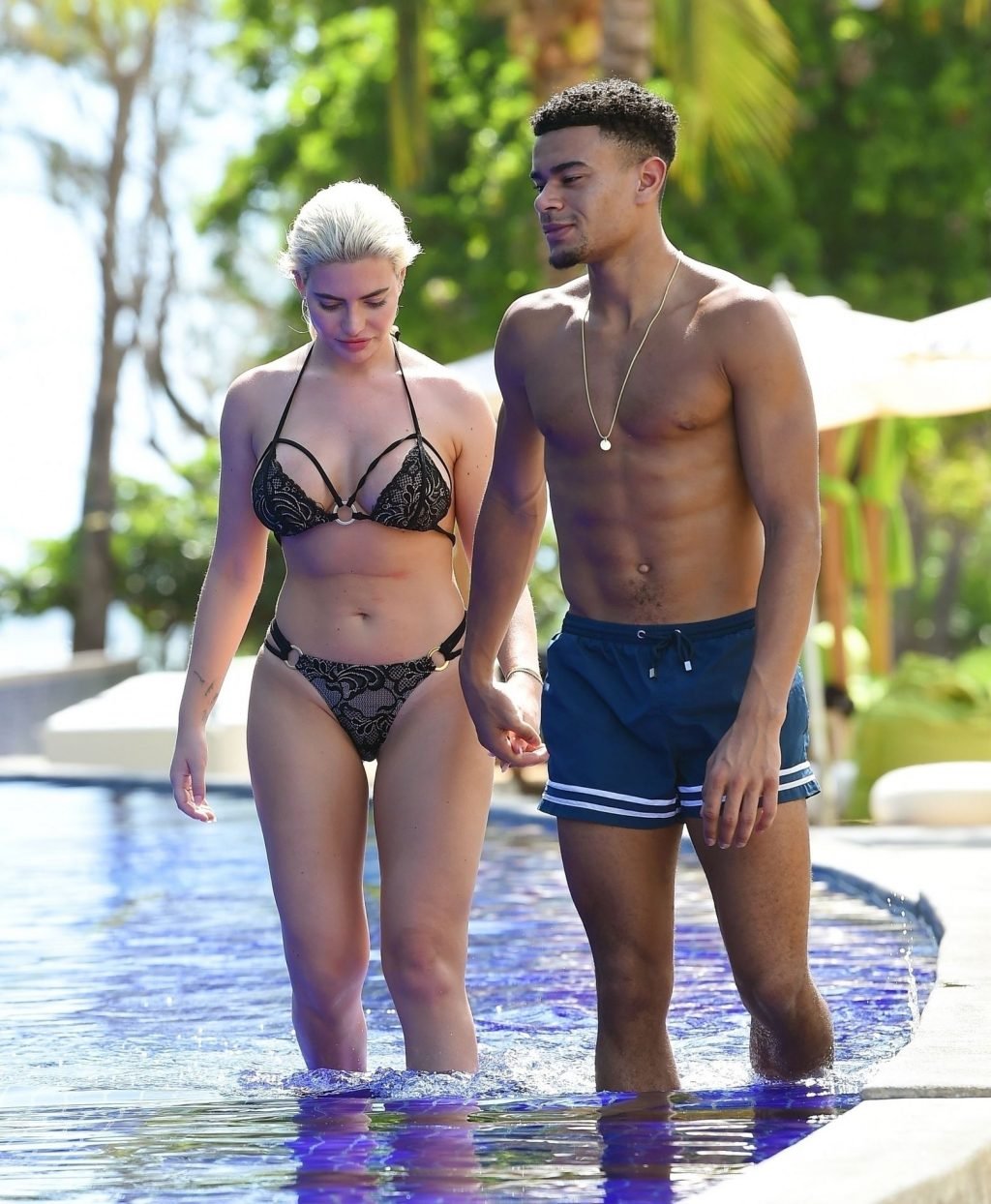 A temperatura está subindo entre o casal quente Megan Barton Hanson e Wes Nelson. Os sexy Love Islanders se entregam a um pouco de carinho entre os dois enquanto Megan Barton Hanson parecia sexy à beira da piscina com um biquíni preto rendado provocante, exibindo-se de forma sedutora em suas férias românticas ao sol em Maurício (2018).