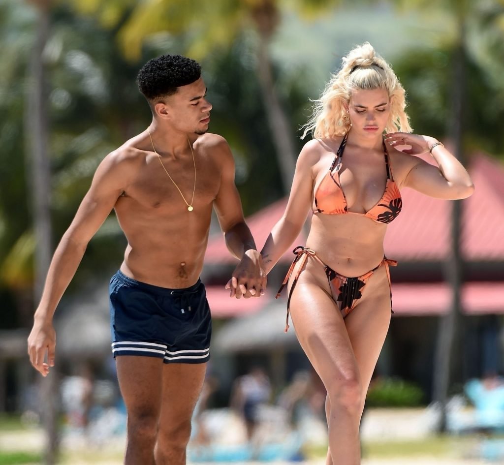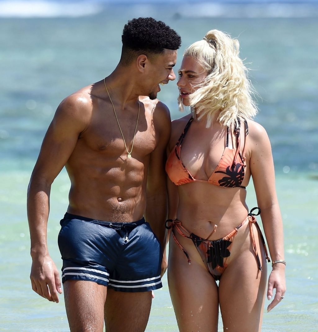 Apesar de alguns términos românticos dos participantes da série Love Island 2018, o casal apaixonado Megan Barton Hanson e Wes Nelson continua firme, exibindo uma demonstração ousada de afeto em umas férias românticas ao sol em Maurício, 12/12/2018.