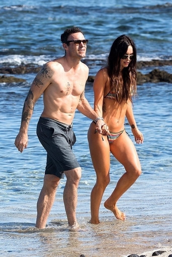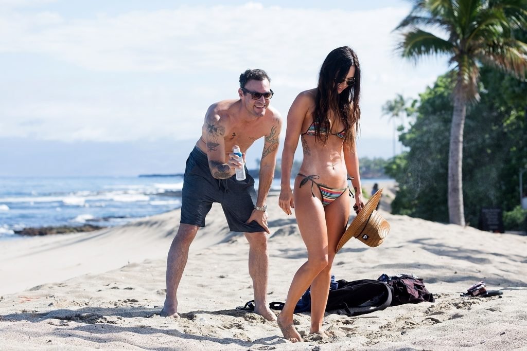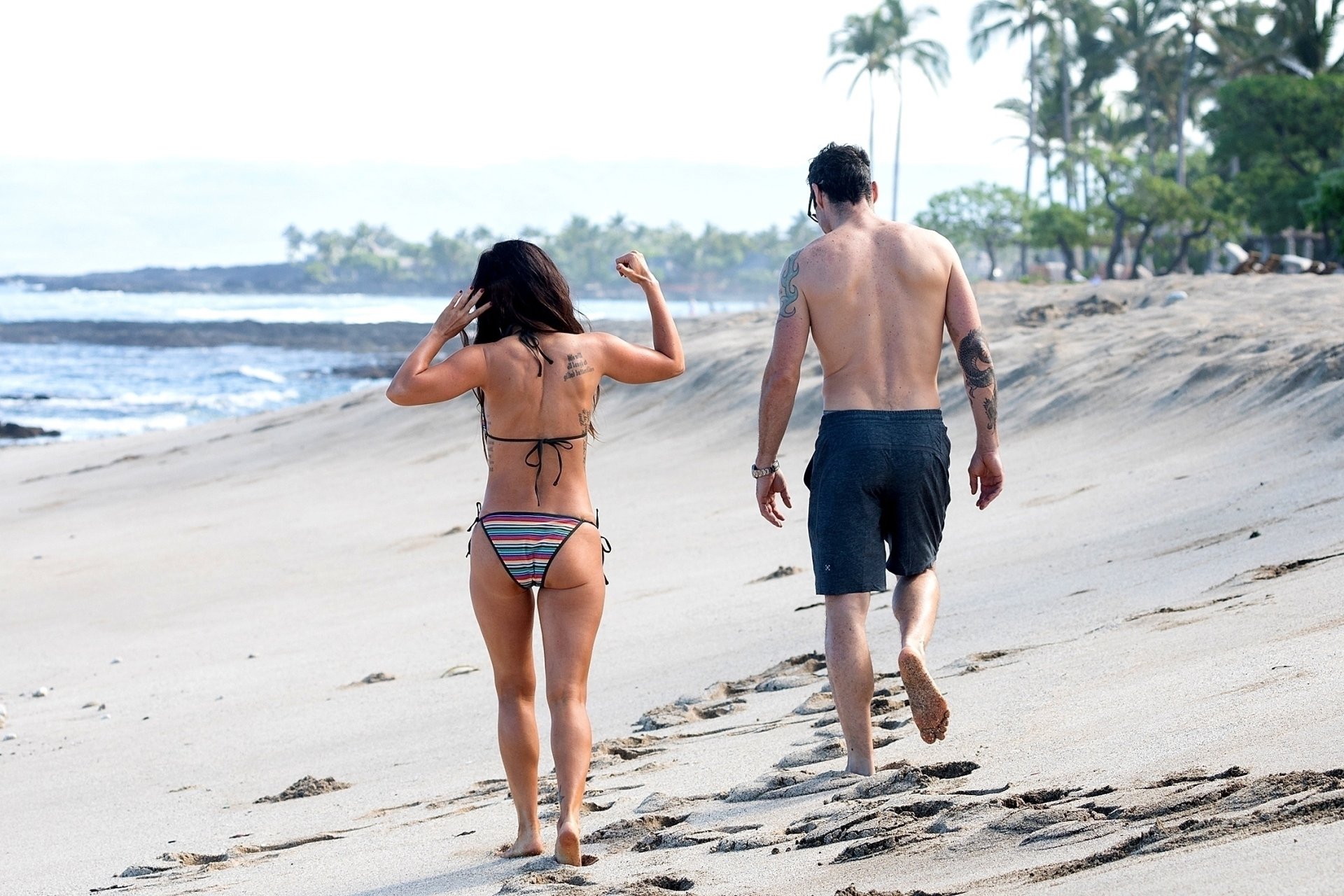 Megan Fox aproveita suas férias com o marido Brian Austin Green na praia no Havaí, 03/04/2018. A atriz e modelo de 31 anos exibiu seu corpo deslumbrante de biquíni para os fotógrafos.