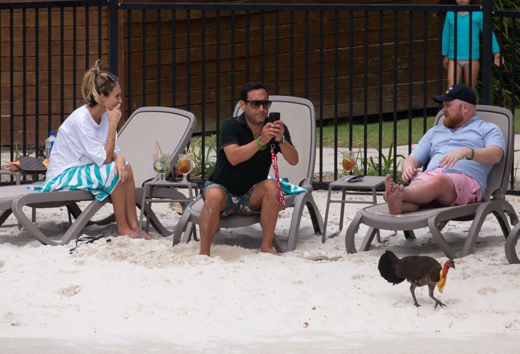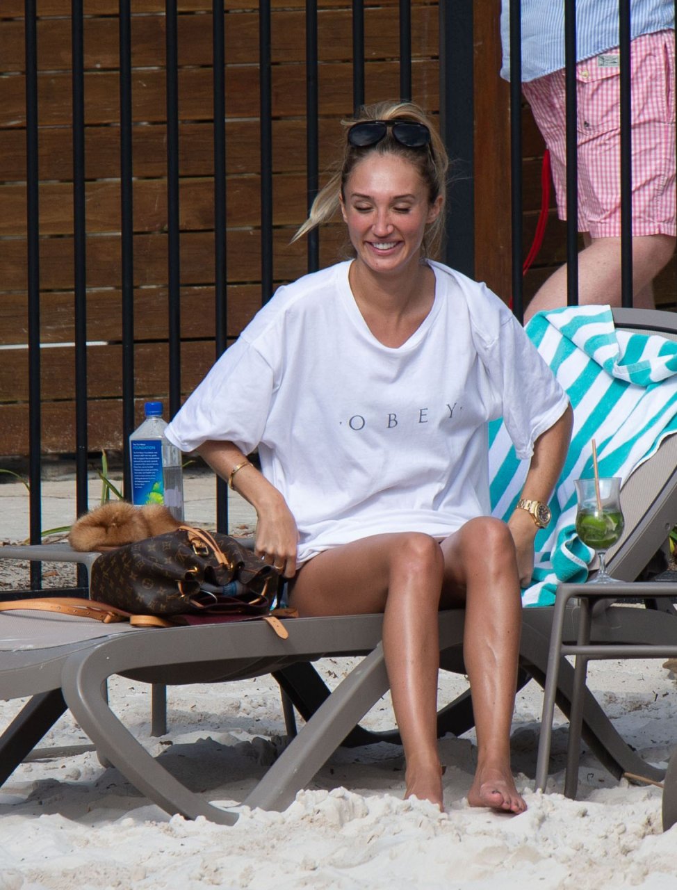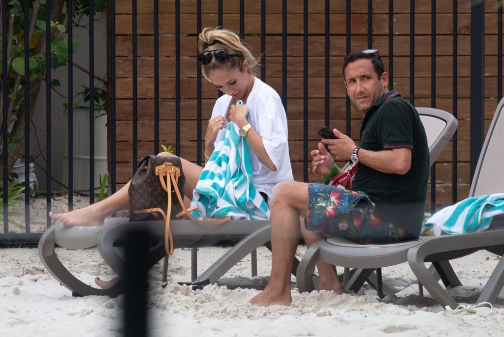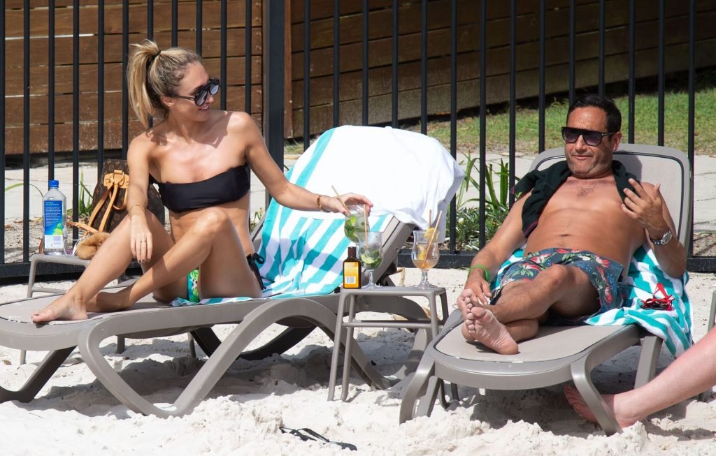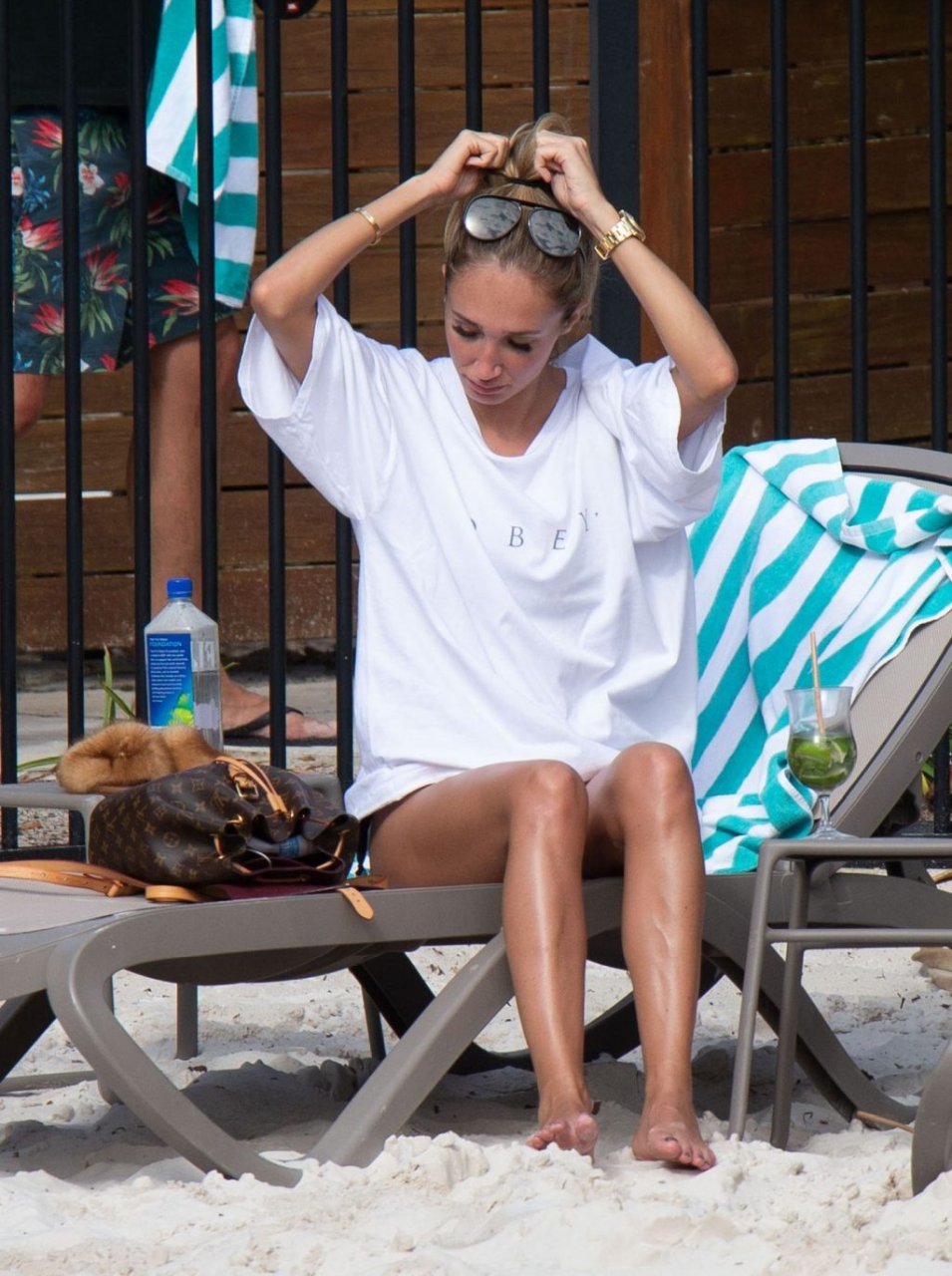 A estrela inglesa de reality show Megan McKenna aproveita o sol enquanto desfruta de uma bebida à beira da piscina em Queensland, 18/11/2018. Megan aproveitou ao máximo o tempo ensolarado, bronzeando-se à beira da piscina com um biquíni preto.