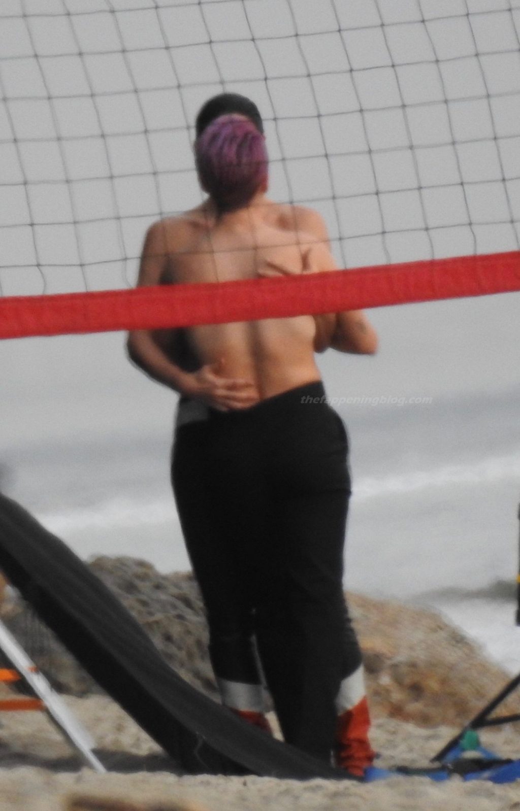 Aparentemente, cabelo roxo usou seus ganhos no futebol para comprar um par de seios novos.