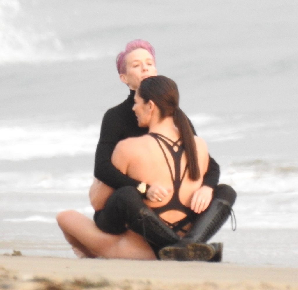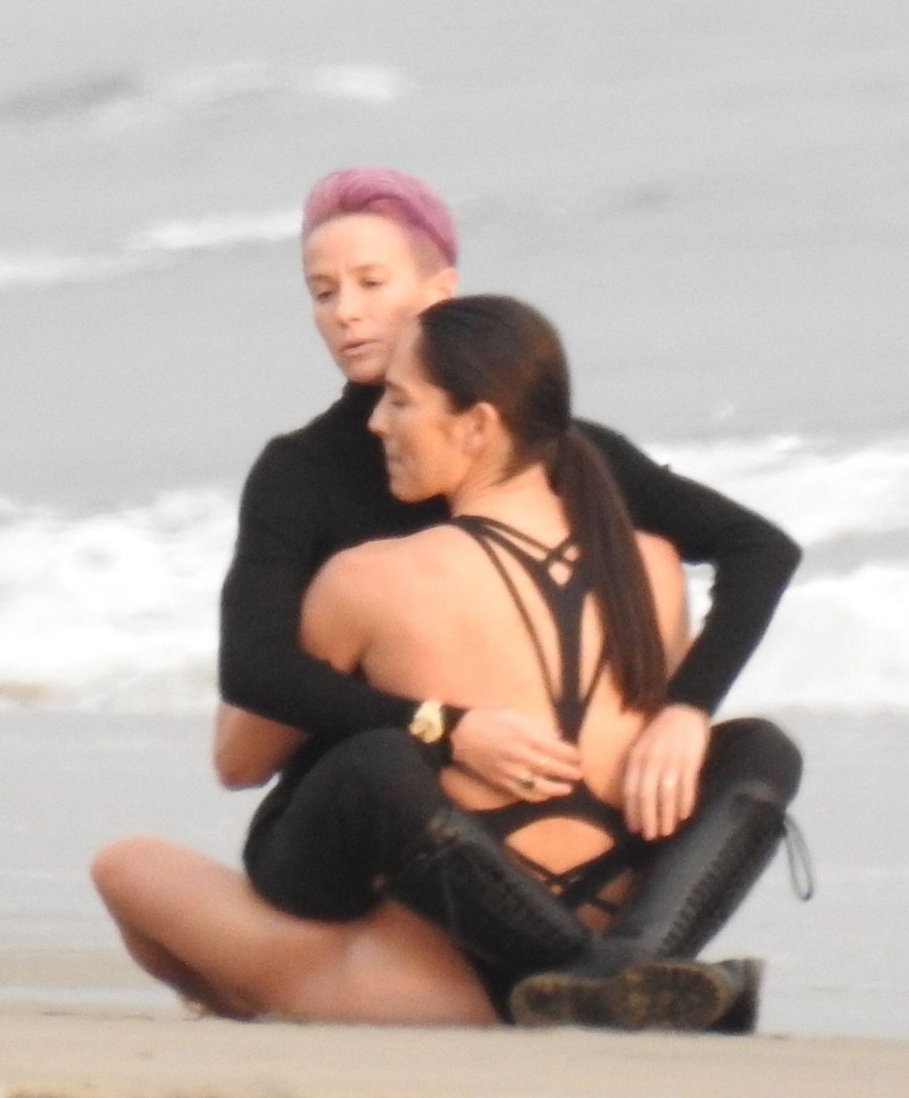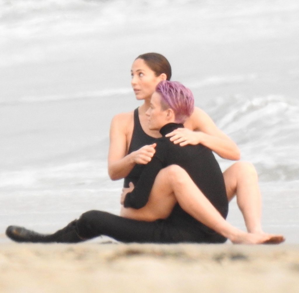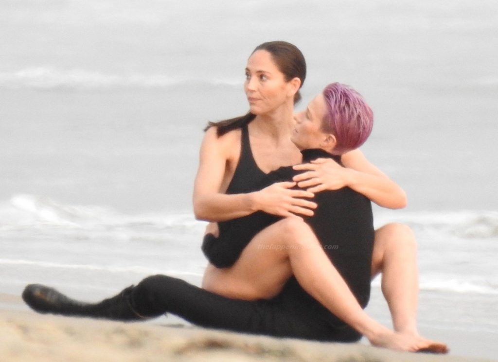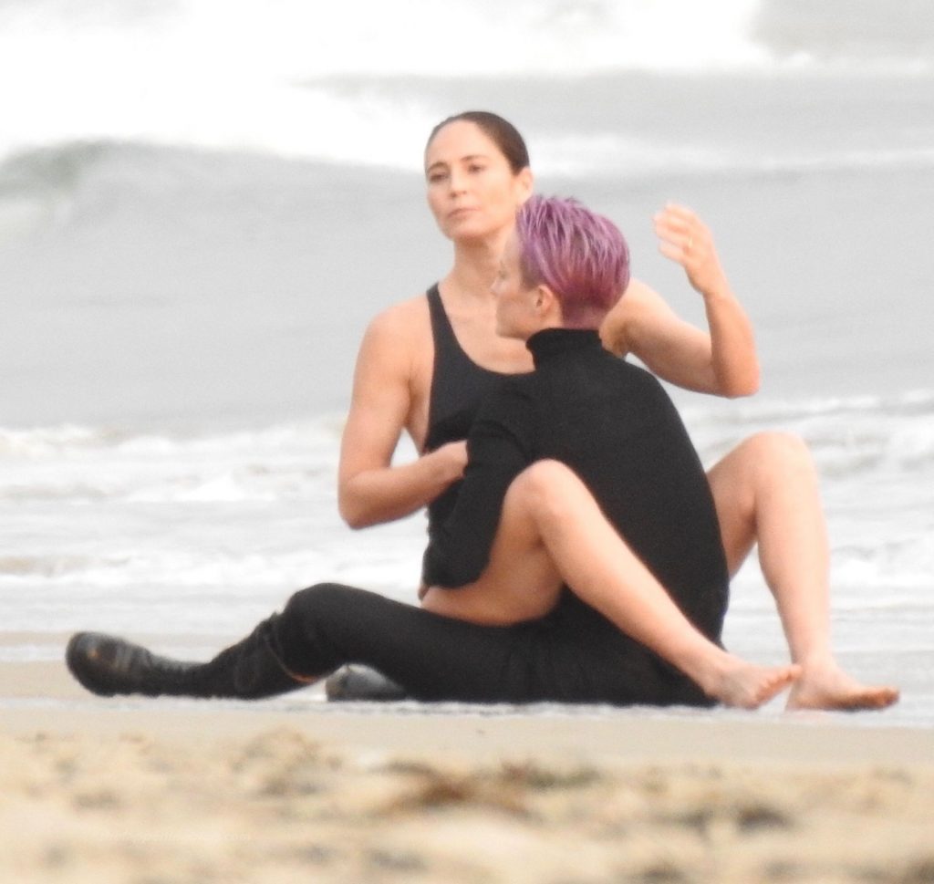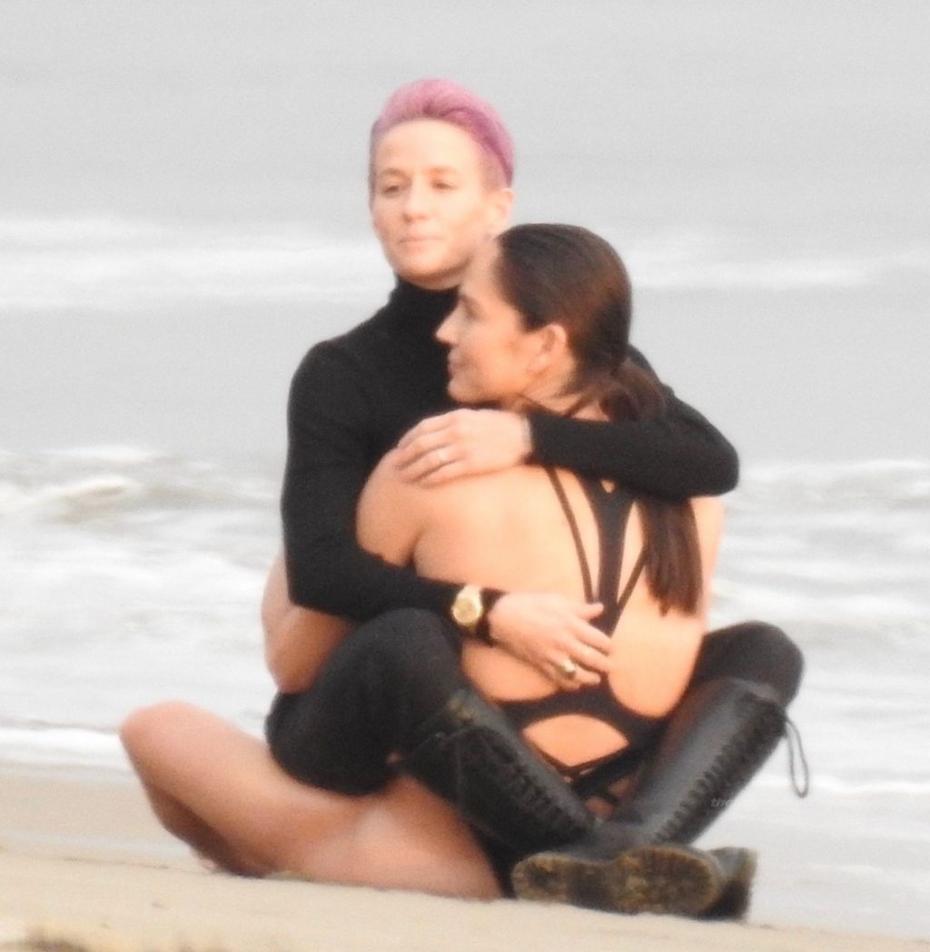 Megan e Sue foram vistas em diferentes cenários, abraçando-se carinhosamente enquanto sentavam na areia. O casal revezava-se sentando no colo uma da outra e, a cada vez, ajudavam-se a levantar ou afastavam um fio de cabelo do rosto da outra.