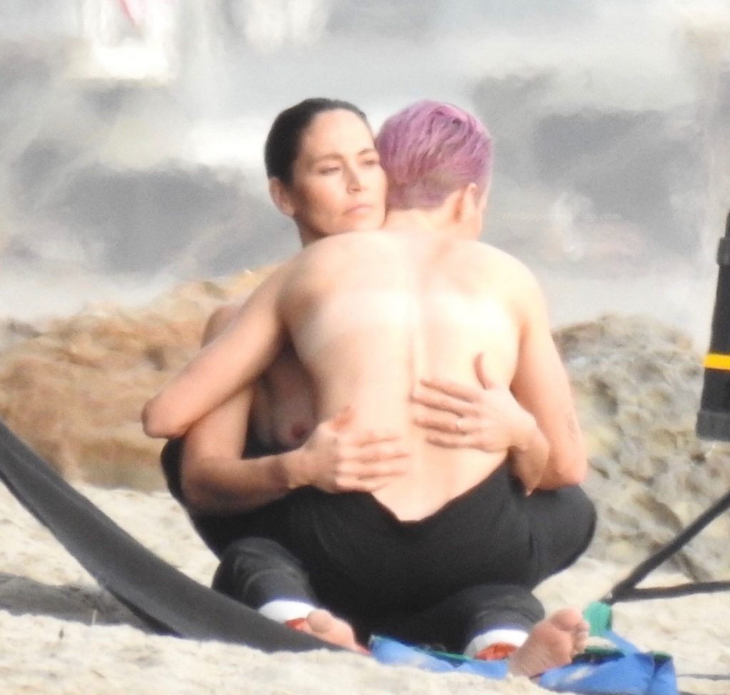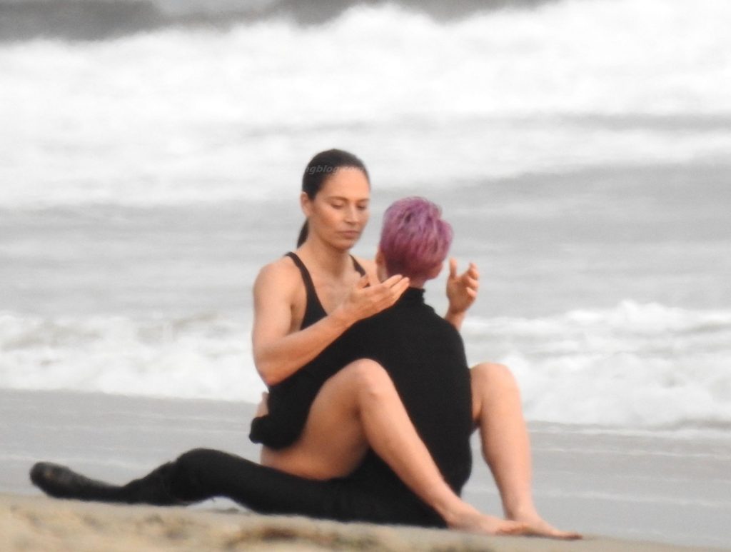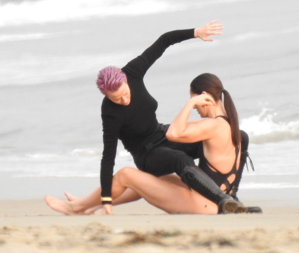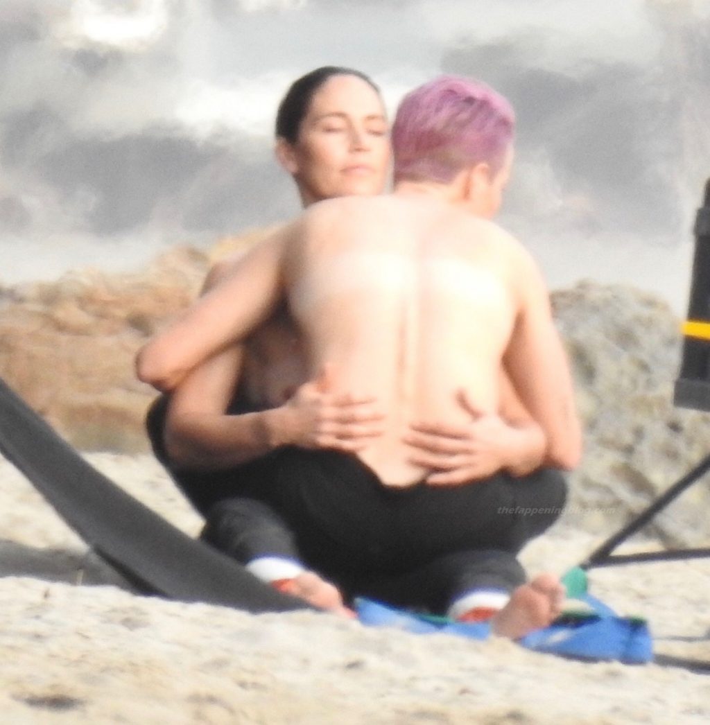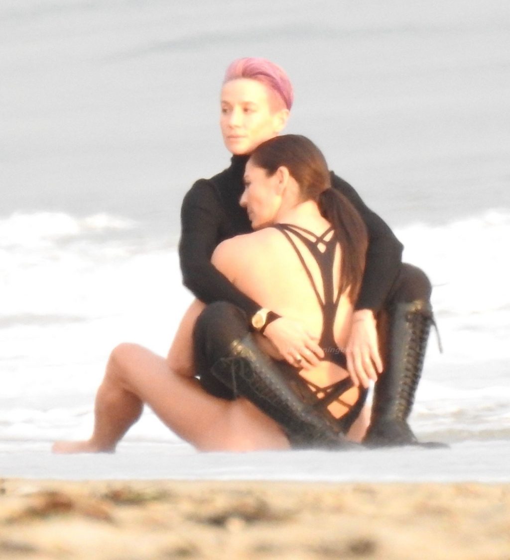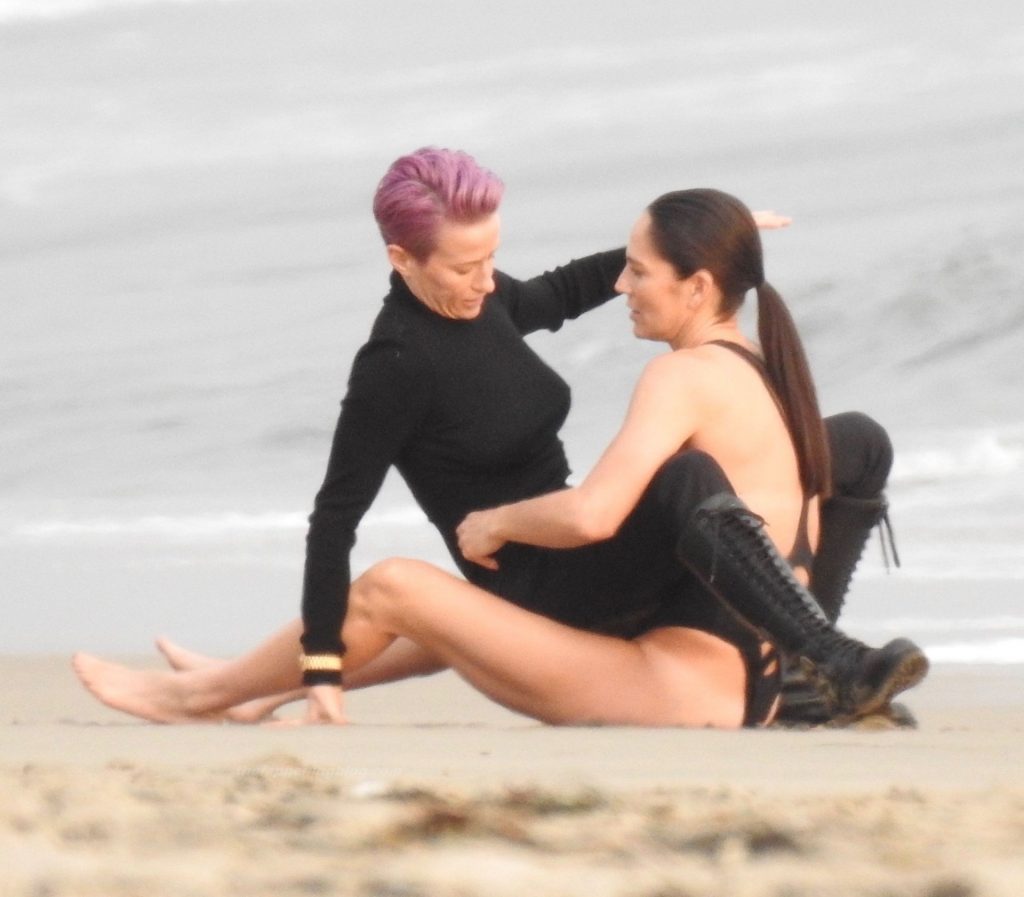 Megan e Sue foram vistas em diferentes cenários, abraçando-se carinhosamente enquanto sentavam na areia. O casal revezava-se sentando no colo uma da outra e, a cada vez, ajudavam-se a levantar ou afastavam um fio de cabelo do rosto da outra.