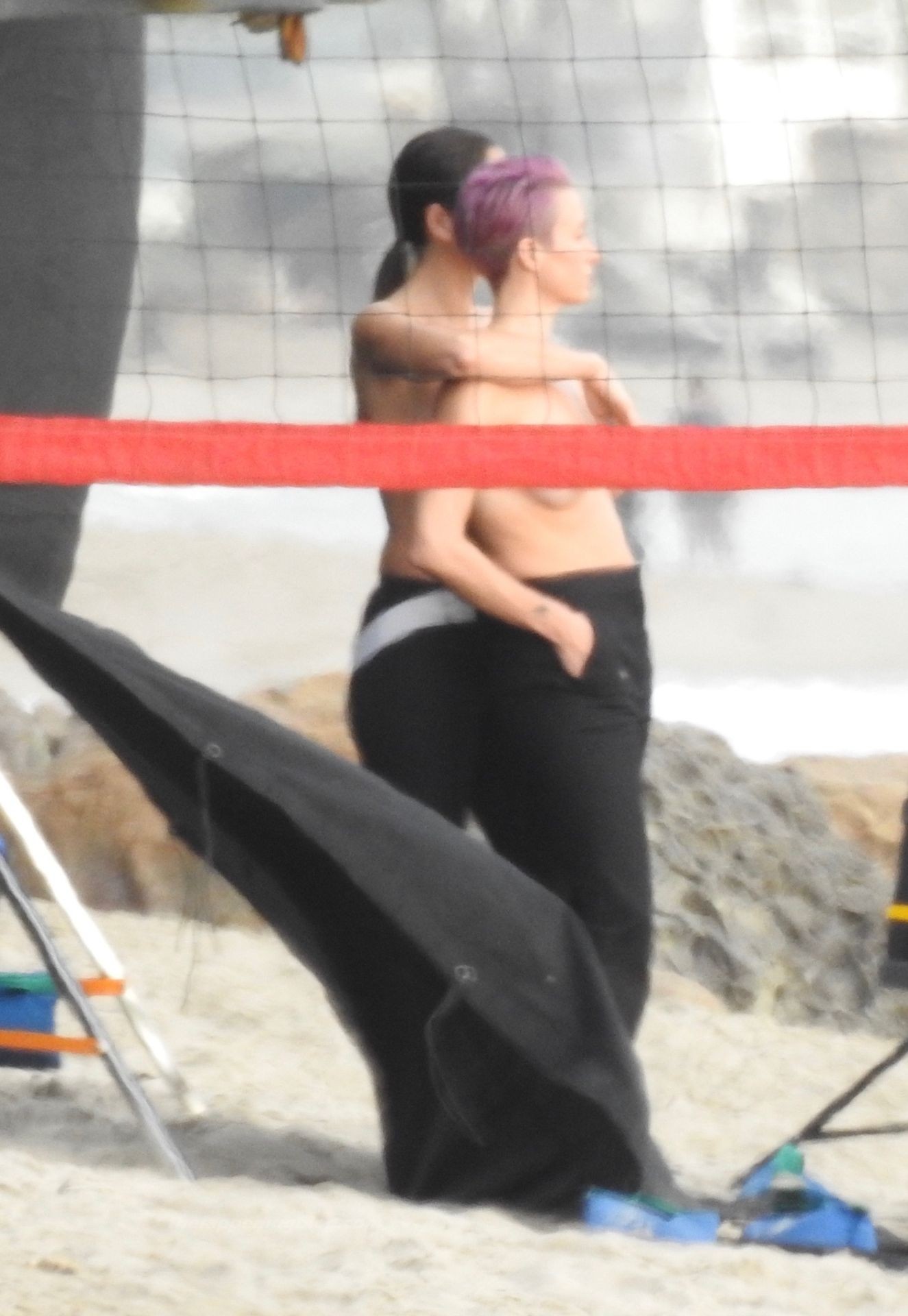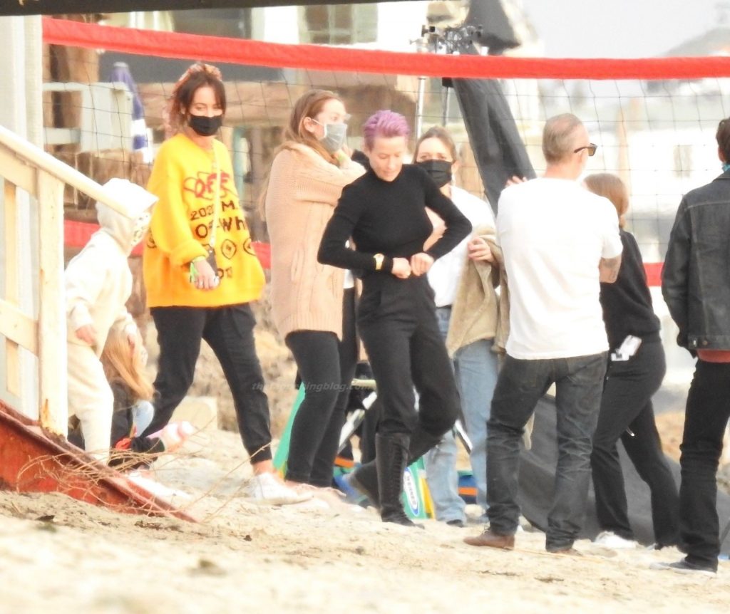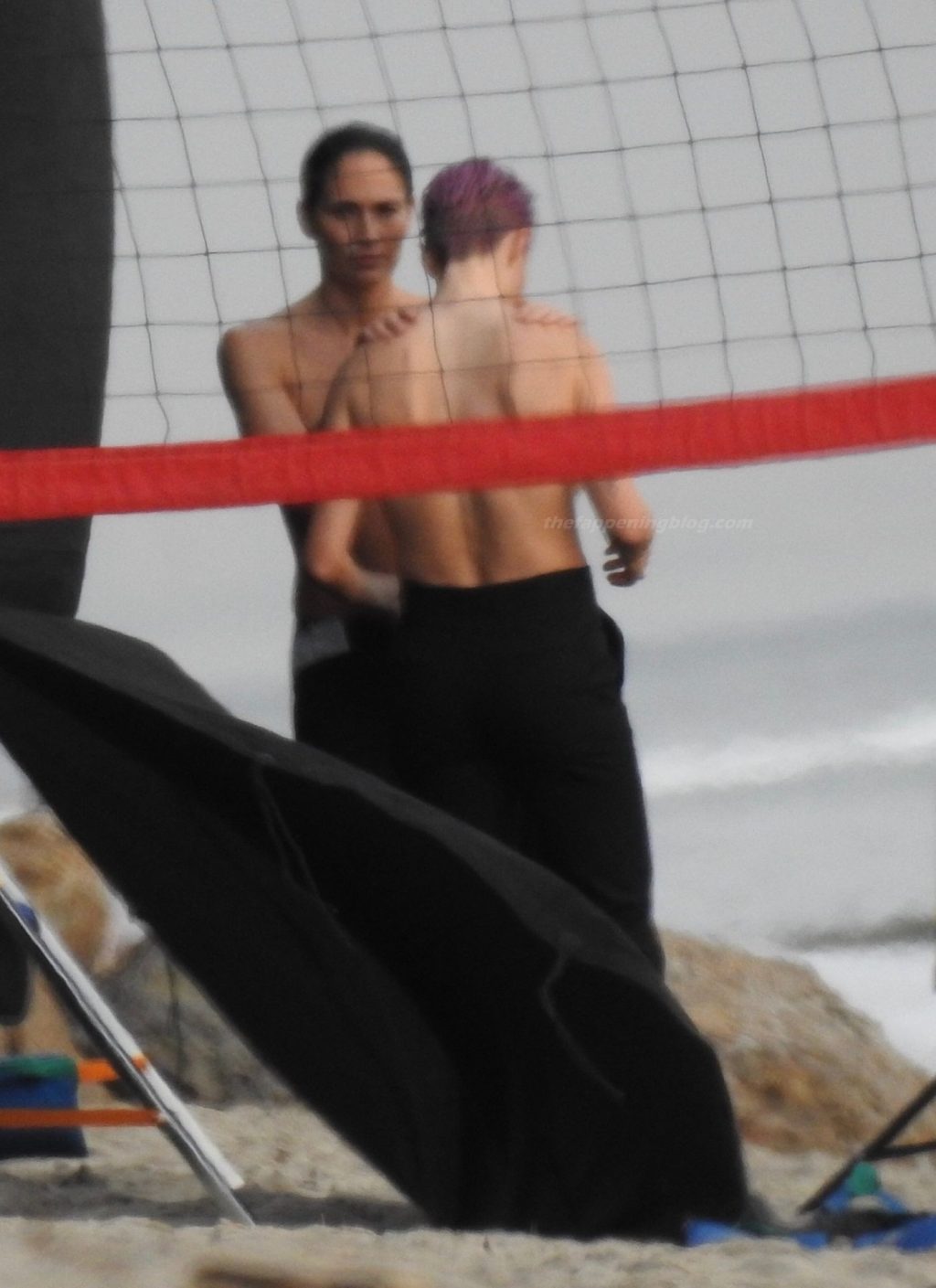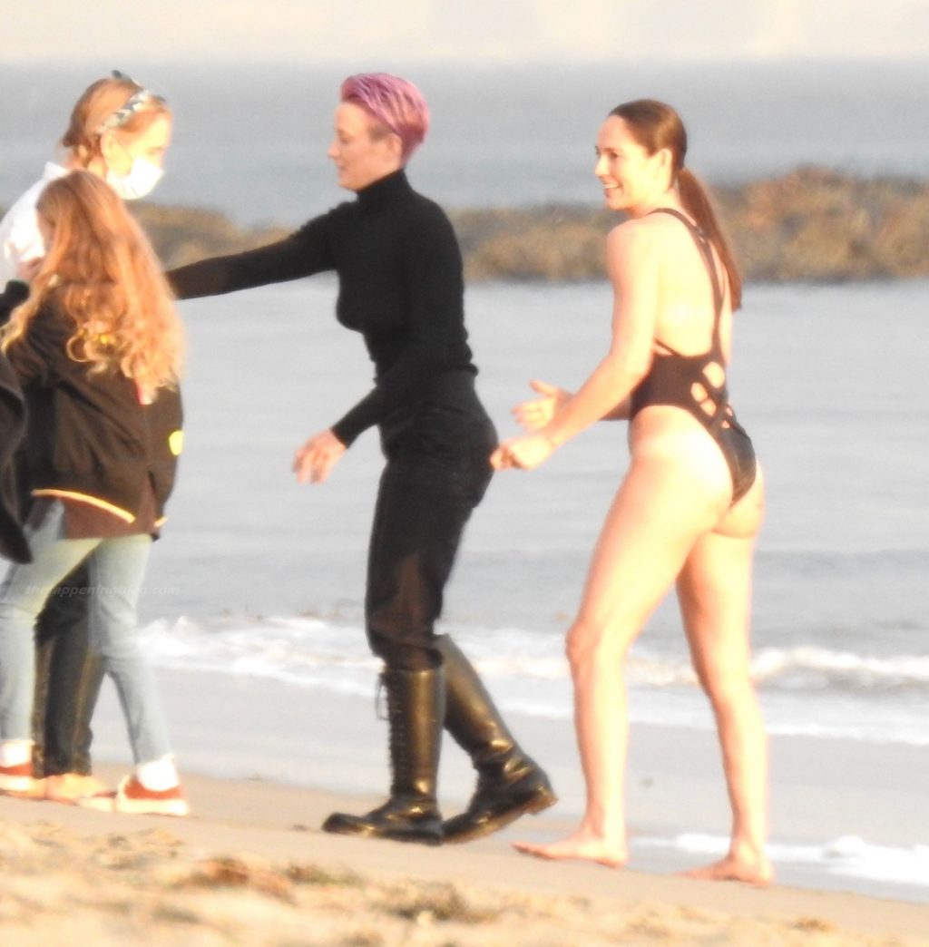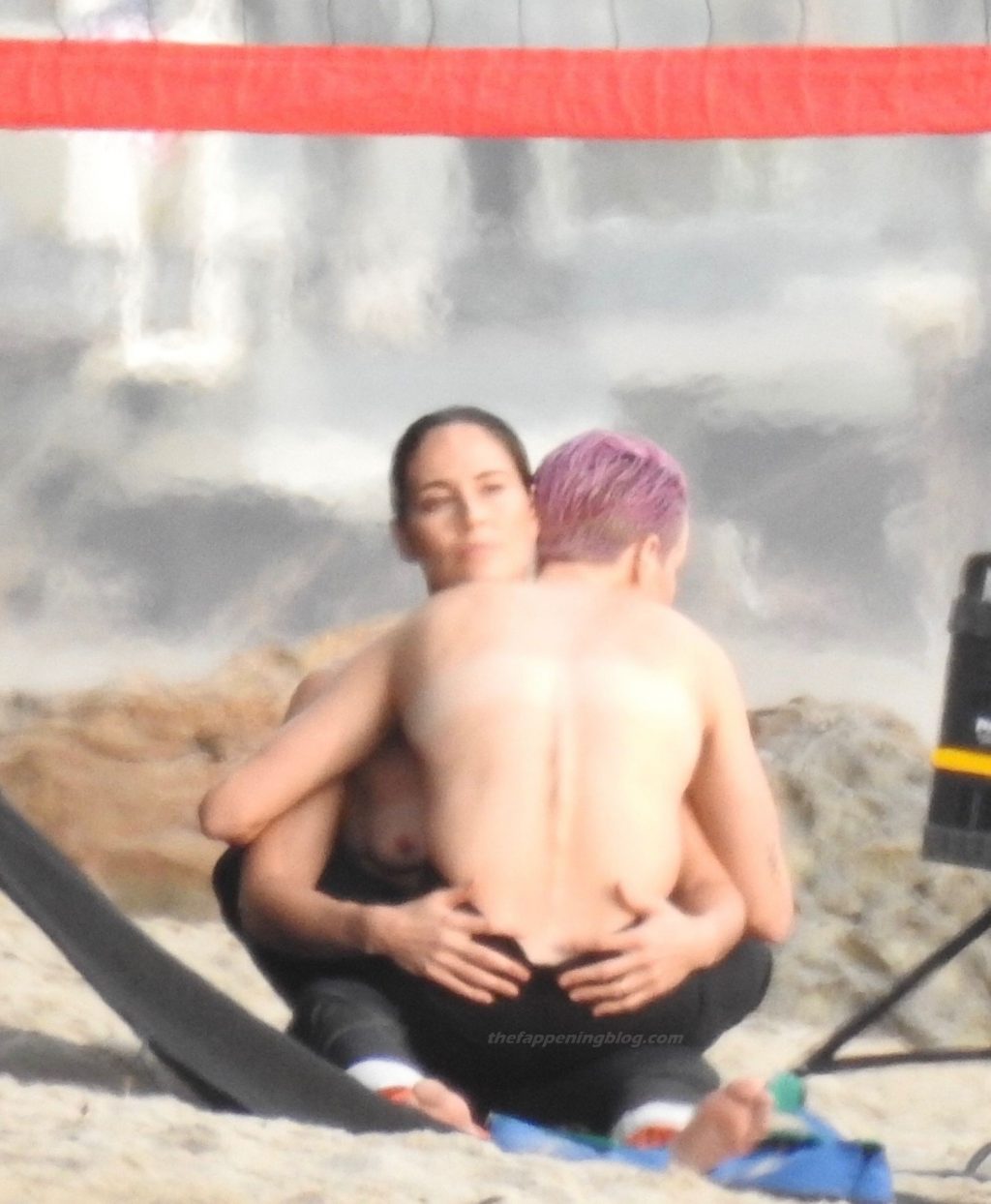 Megan e Sue foram vistas em diferentes cenários, abraçando-se carinhosamente enquanto sentavam na areia. O casal revezava-se sentando no colo uma da outra e, a cada vez, ajudavam-se a levantar ou afastavam um fio de cabelo do rosto da outra.