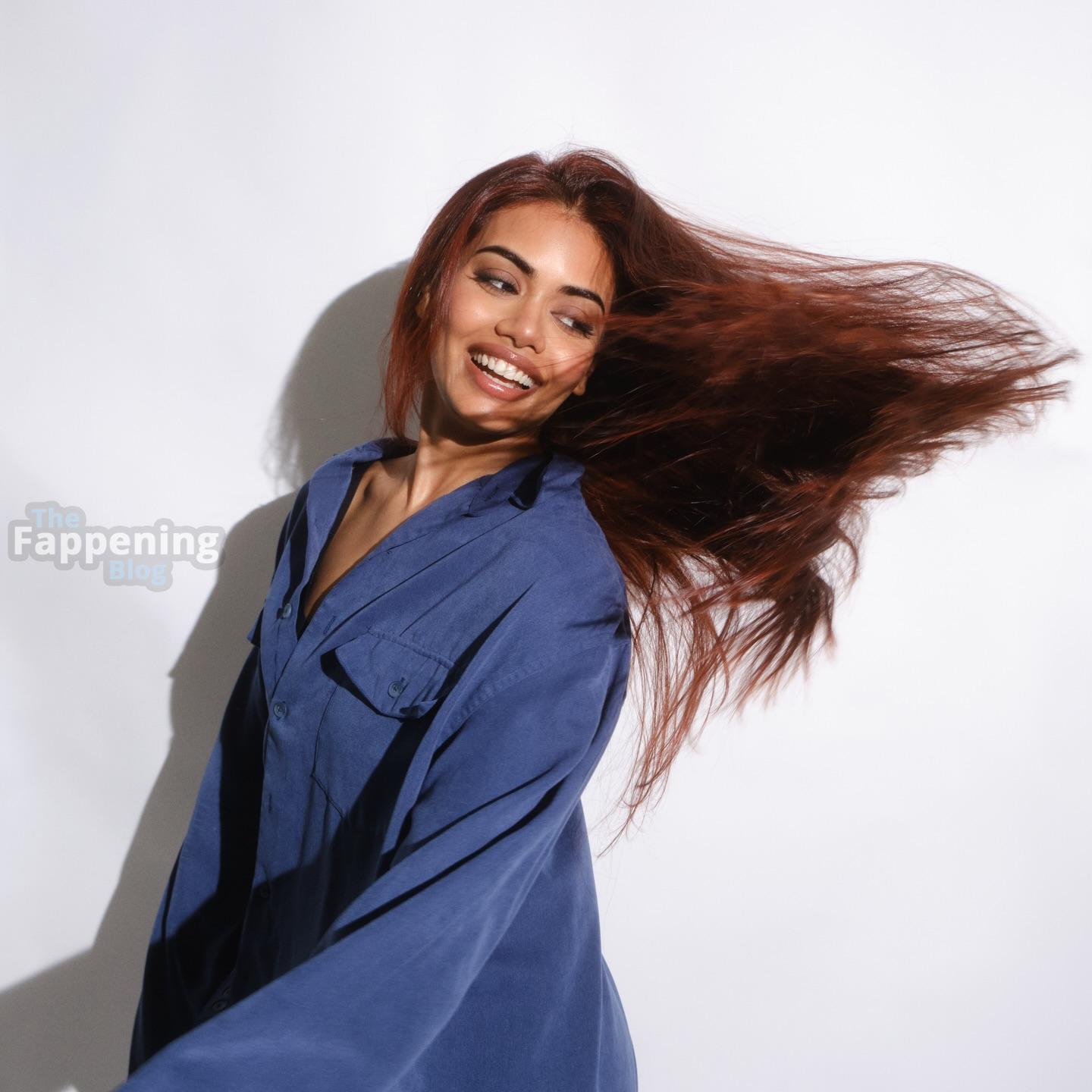 Você precisa ver as novas fotos e vídeos de estúdio de Megan Suri. A atriz parece absolutamente despretensiosa em uma camisa jeans azul oversized e meias brancas, relaxando no chão com seu vibrante cabelo vermelho caindo.