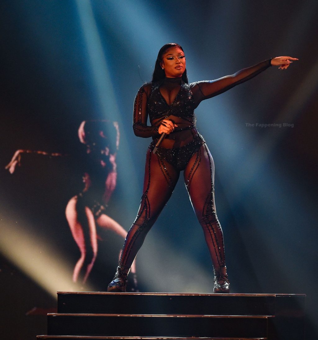 A rapper Megan Thee Stallion se apresenta e aceita o prêmio de Música Favorita de Rap/Hip-Hop no palco do American Music Awards 2020 no Microsoft Theater em Los Angeles, 22/11/2020.