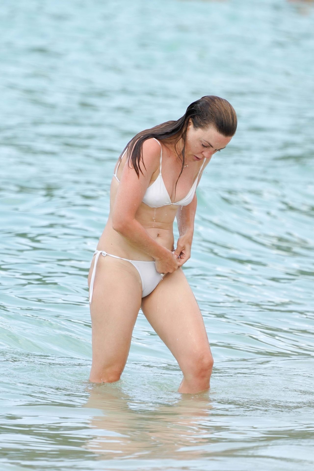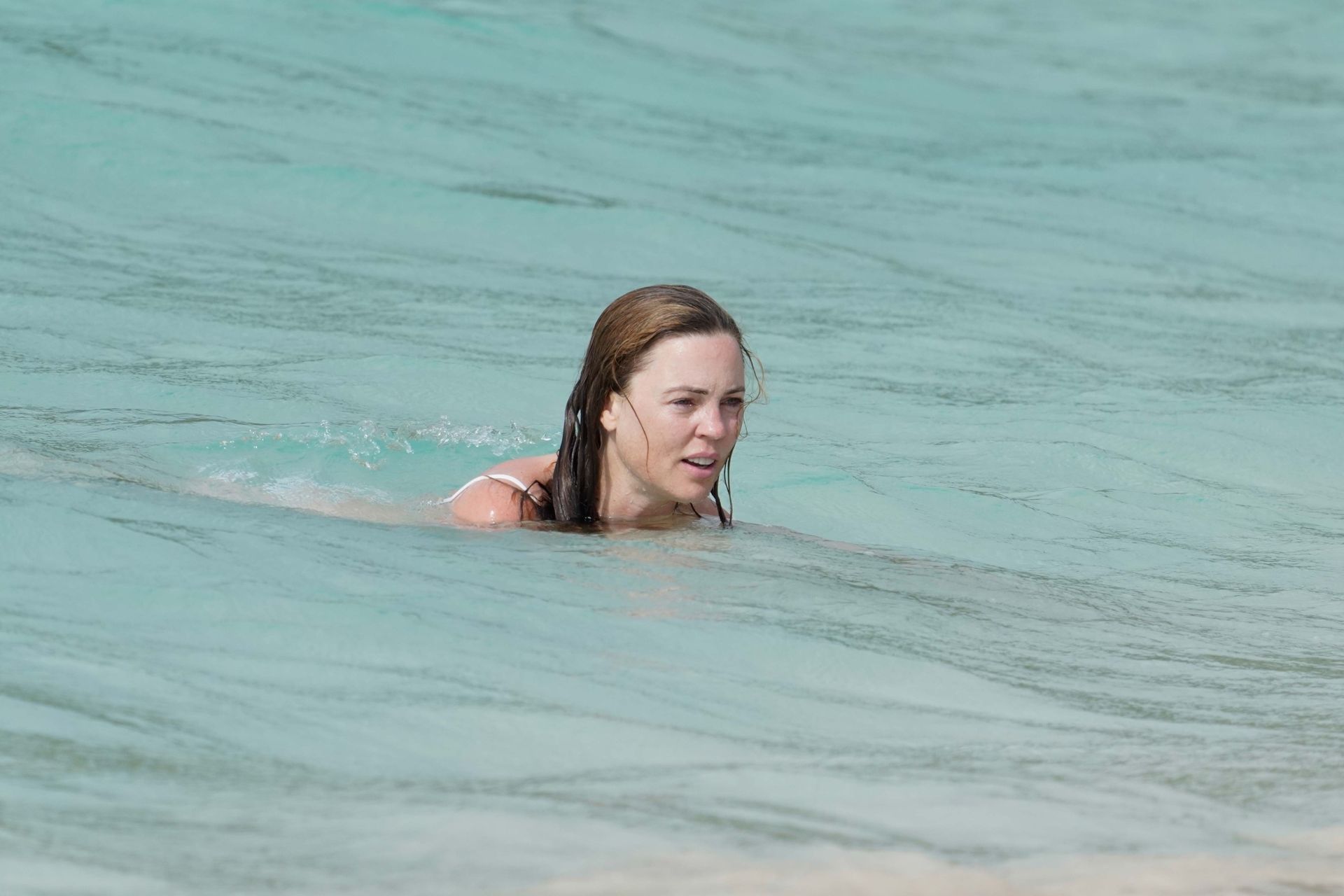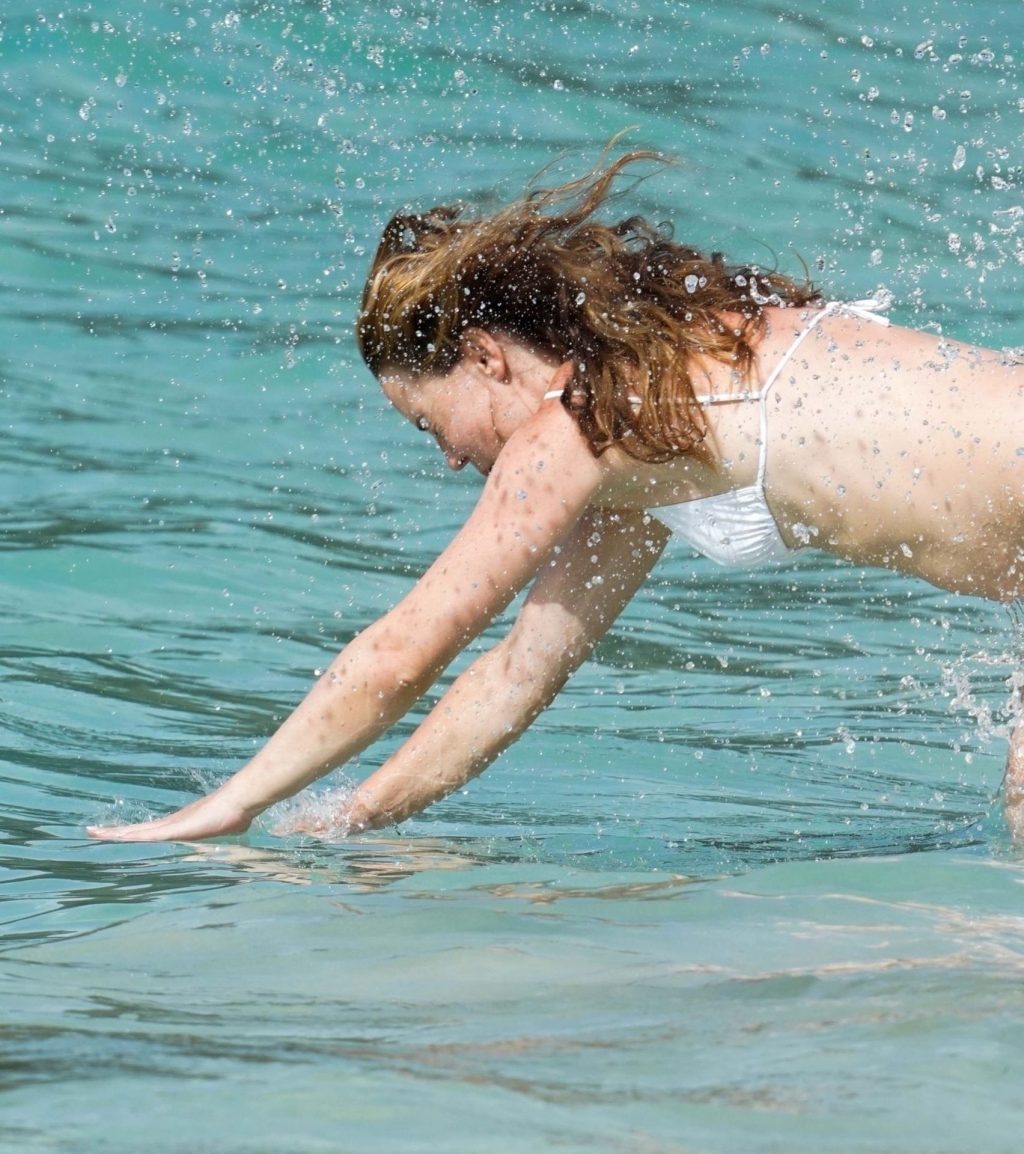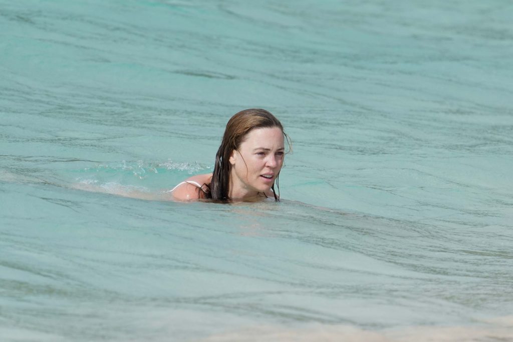 Sexy atriz Melissa George exibe sua silhueta enquanto está de férias com sua família em St. Barts durante sua semana de aniversário, 08/08/2020.