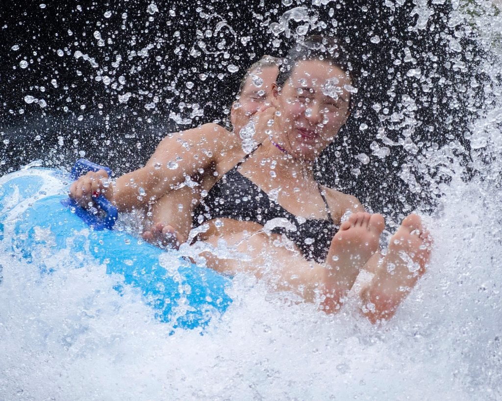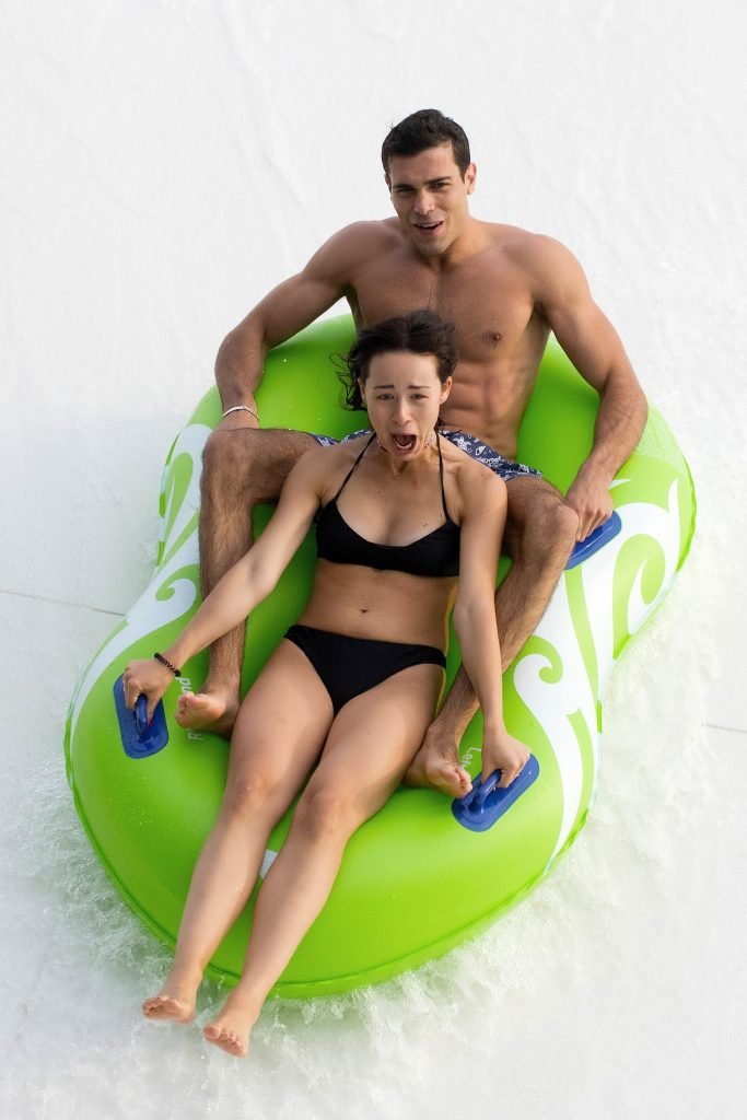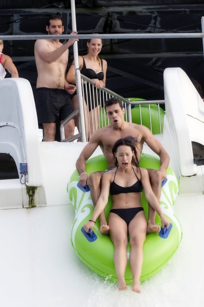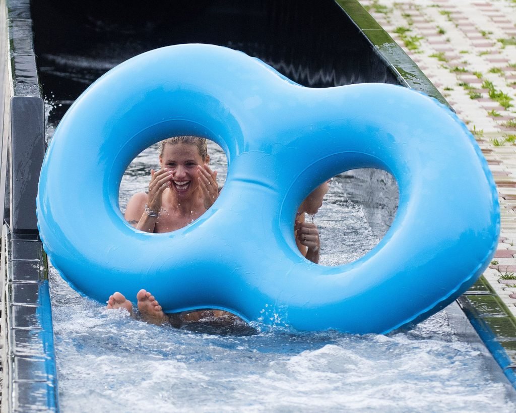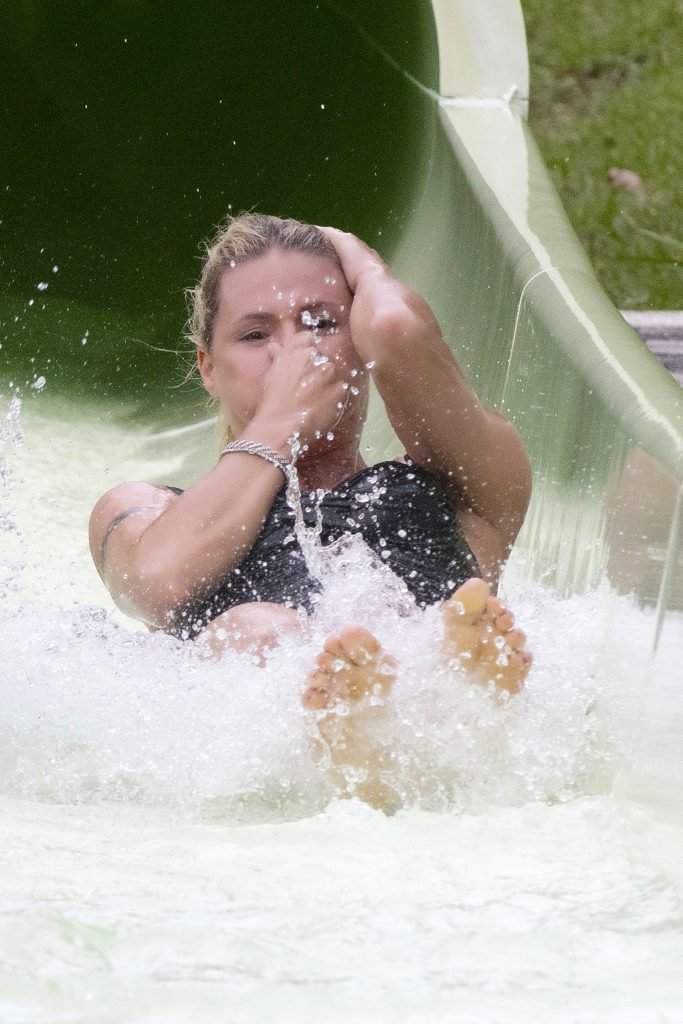 Michelle Hunziker, o marido Tomaso Trussardi, e seus filhos Sole, Celeste passam um dia no Aquafan em Riccione com Aurora Ramazzotti e seu namorado Goffredo, 11/07/2018.
