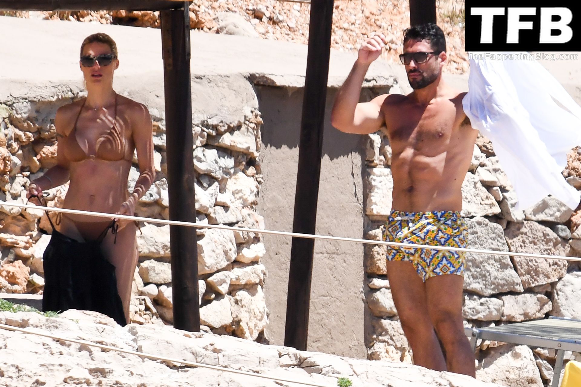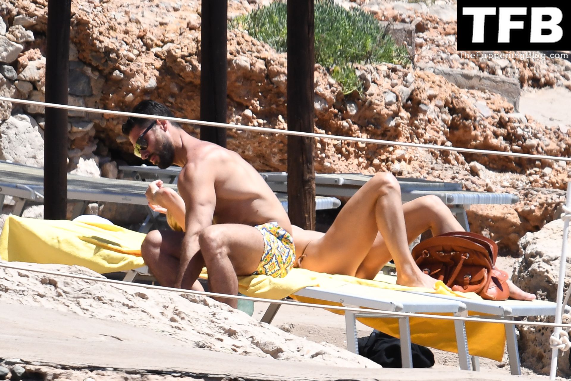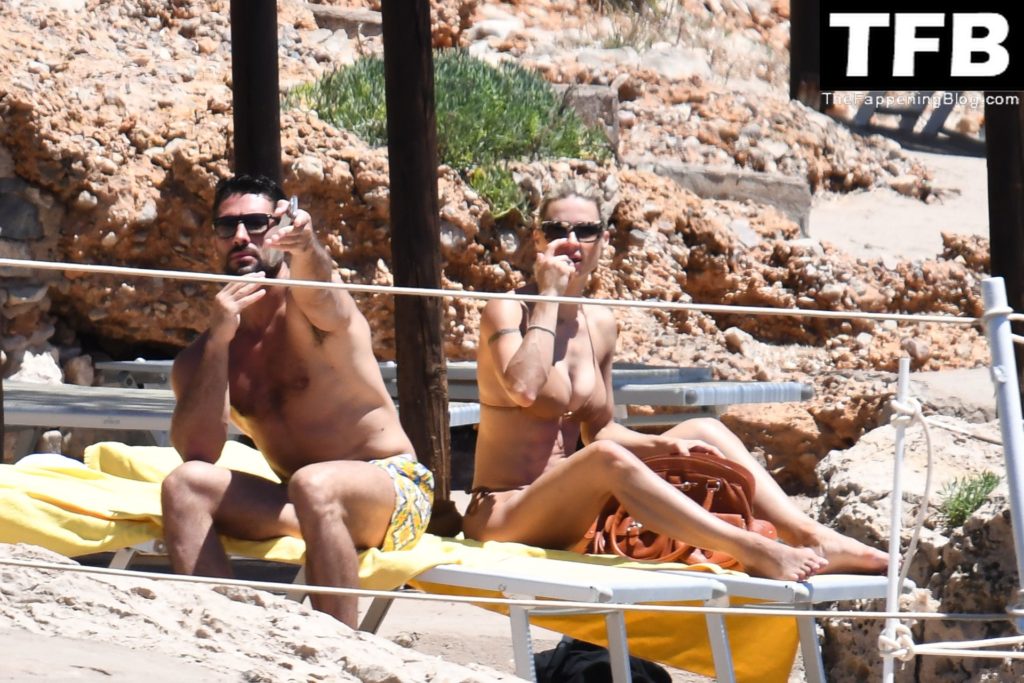 Michelle Hunziker & Giovanni Angiolini Relaxam na Praia do Hotel em Sardenha (16 Fotos)