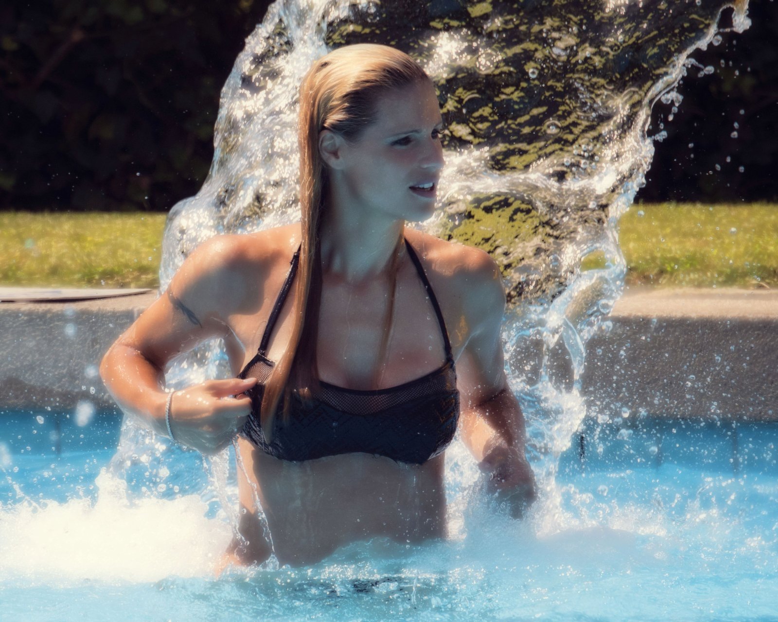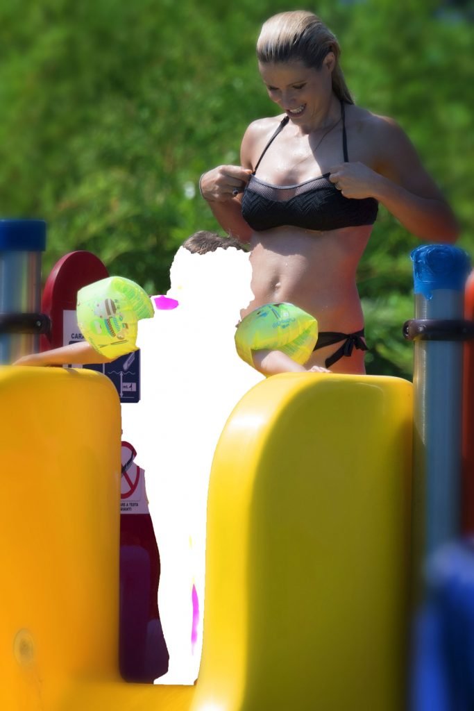 Michelle Hunziker aproveita um dia na piscina com a família em Mendrisio, Suíça, 08/03/2017. Michelle Hunziker é uma atriz suíço-italiana, cantora, ex-modelo. Idade – 40 anos.