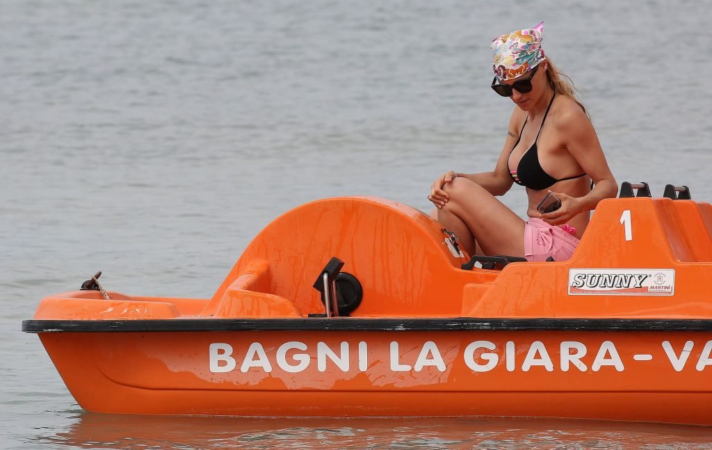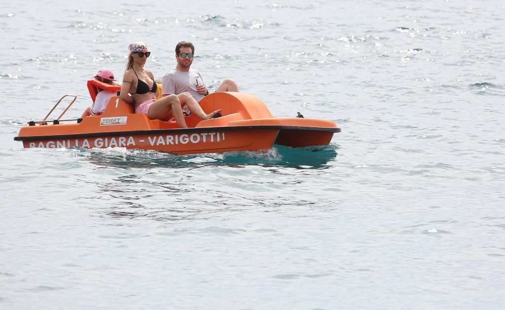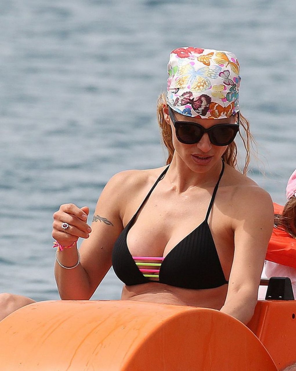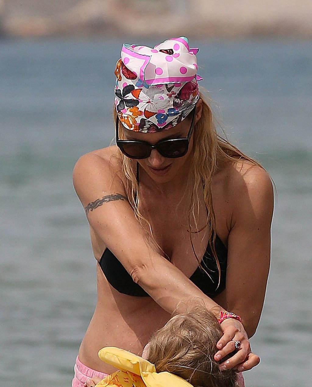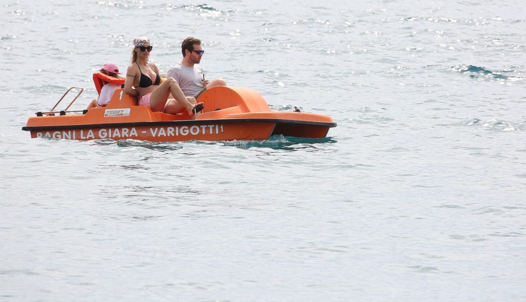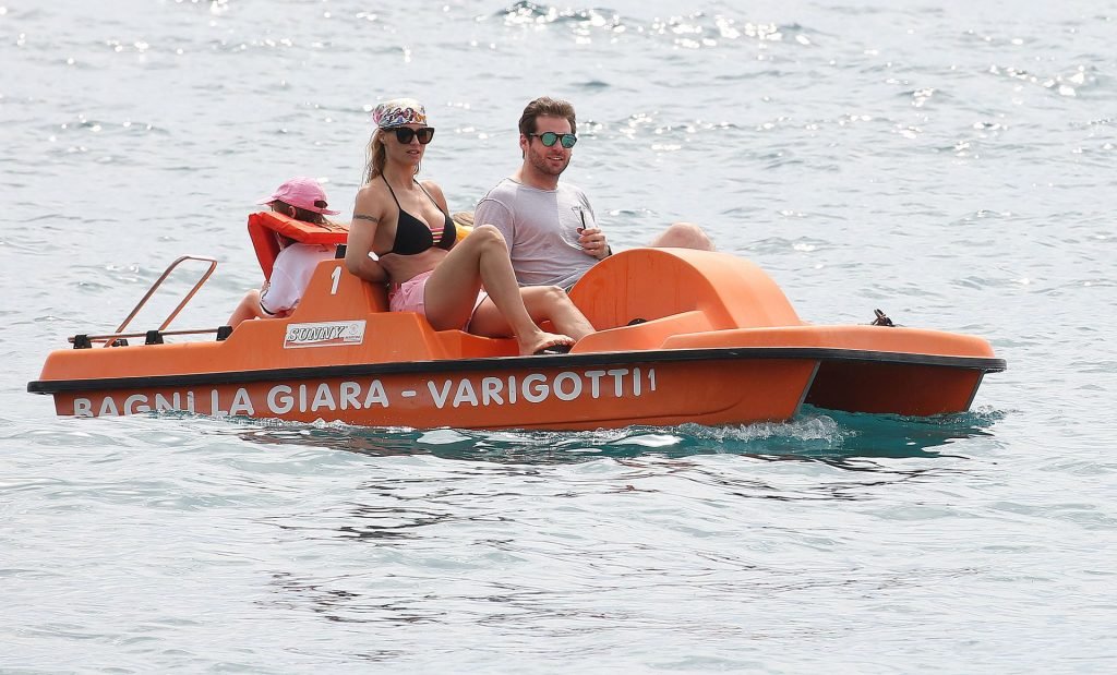 Michelle Hunziker foi vista de biquíni com sua família em uma praia na Ligúria, Itália, 09/06/2019.