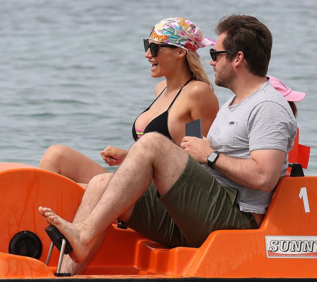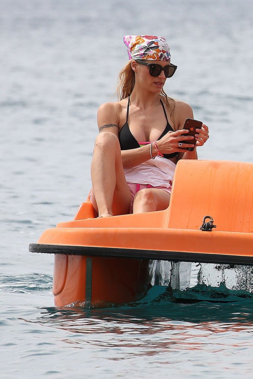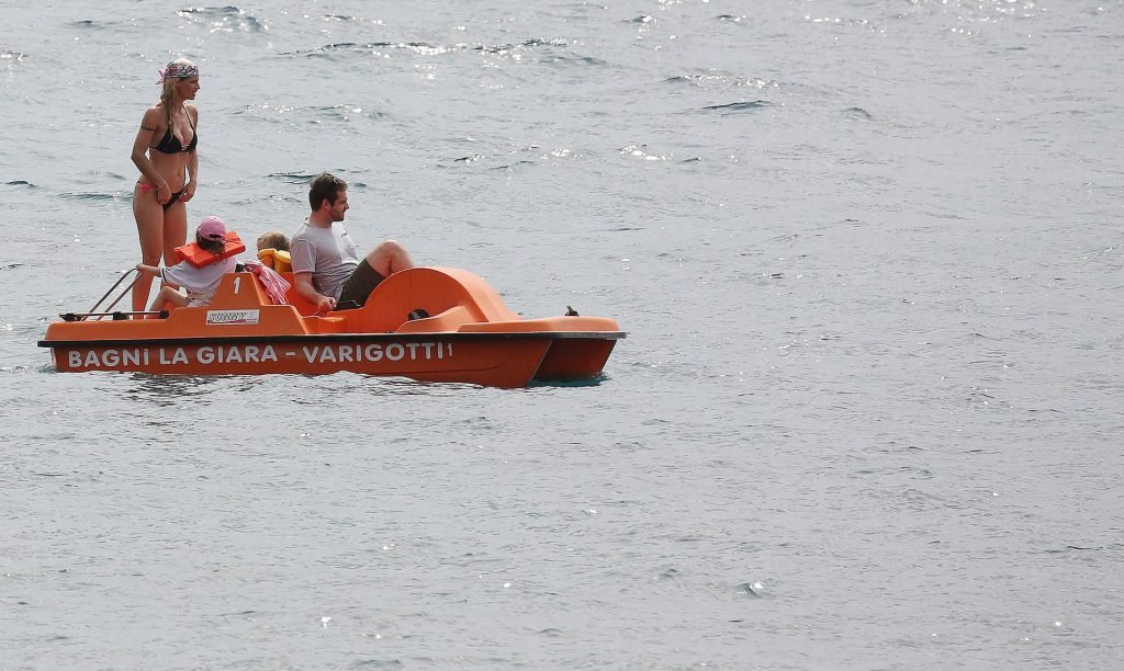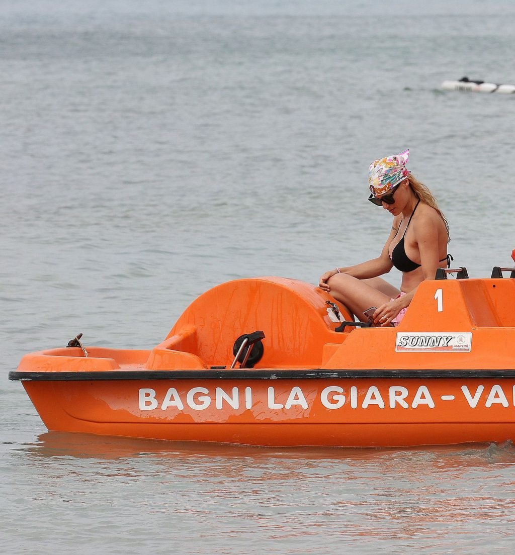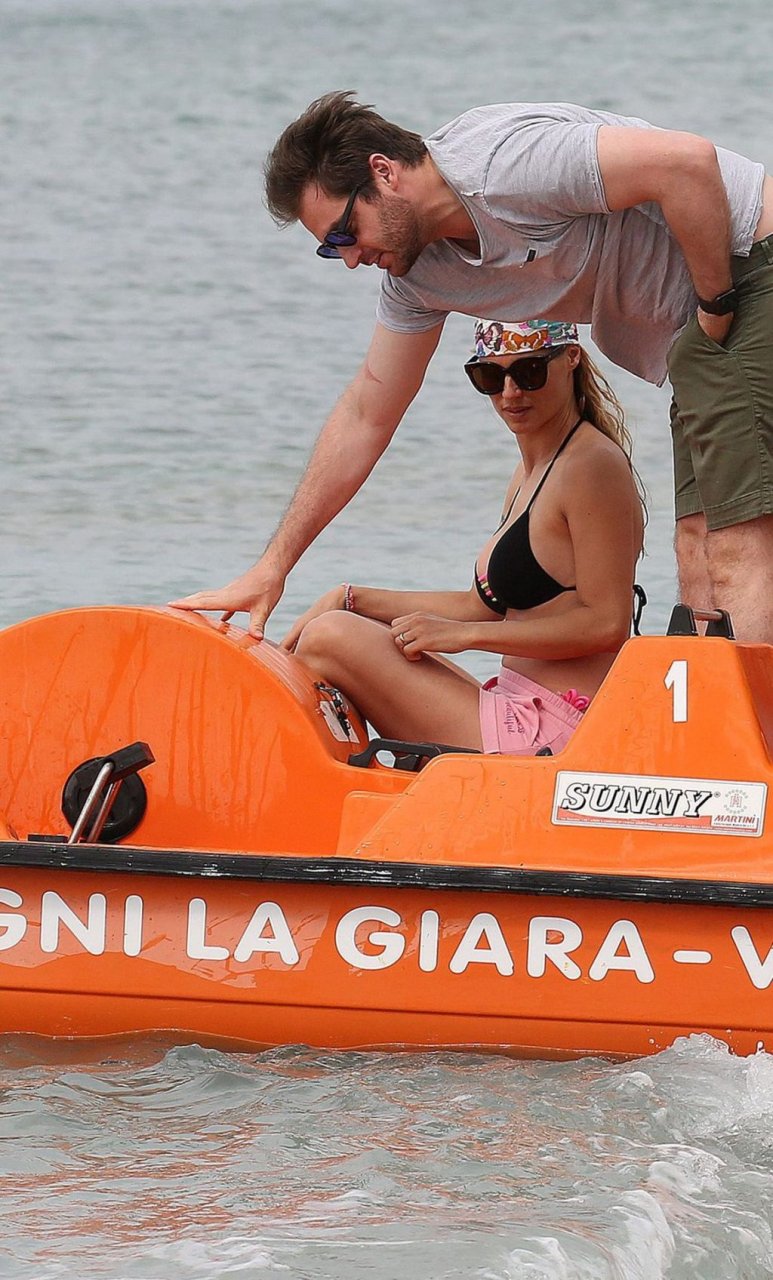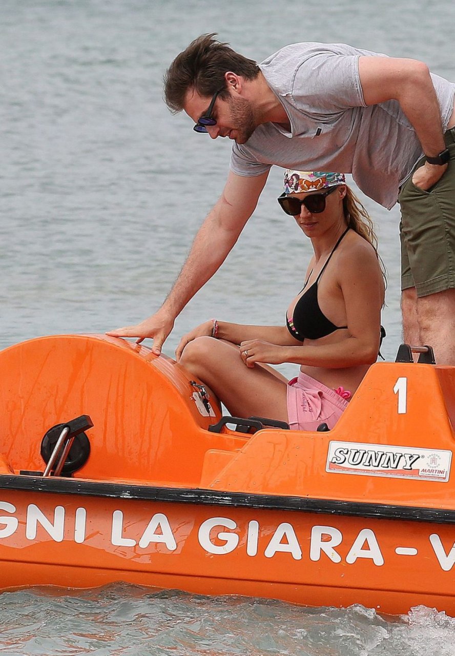 Michelle Hunziker foi vista de biquíni com sua família em uma praia na Ligúria, Itália, 09/06/2019.
