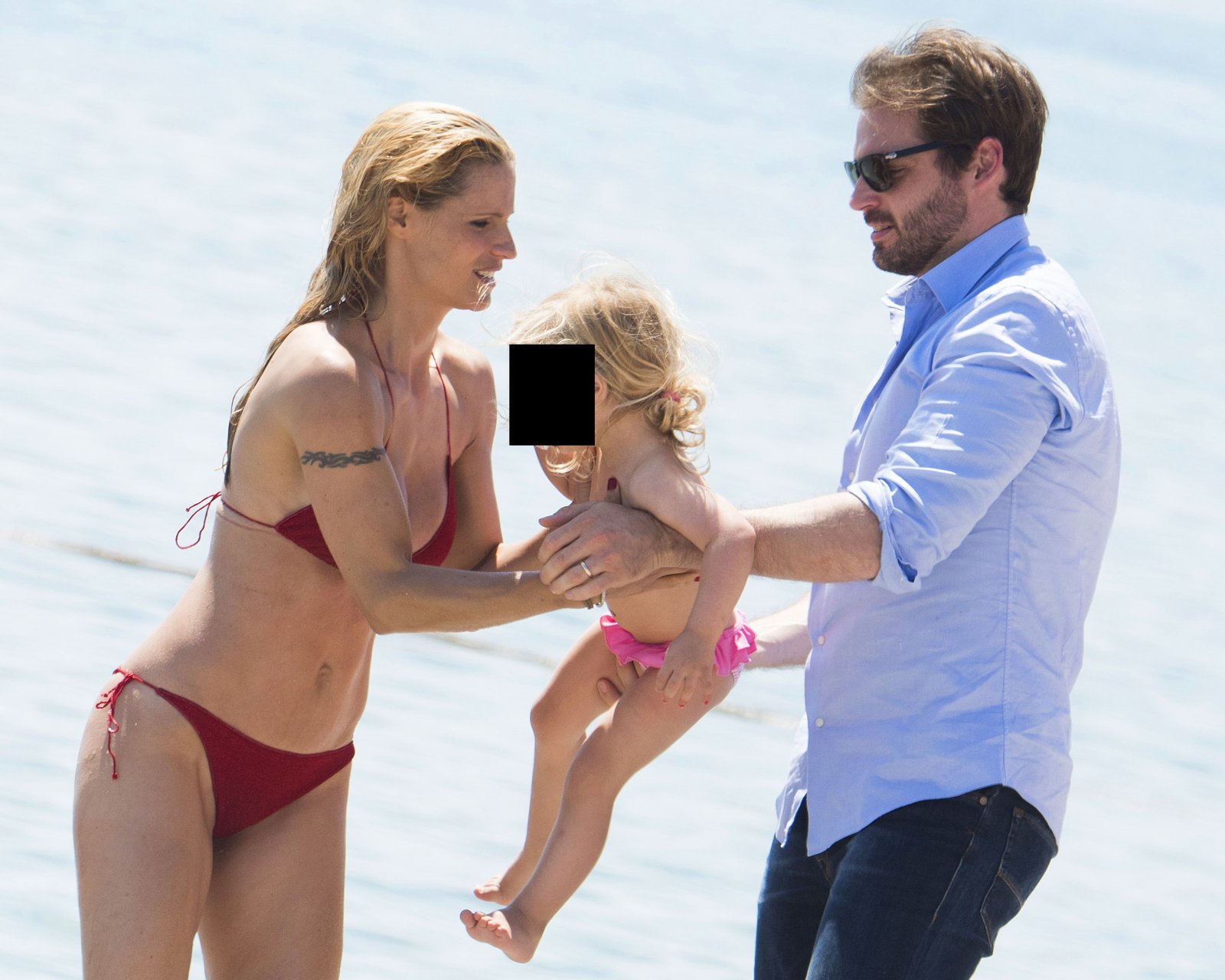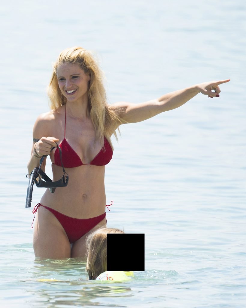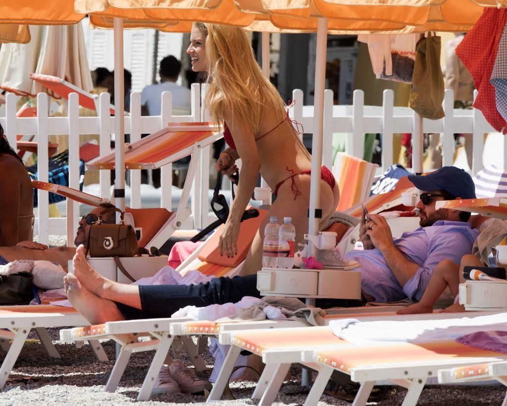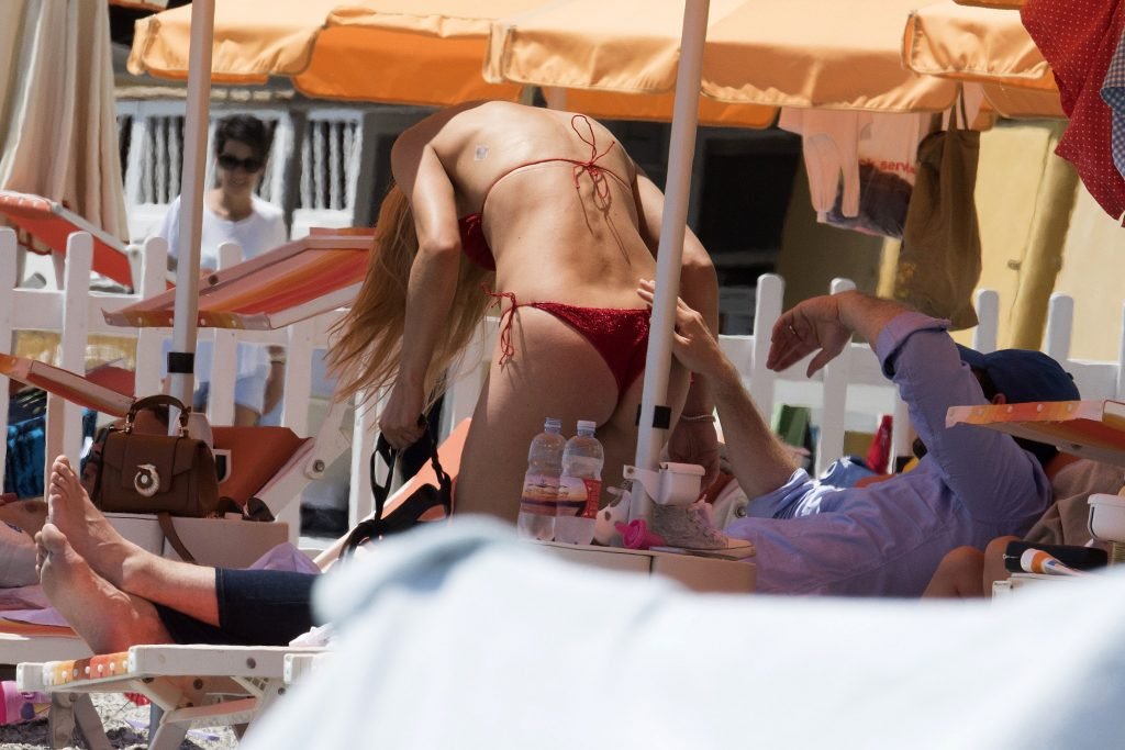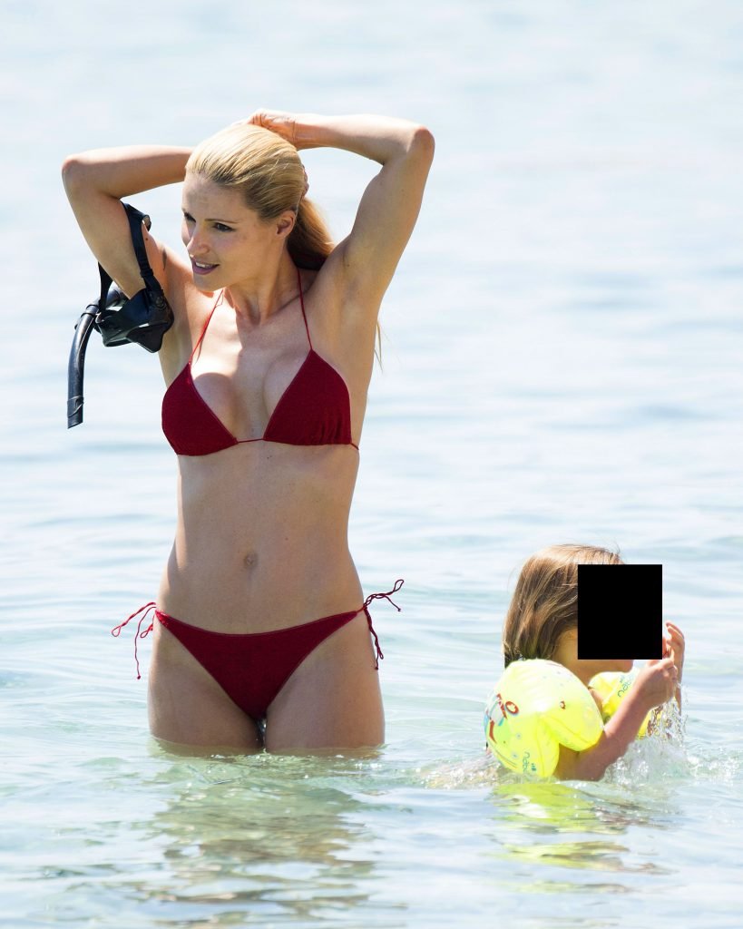 Michelle Hunziker usa um biquíni vermelho sexy na praia em Varigotti, 10/06/2017. Michelle Hunziker é uma atriz de televisão suíço-italiana (The Protagonists), modelo, apresentadora, cantora. Idade: 40 anos.