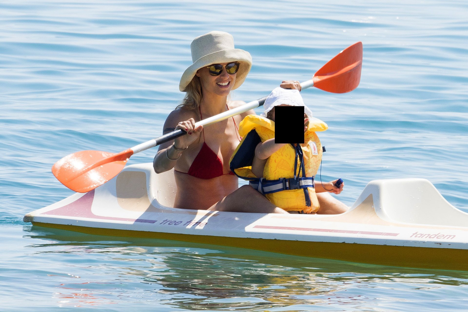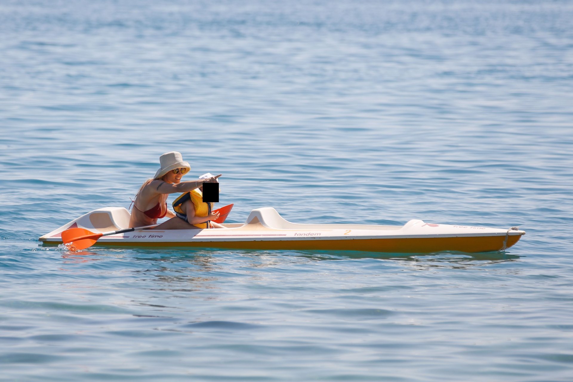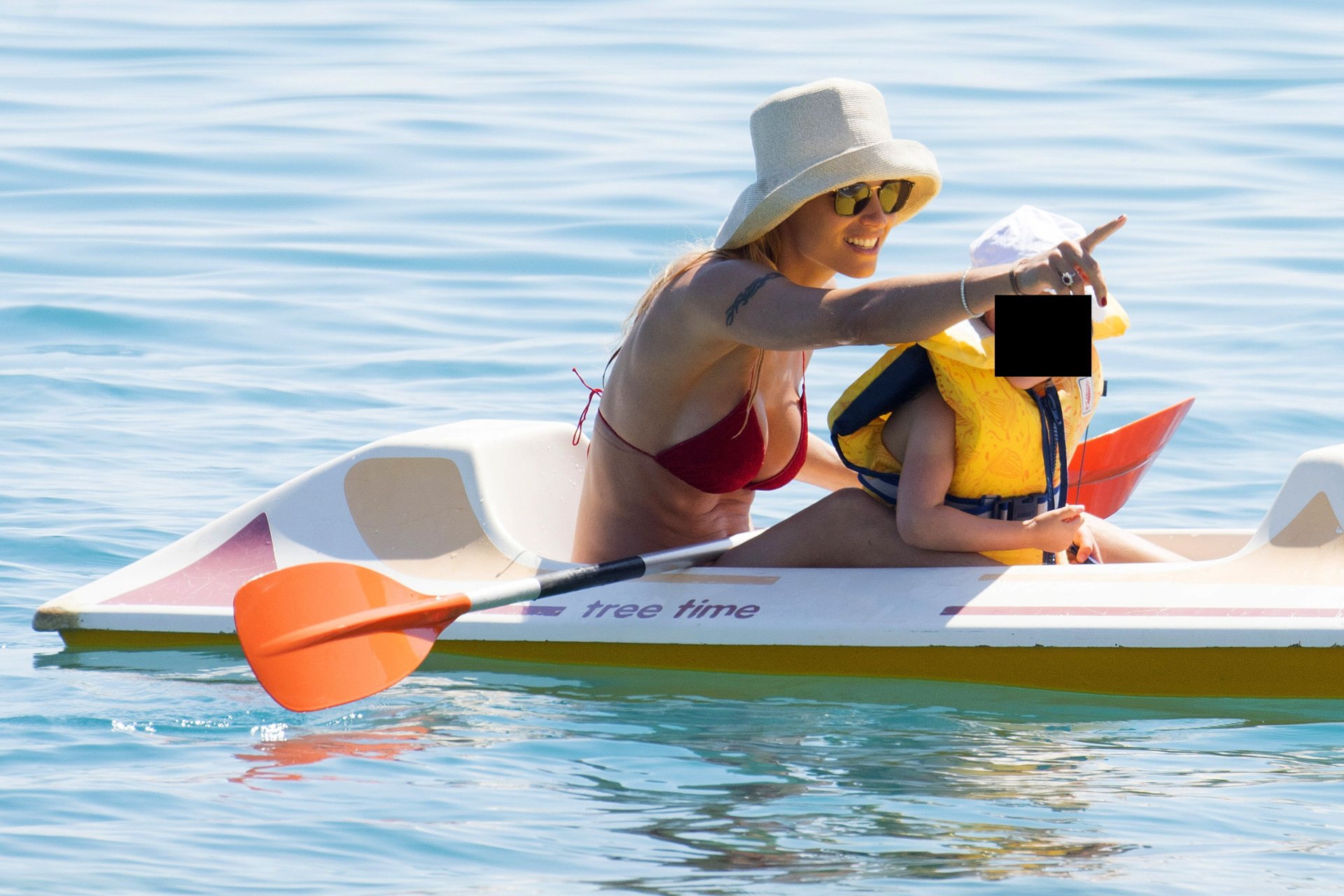 Michelle Hunziker usa um biquíni vermelho sexy na praia em Varigotti, 10/06/2017. Michelle Hunziker é uma atriz de televisão suíço-italiana (The Protagonists), modelo, apresentadora, cantora. Idade: 40 anos.