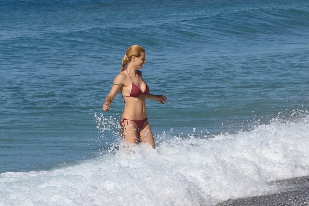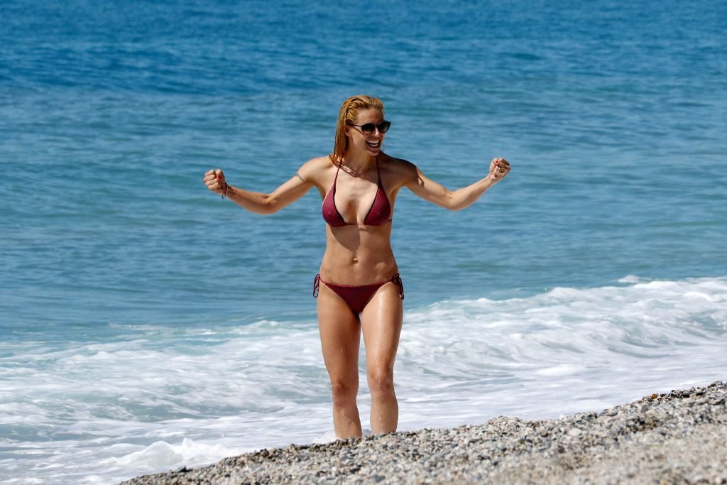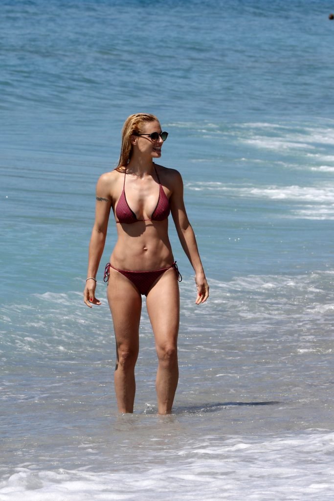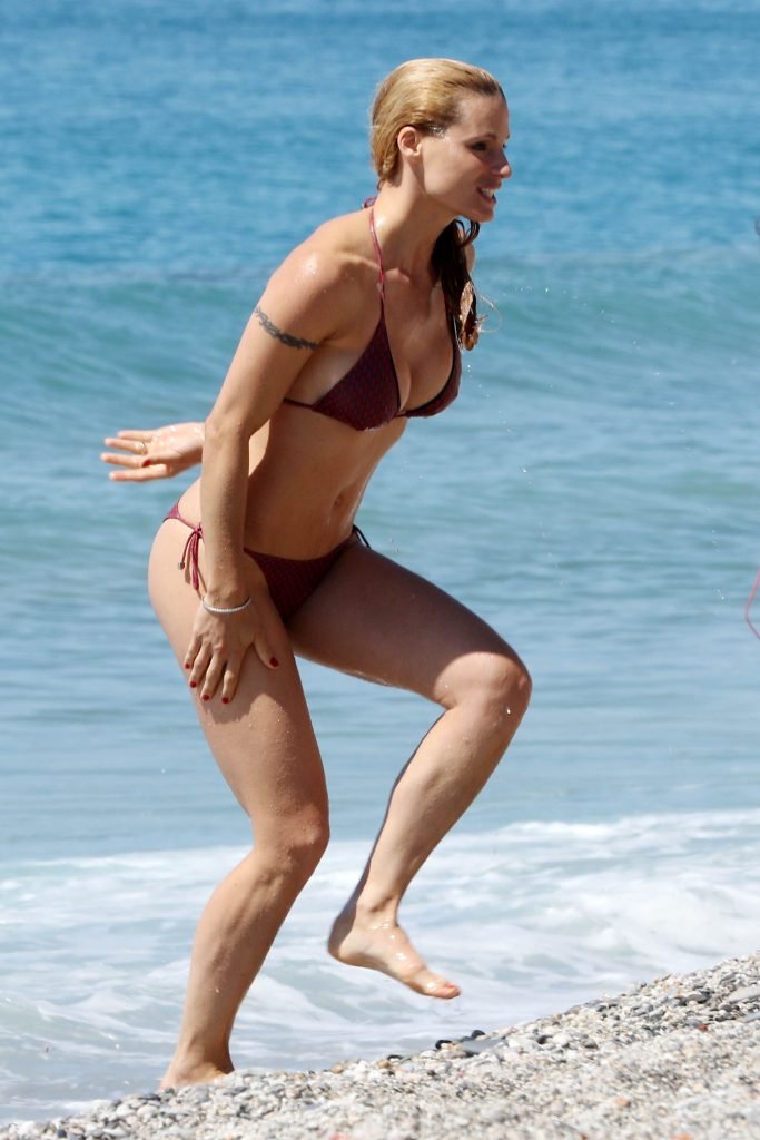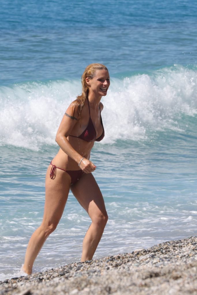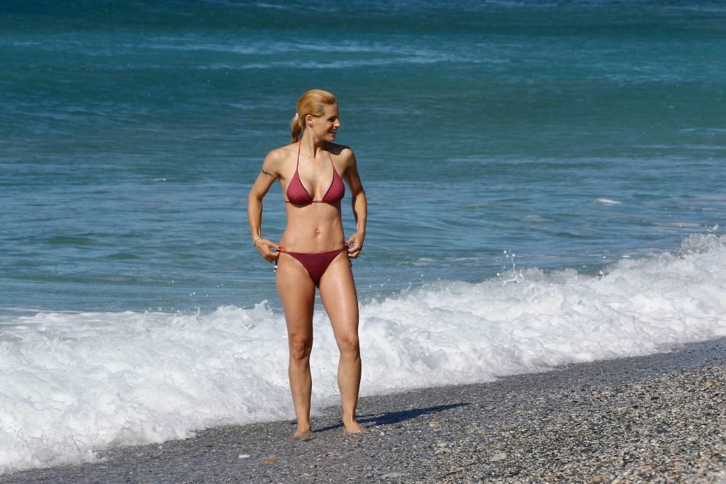 Michelle Hunziker vista na praia na Itália, 21/05/2017. Michelle Hunziker é uma modelo de televisão suíço-italiana, atriz (The Protagonists), apresentadora e cantora. Idade: 40.