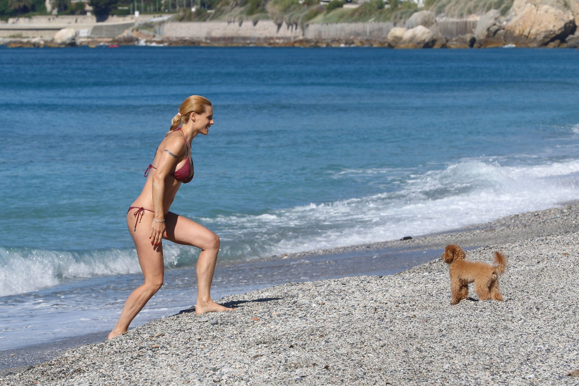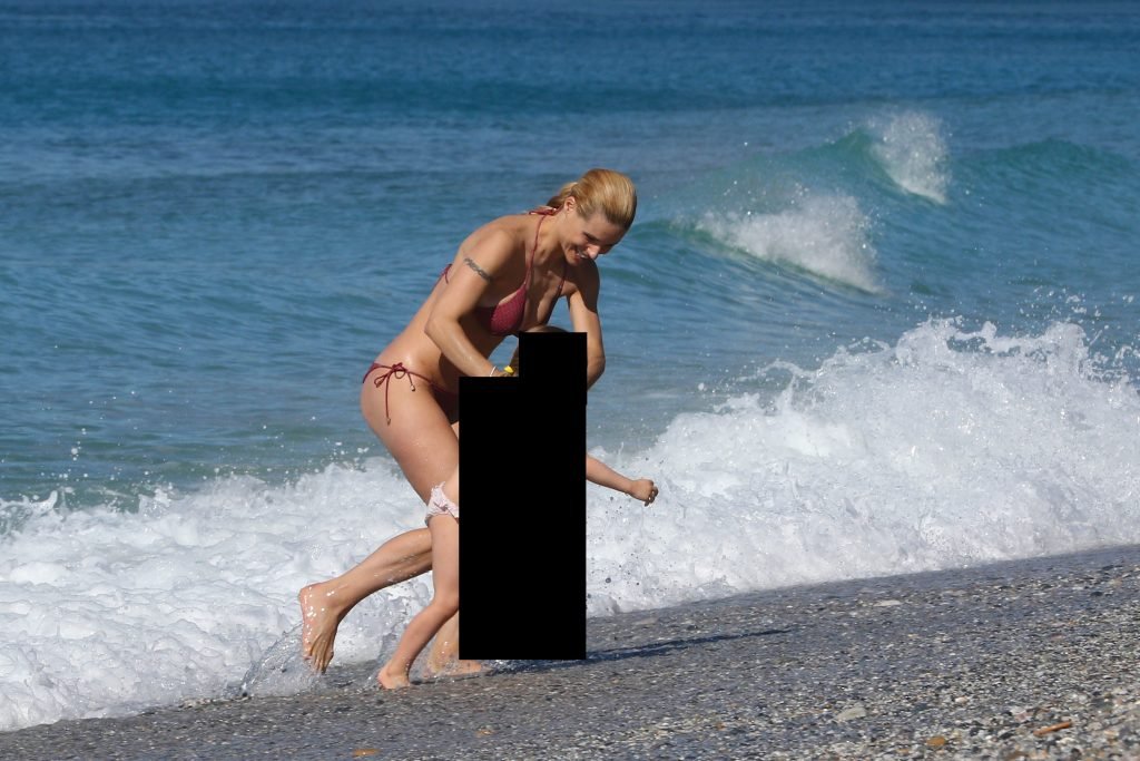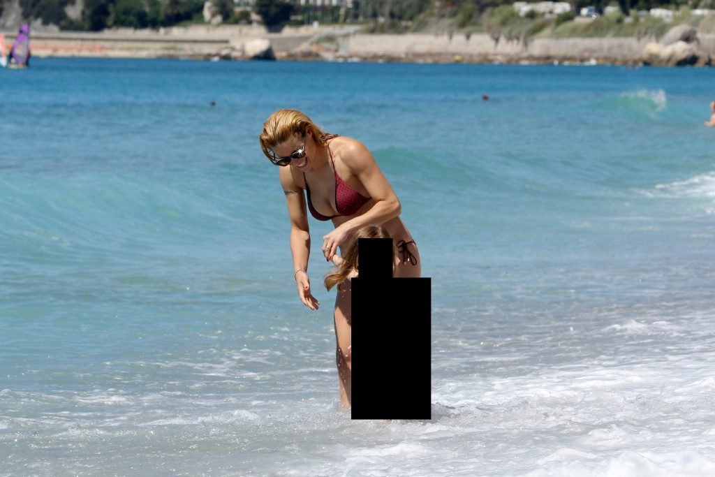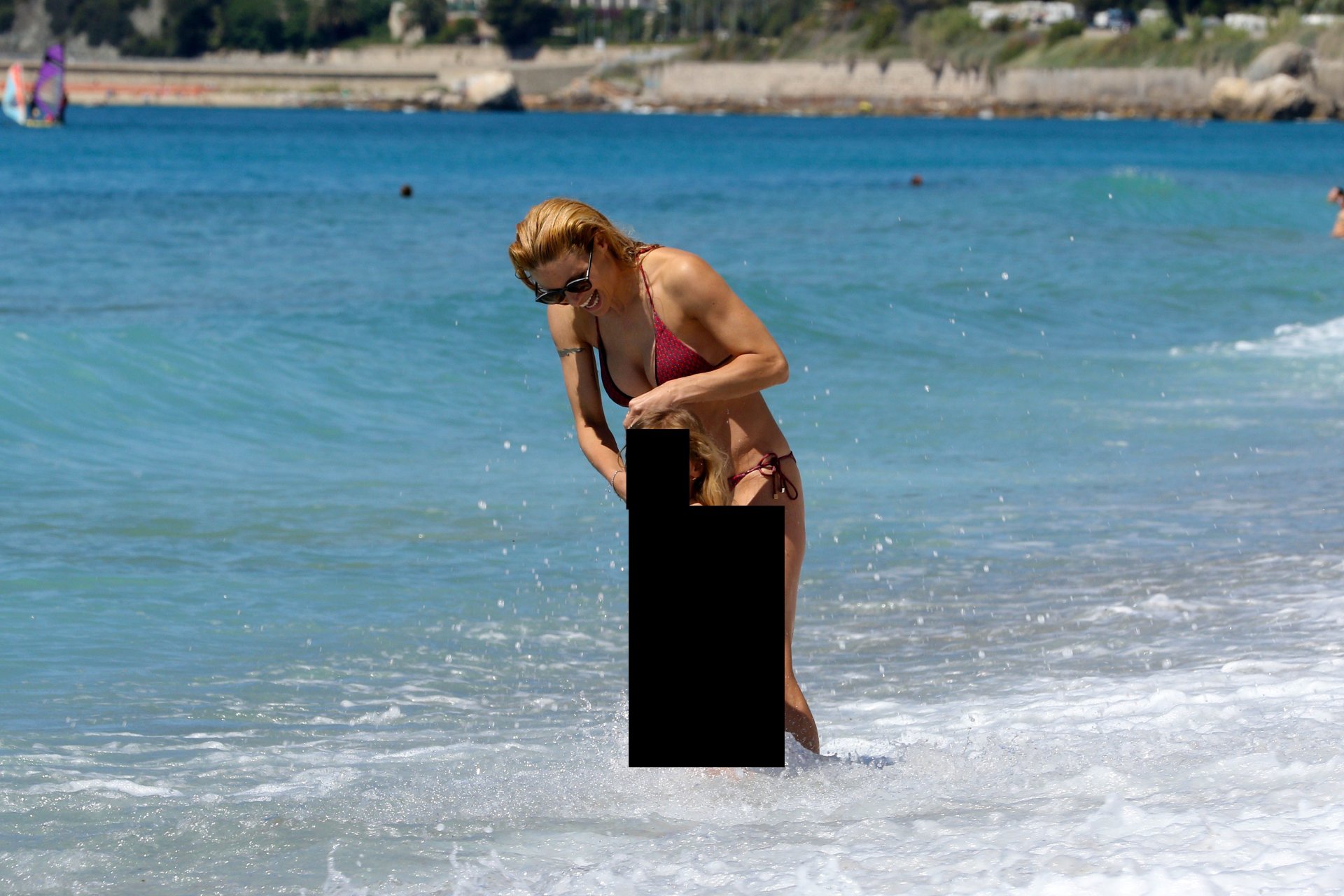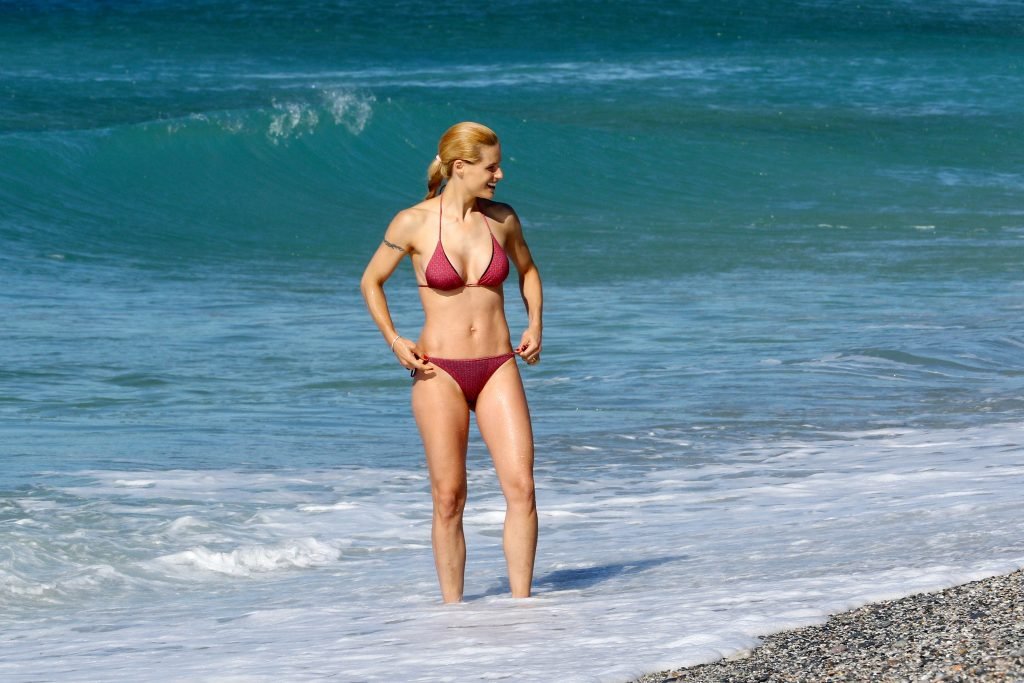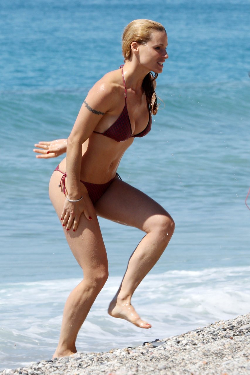 Michelle Hunziker vista na praia na Itália, 21/05/2017. Michelle Hunziker é uma modelo de televisão suíço-italiana, atriz (The Protagonists), apresentadora e cantora. Idade: 40.