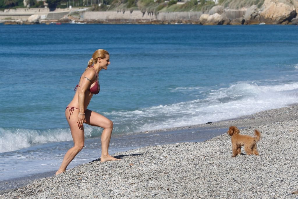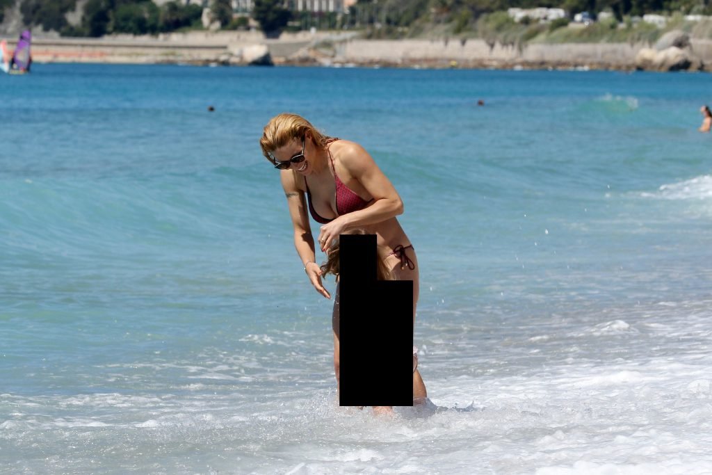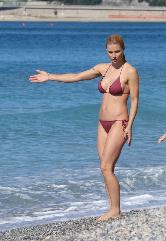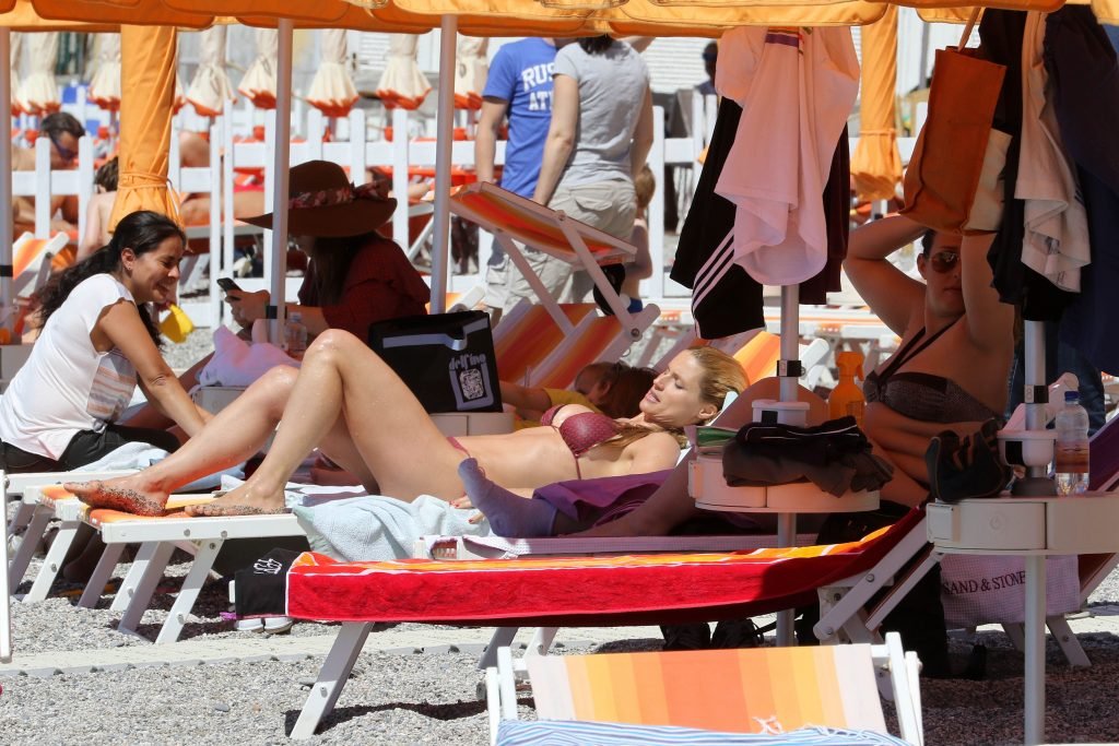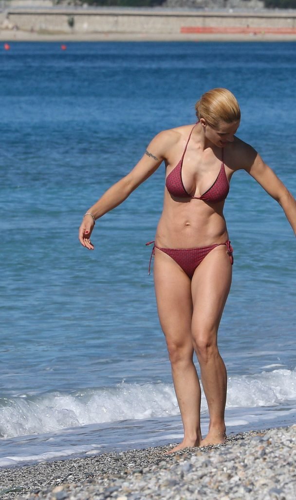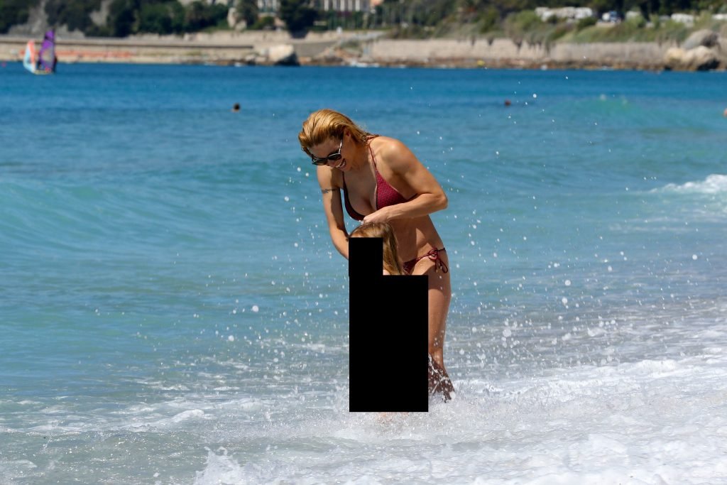 Michelle Hunziker vista na praia na Itália, 21/05/2017. Michelle Hunziker é uma modelo de televisão suíço-italiana, atriz (The Protagonists), apresentadora e cantora. Idade: 40.