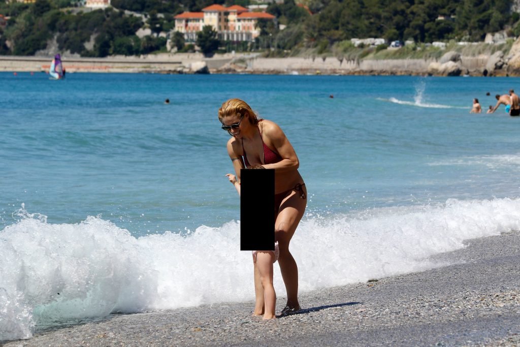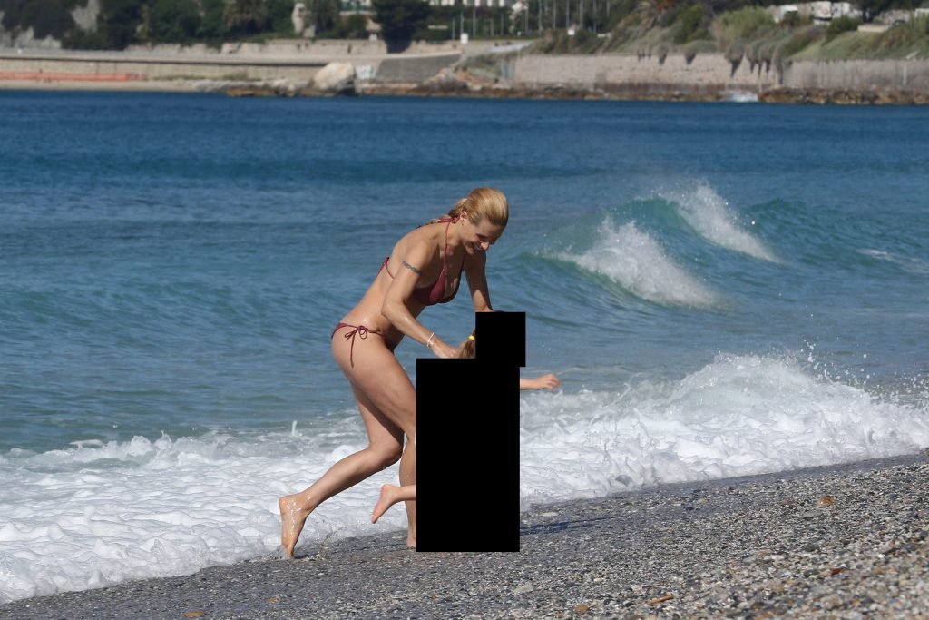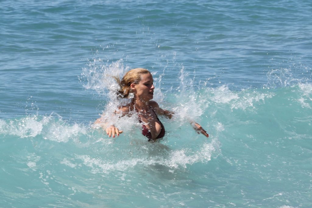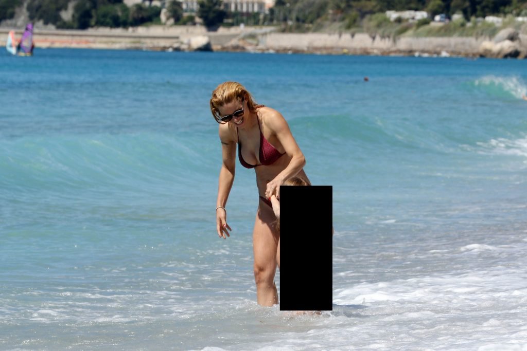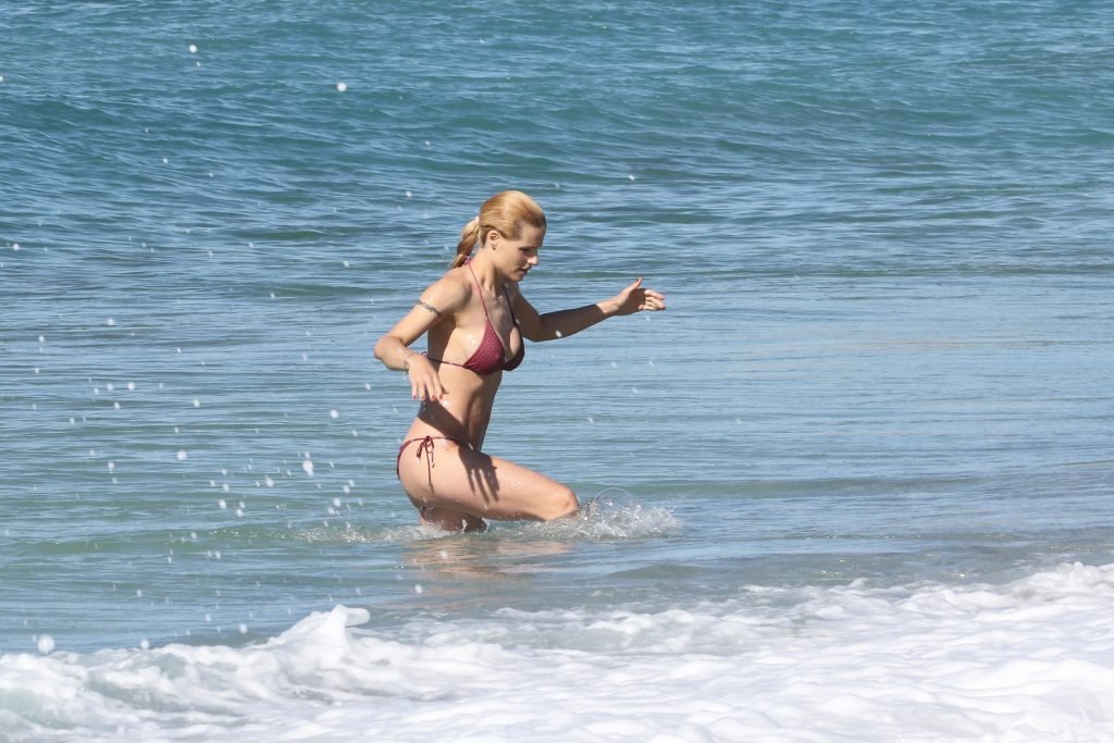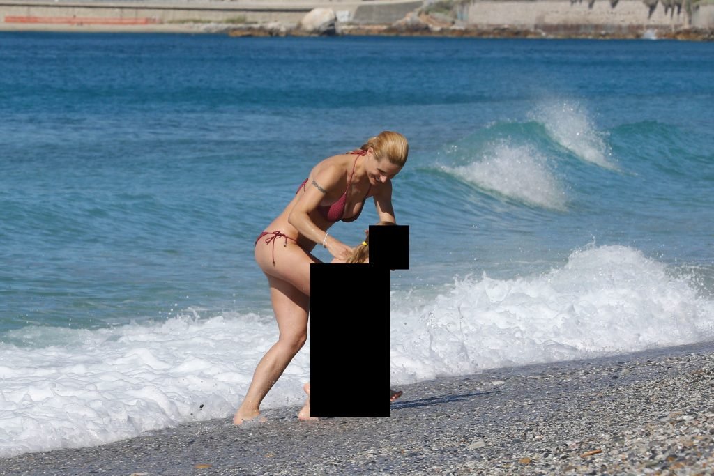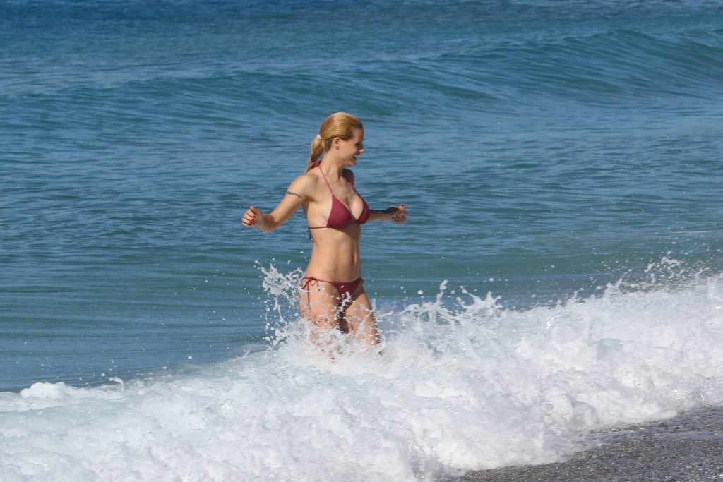 Michelle Hunziker vista na praia na Itália, 21/05/2017. Michelle Hunziker é uma modelo de televisão suíço-italiana, atriz (The Protagonists), apresentadora e cantora. Idade: 40.