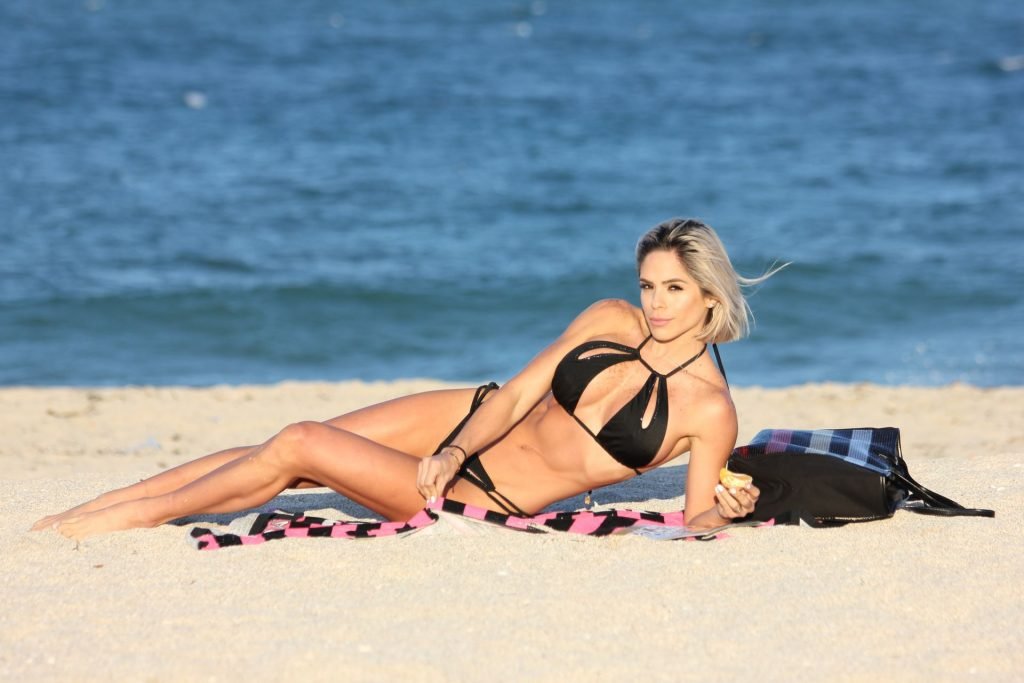 A estrela mundial do fitness é conhecida ao redor do mundo por seus abdômenes e corpo de biquíni perfeitamente em forma. Ela tirou um tempo de sua agenda agitada de viagens para tomar sol na praia em Miami, 23/04/2019.