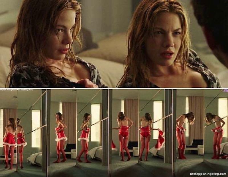 Michelle está entrando em outro cômodo enquanto tira um vestido vermelho de Natal para revelar seus seios e seu bumbum com uma calcinha vermelha, depois senta-se na cama e tira suas meias arrastão vermelhas antes de se deitar sob as cobertas, tudo isso enquanto conversa com um homem e nos mostra mais do seu decote e um breve vislumbre de seu mamilo.