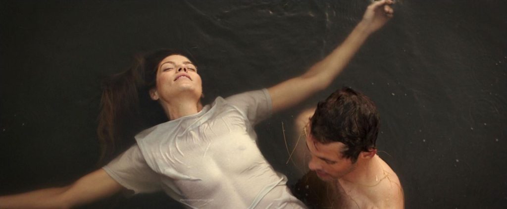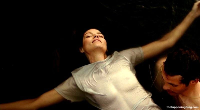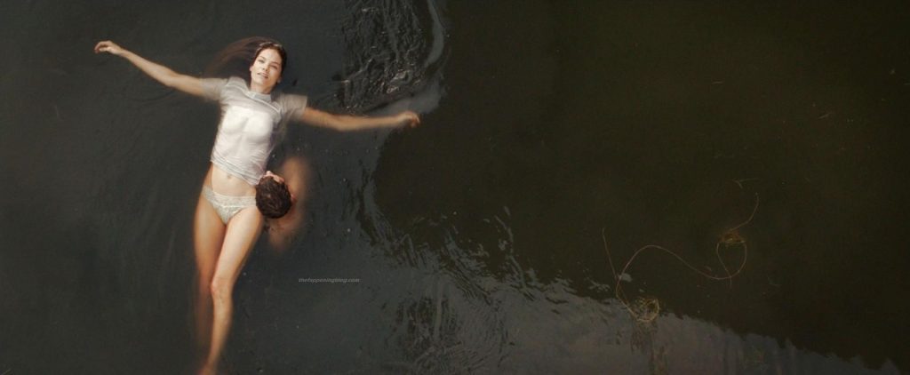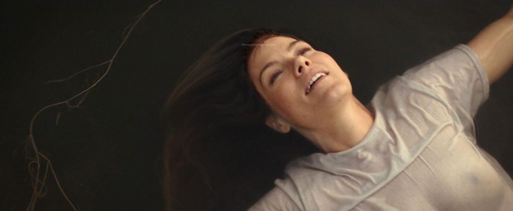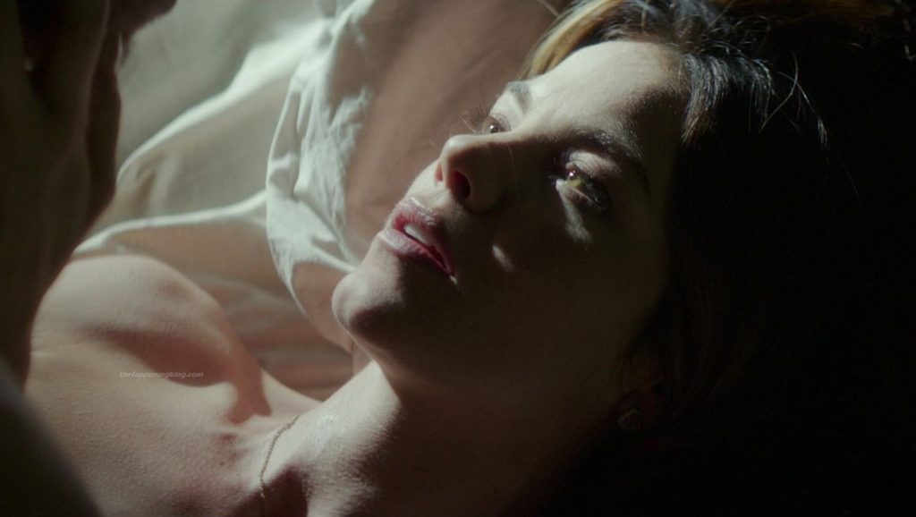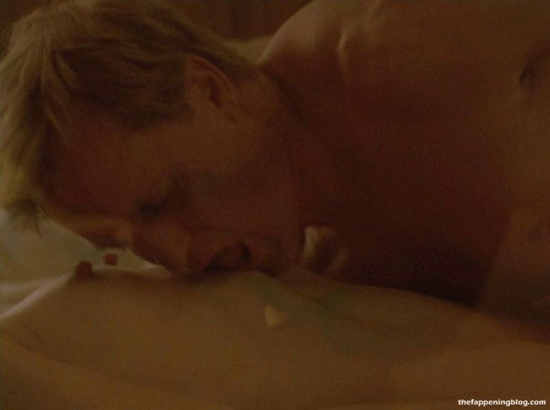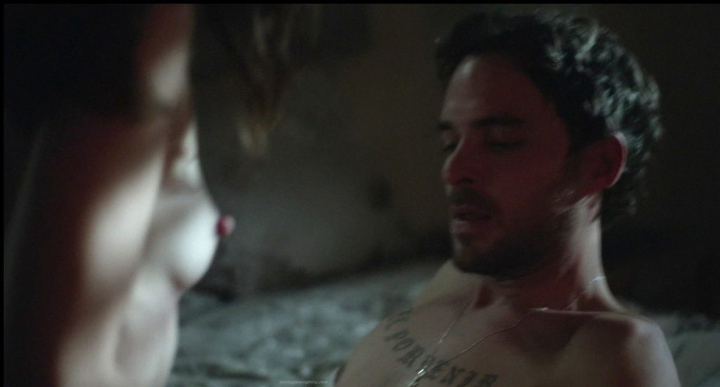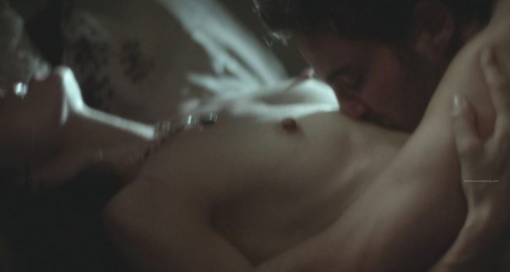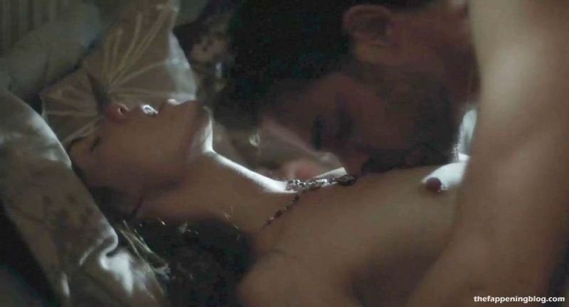 Monaghan está se movendo sem camisa na cama enquanto tenta se aconchegar com um homem, nos dando vários vislumbres de seus mamilos durante o processo.