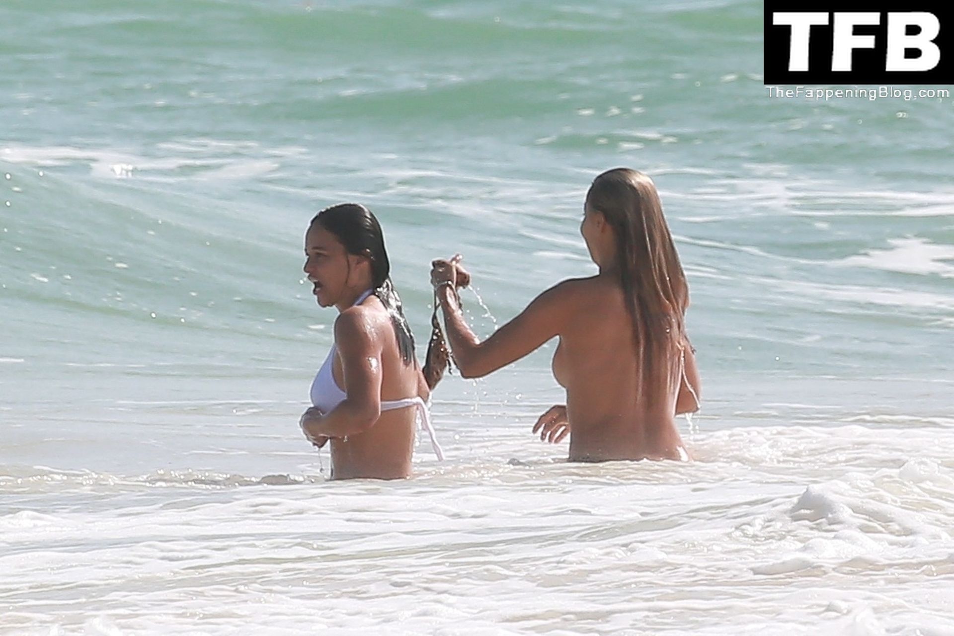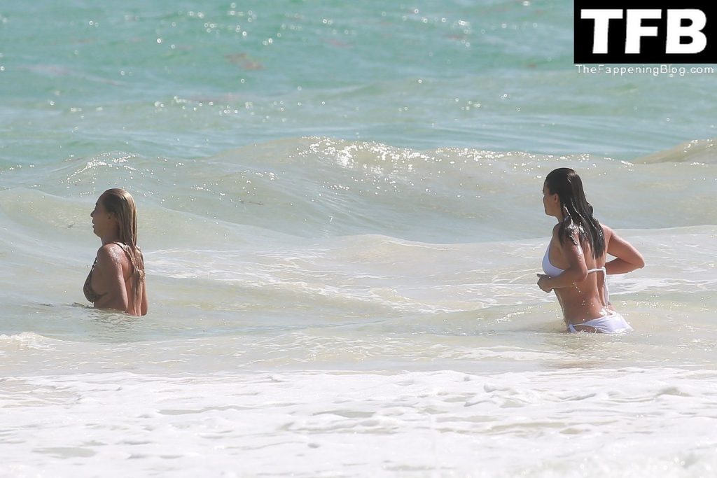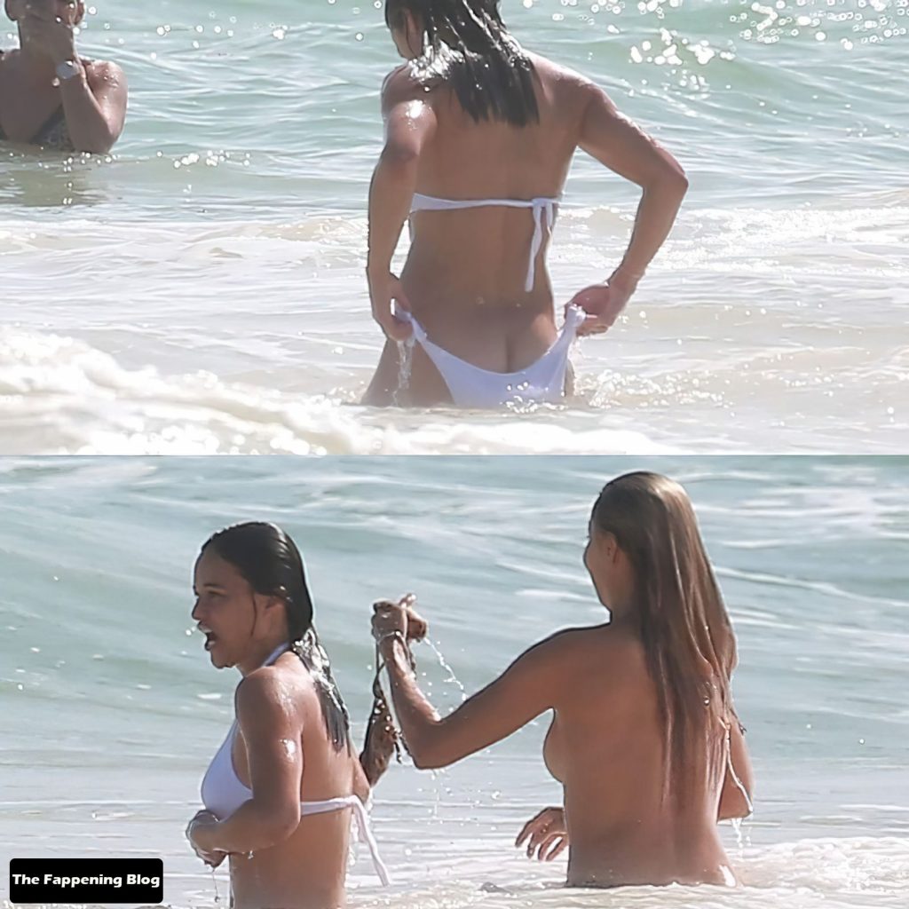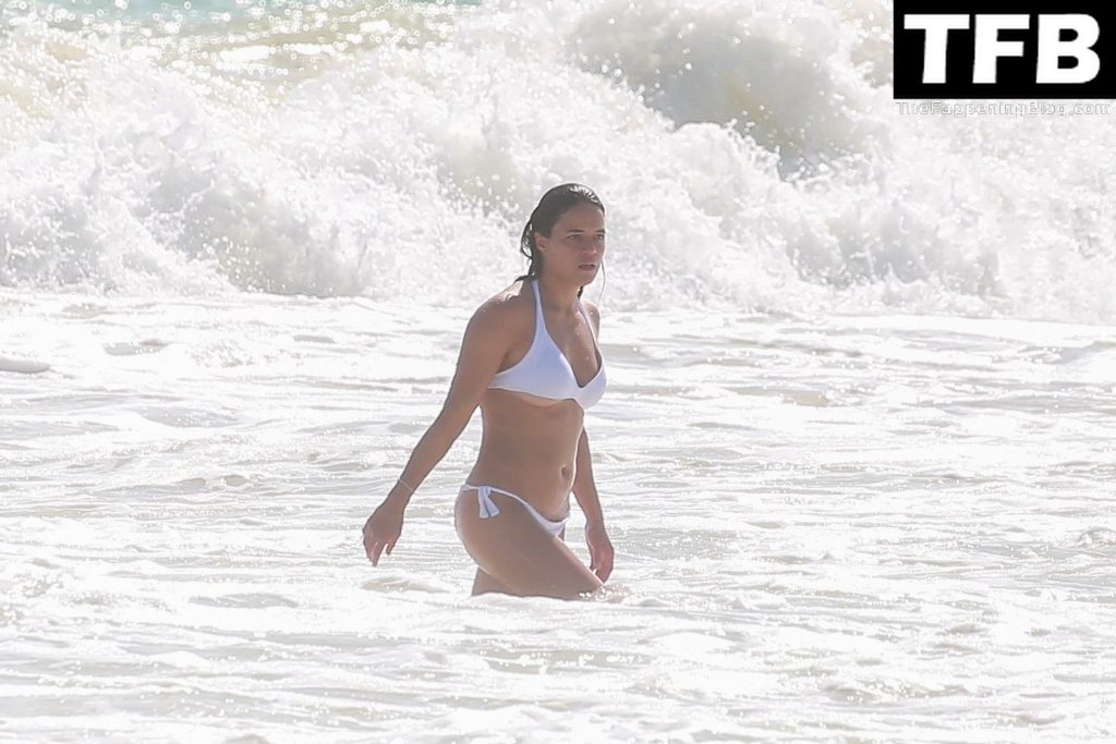 Michelle Rodriguez mostra um pouco demais com biquíni branco enquanto está de férias com uma loira misteriosa em Tulum, México, 28/12/2021.