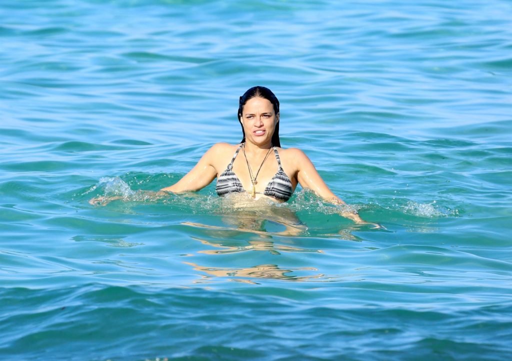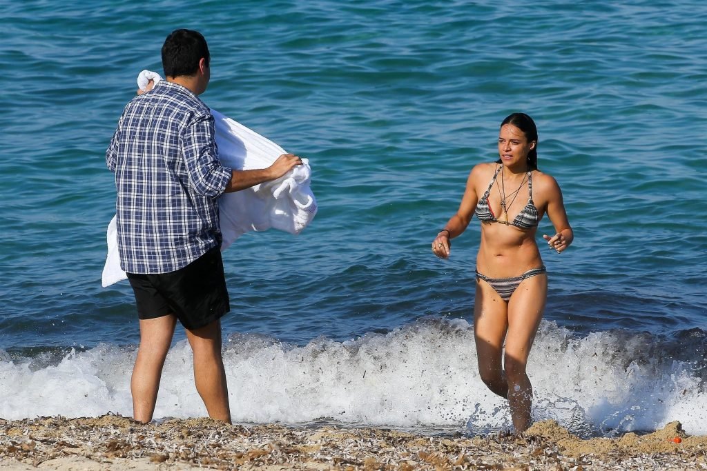 Michelle Rodriguez e Mohammed Al Turki dão um mergulho em Saint-Tropez, 07/09/2017. Michelle Rodriguez é uma atriz americana (The Assignment), roteirista, DJ. Idade: 38 anos.