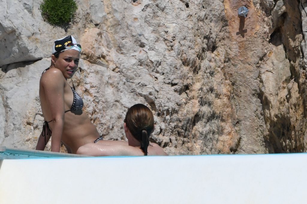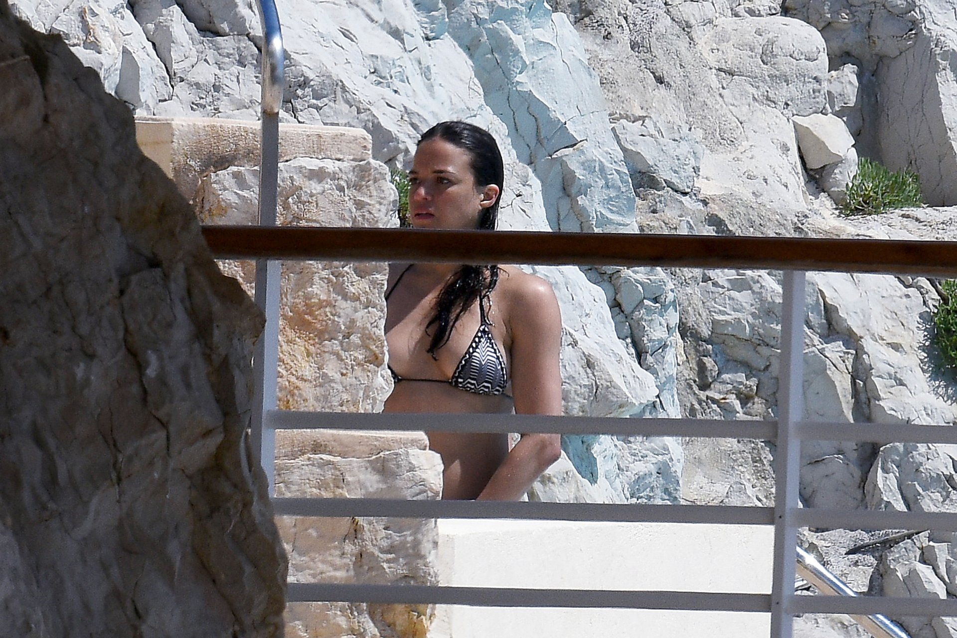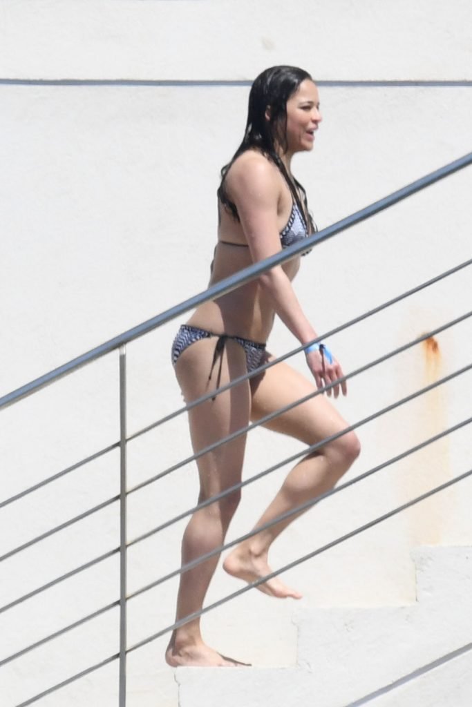 Michelle Rodriguez é vista de biquíni no Eden Roc Hotel em Antibes, França, 14/05/2018. Michelle Rodriguez é uma atriz americana de TV e cinema (The Assignment), roteirista, DJ. Idade: 39 anos.