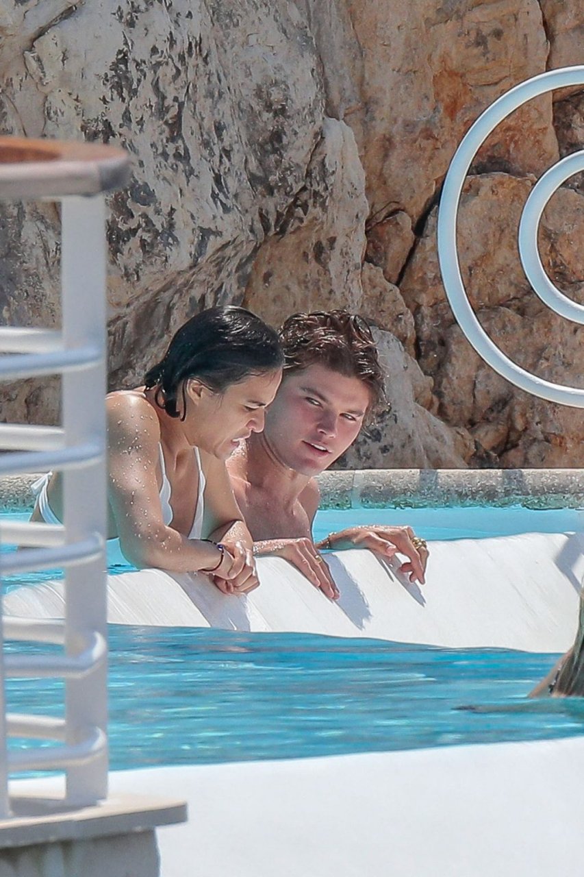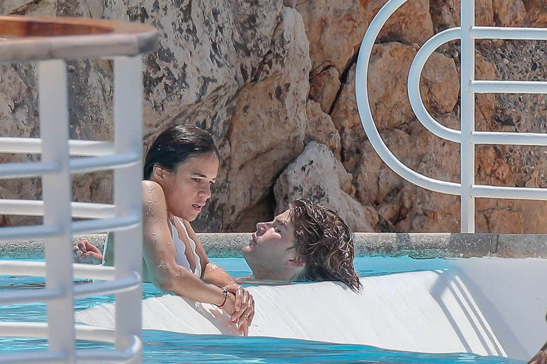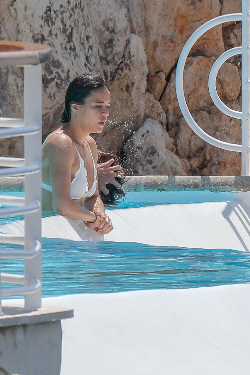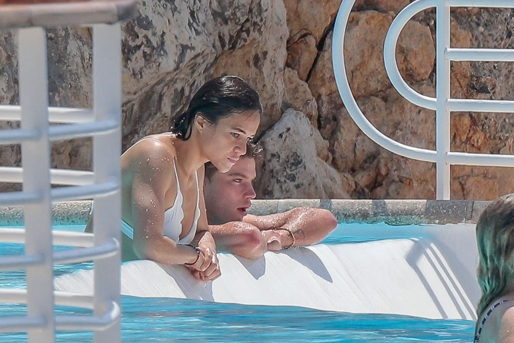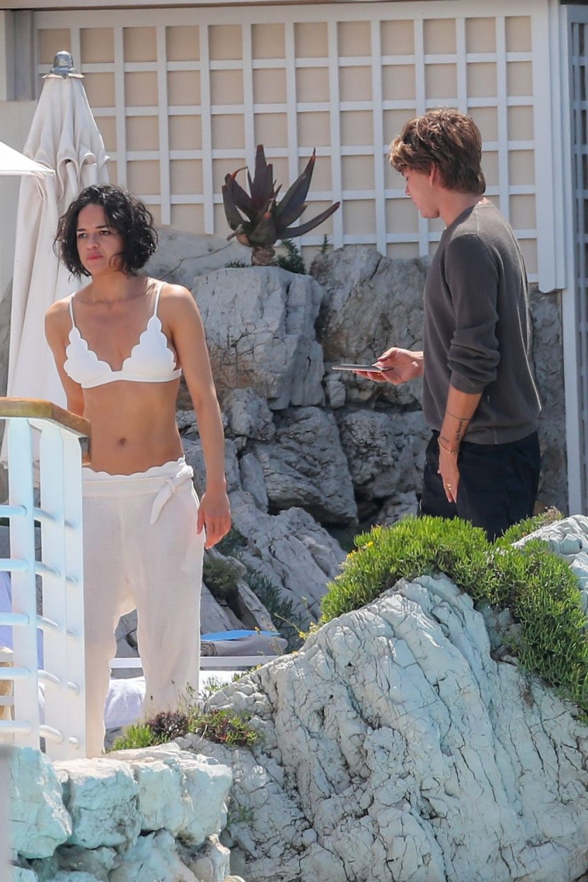 A atriz Michelle Rodriguez foi fotografada exibindo seu corpo tonificado de biquíni enquanto desfrutava de um mergulho com o modelo australiano Jordan Barrett no Hotel du Cap-Eden-Roc em Cannes, 22/05/2019.