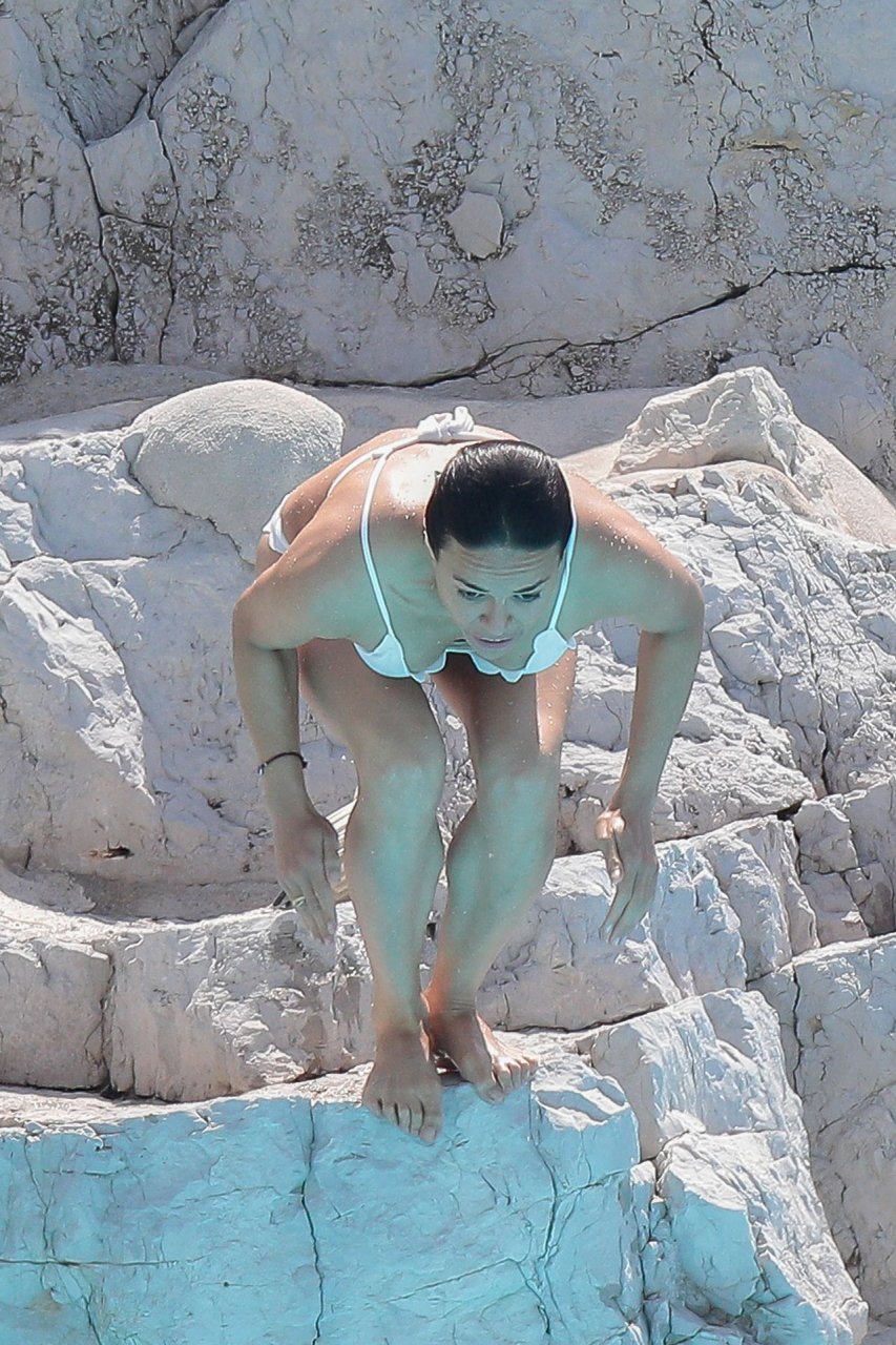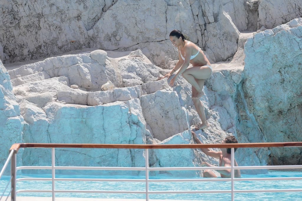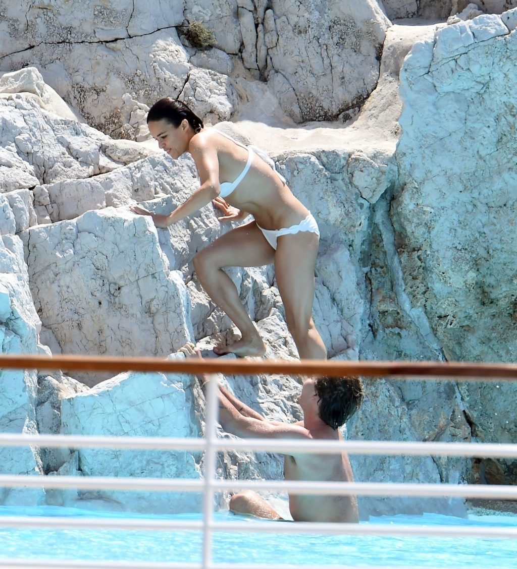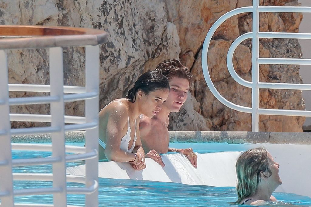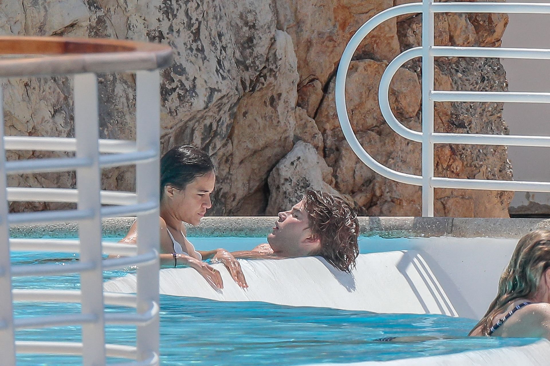 A atriz Michelle Rodriguez foi fotografada exibindo seu corpo tonificado de biquíni enquanto desfrutava de um mergulho com o modelo australiano Jordan Barrett no Hotel du Cap-Eden-Roc em Cannes, 22/05/2019.