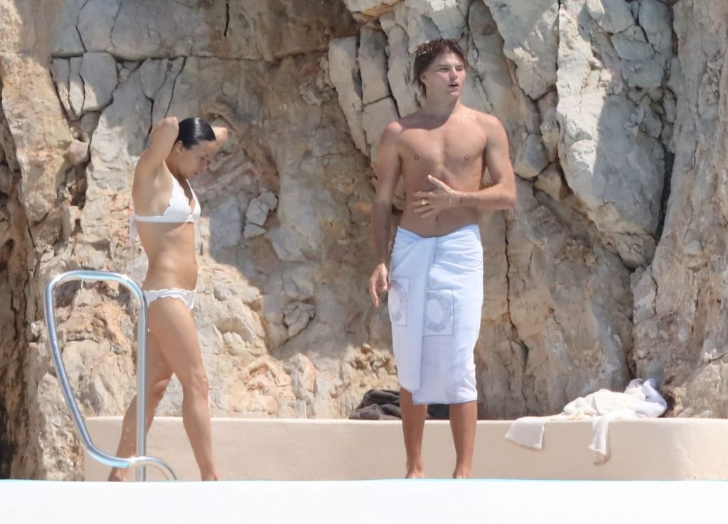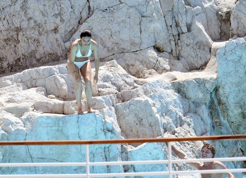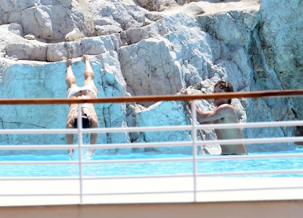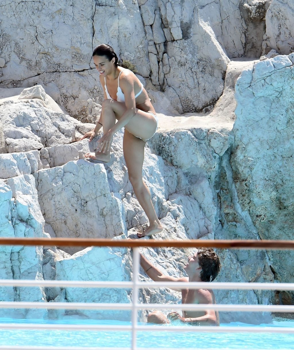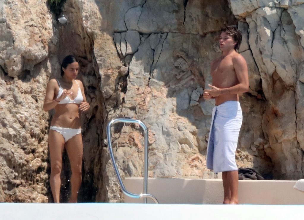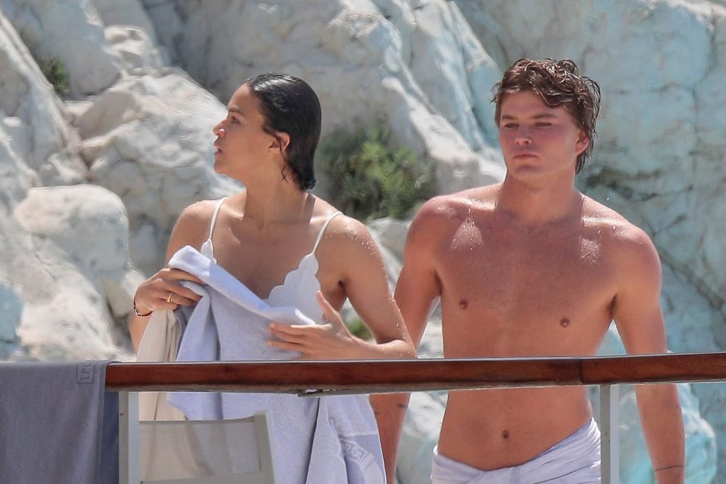 A atriz Michelle Rodriguez foi fotografada exibindo seu corpo tonificado de biquíni enquanto desfrutava de um mergulho com o modelo australiano Jordan Barrett no Hotel du Cap-Eden-Roc em Cannes, 22/05/2019.