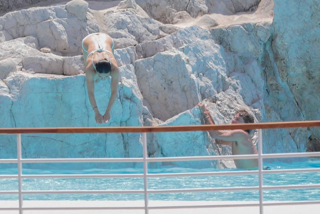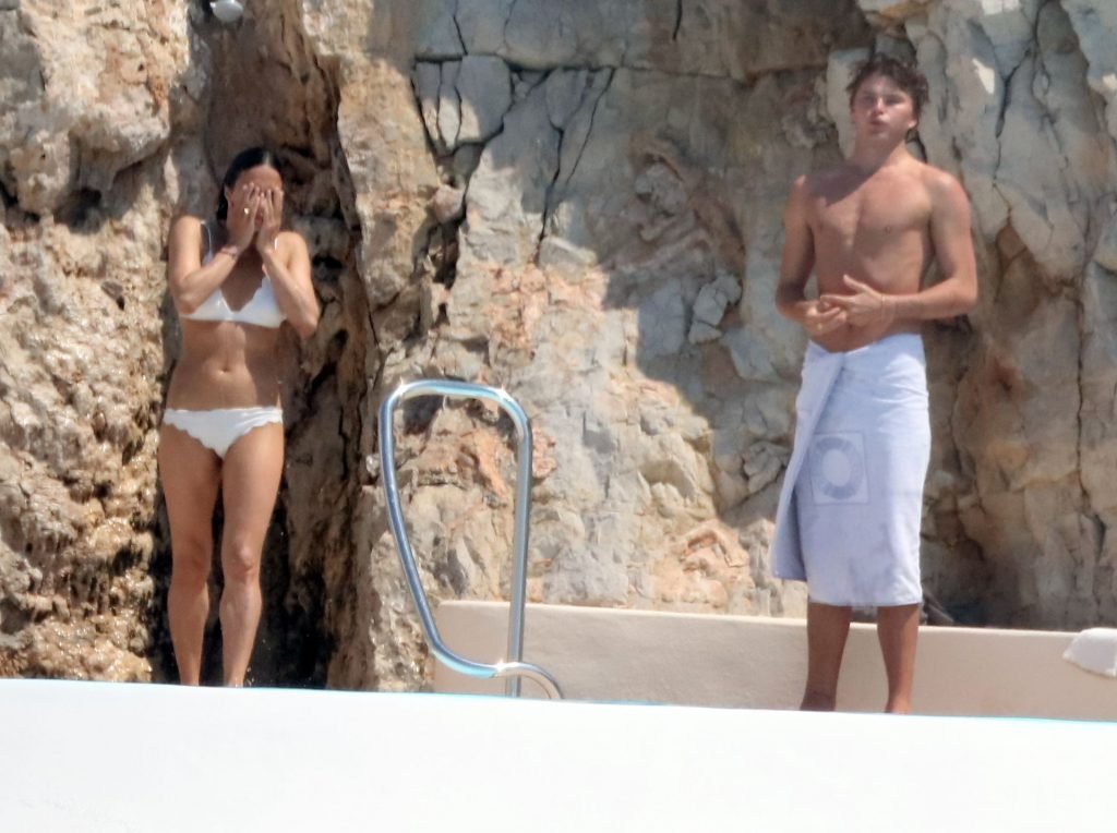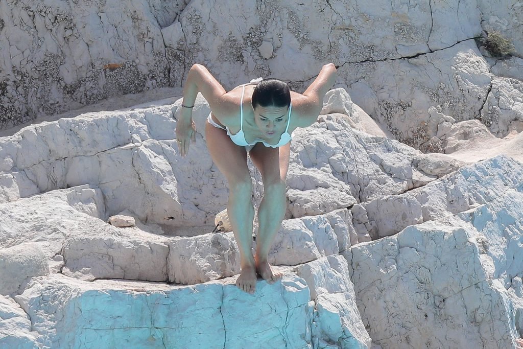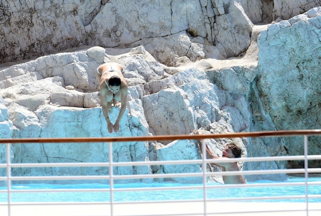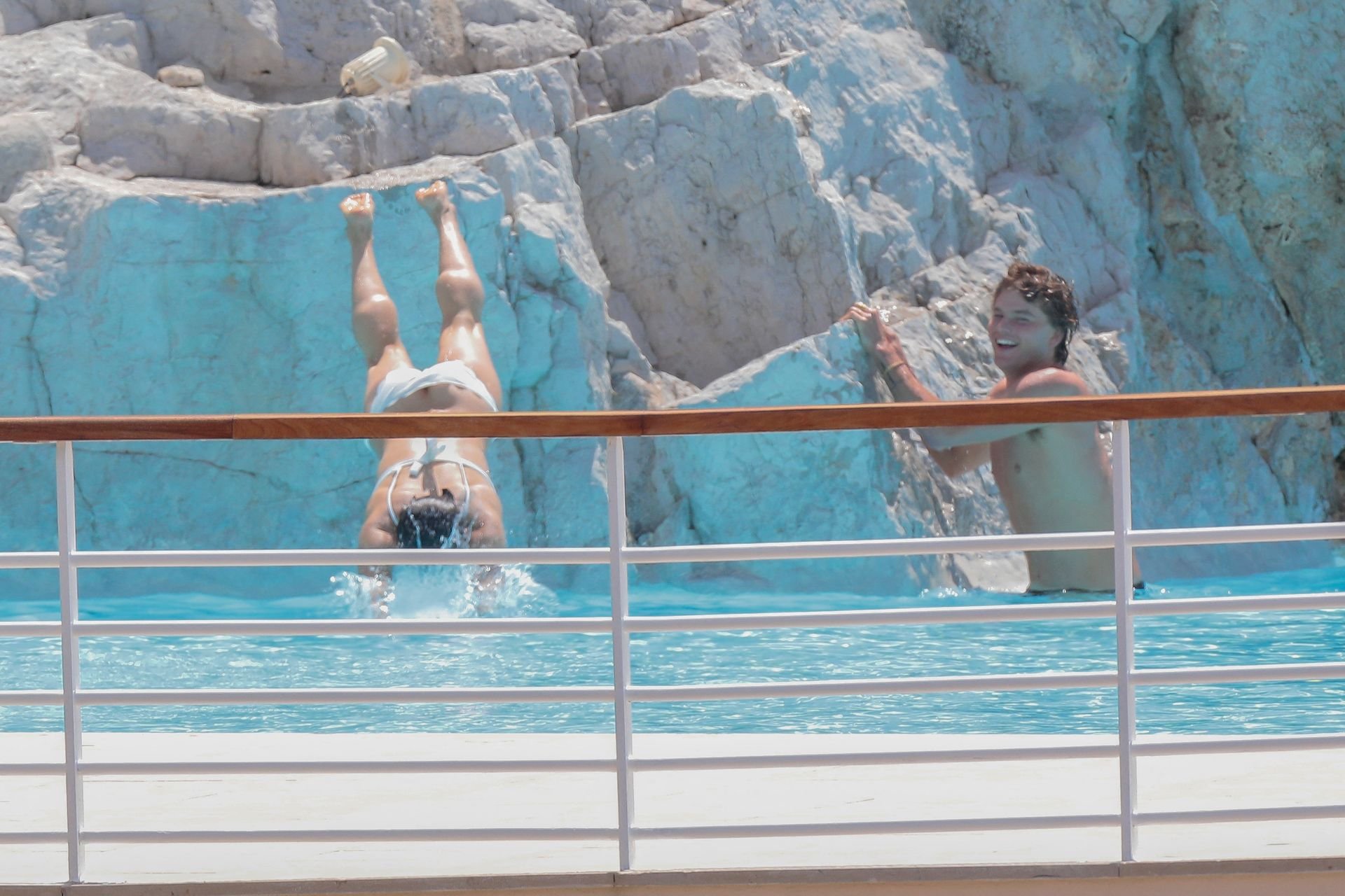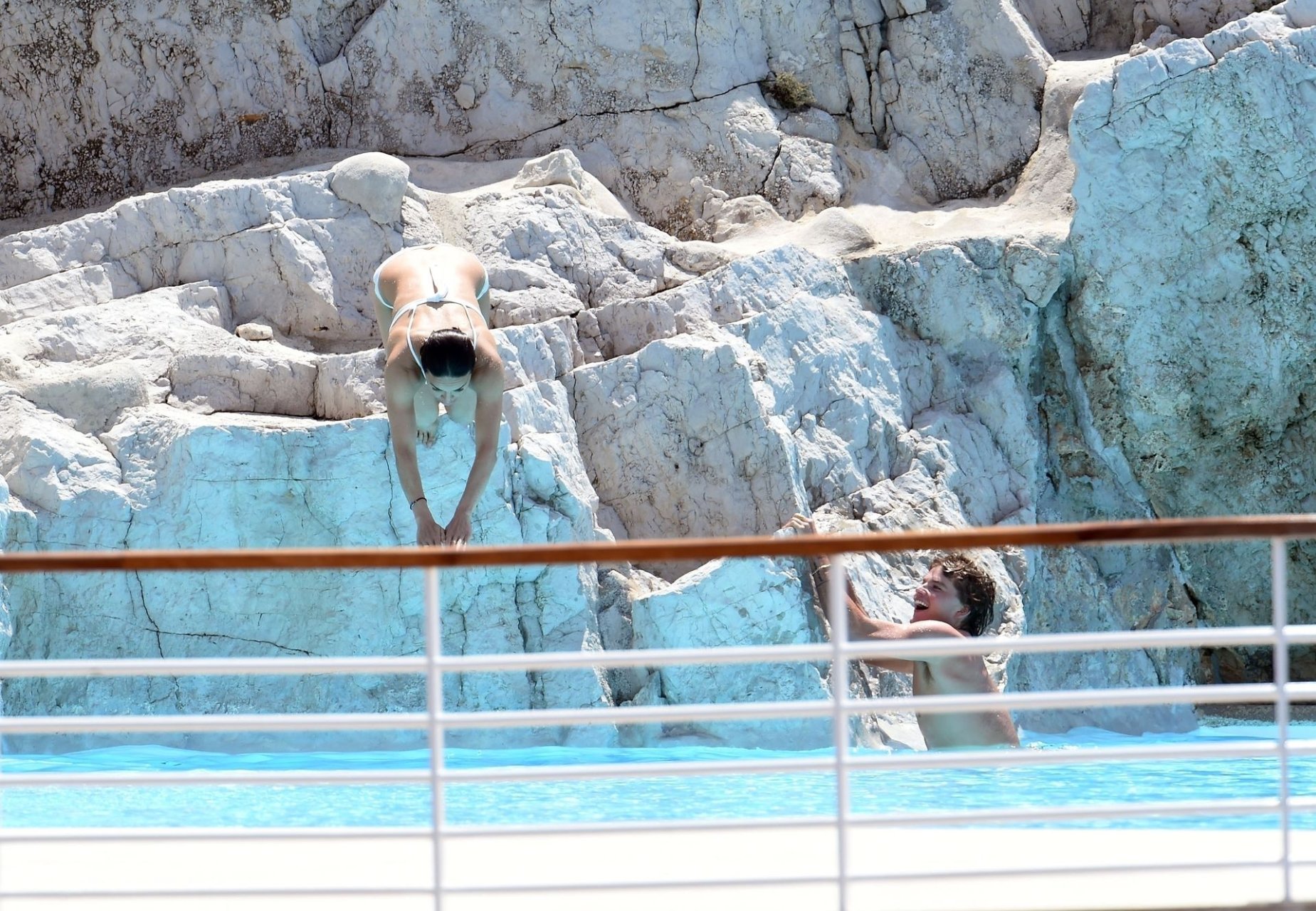 A atriz Michelle Rodriguez foi fotografada exibindo seu corpo tonificado de biquíni enquanto desfrutava de um mergulho com o modelo australiano Jordan Barrett no Hotel du Cap-Eden-Roc em Cannes, 22/05/2019.