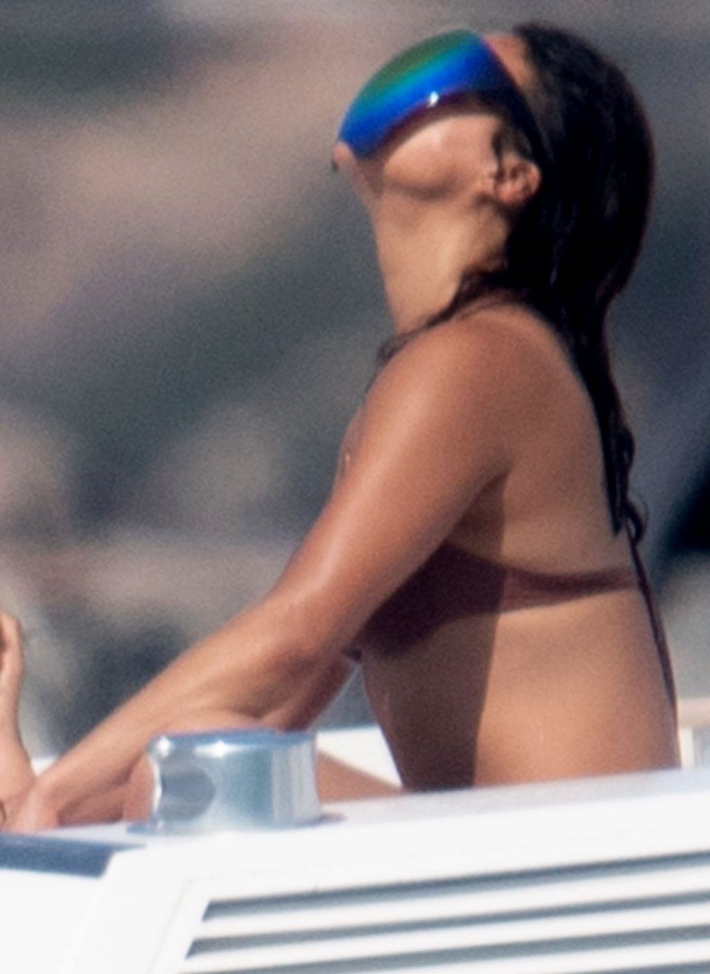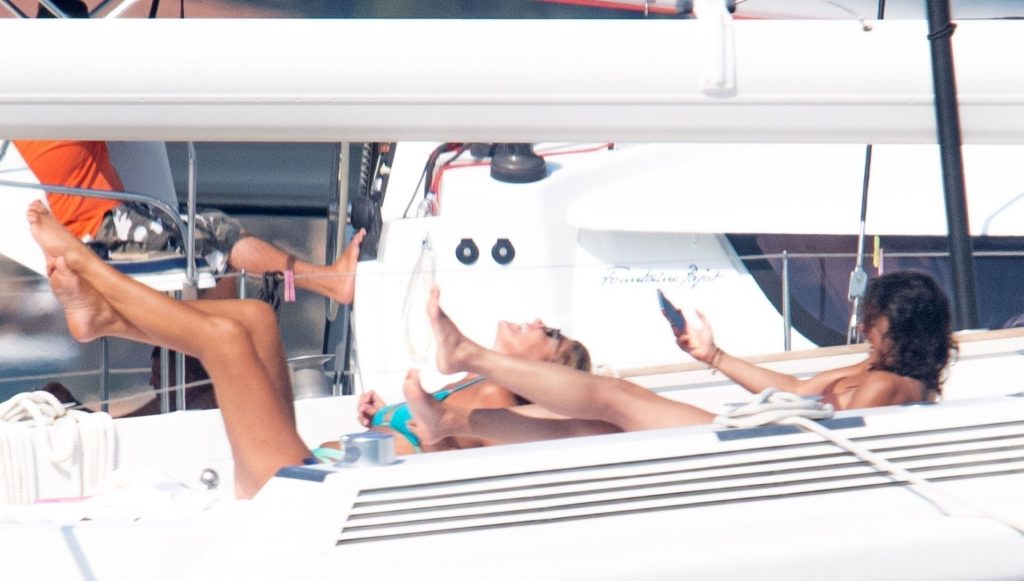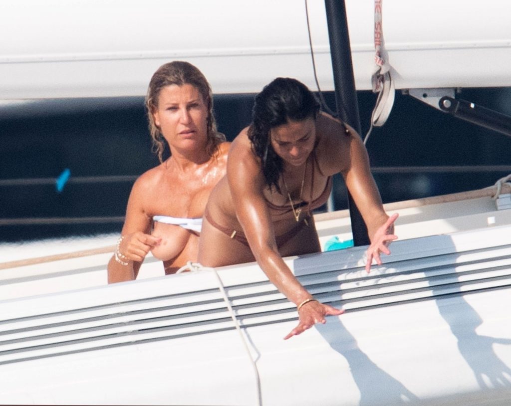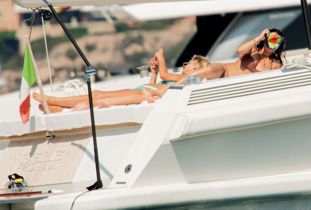A atriz de ‘Velozes e Furiosos’ estava acompanhada pela apresentadora de televisão italiana Raffaella Zardo, que ficou topless enquanto as duas aproveitavam o quente sol italiano em seu barco durante a viagem de férias banhada pelo sol.