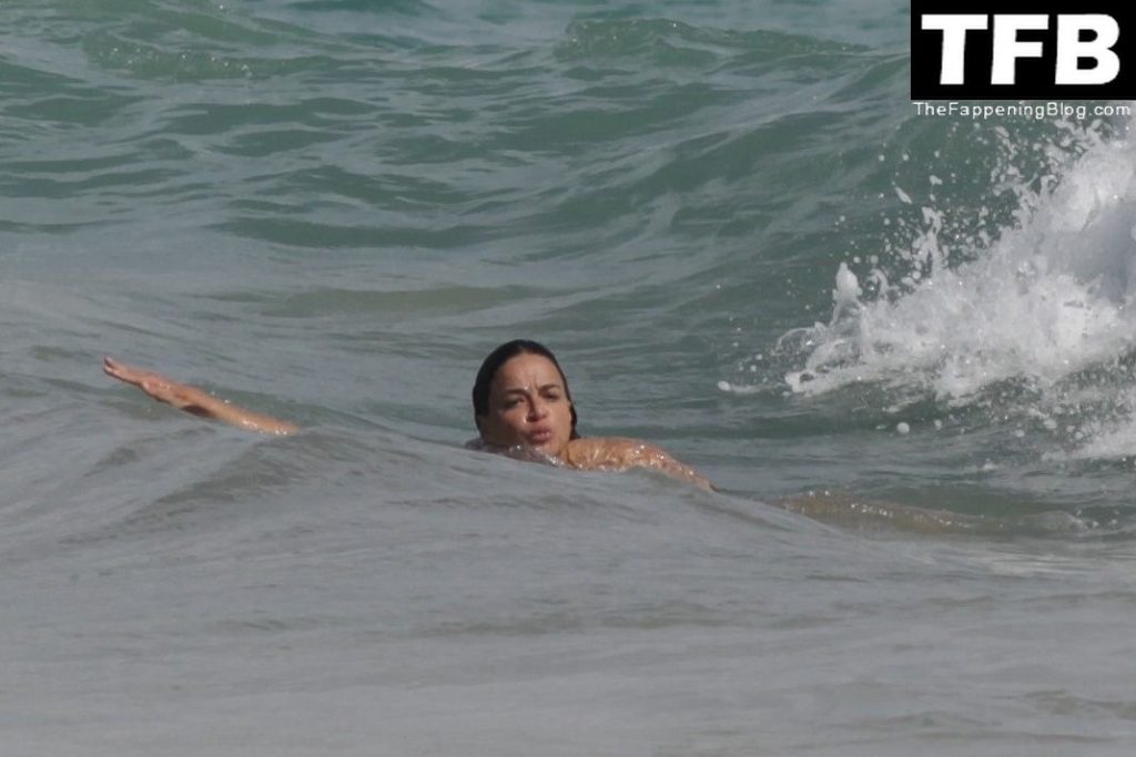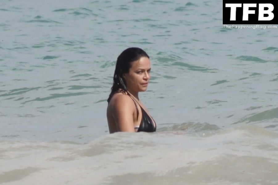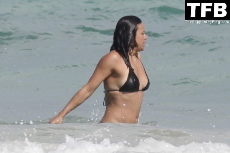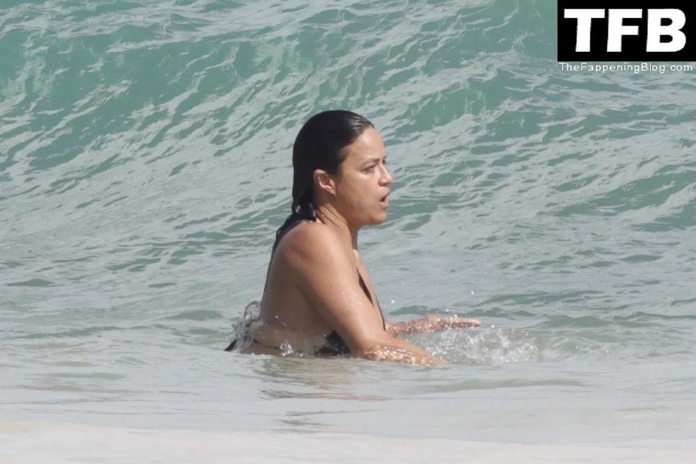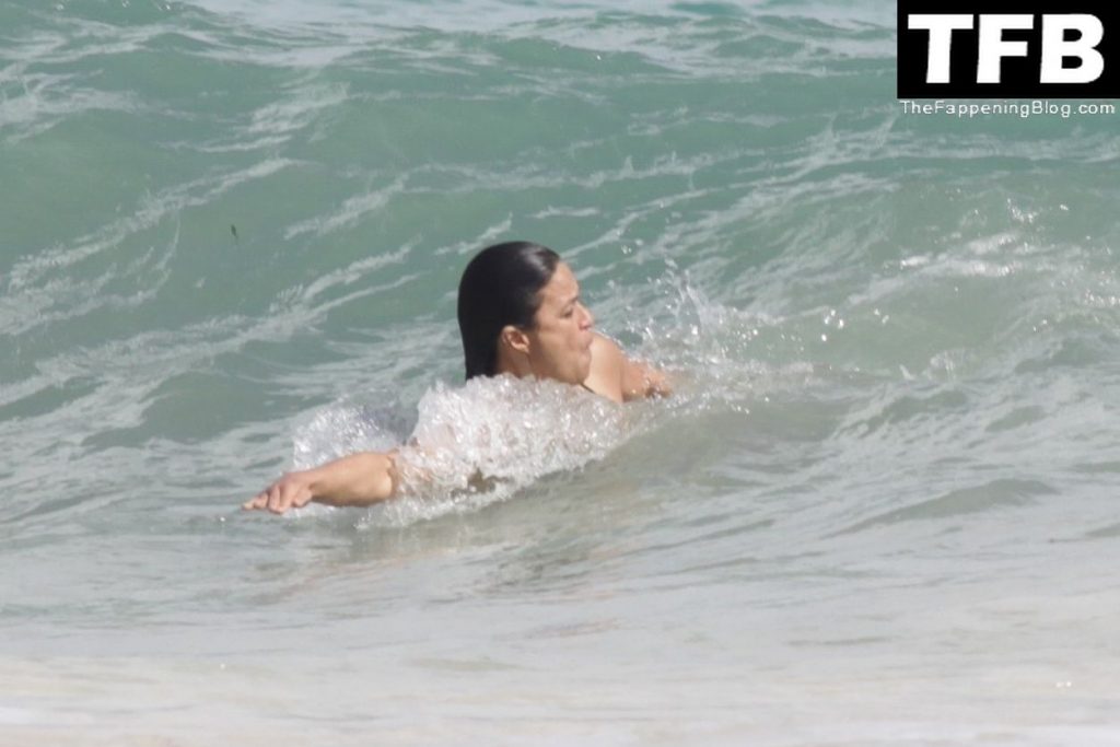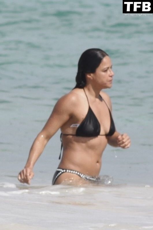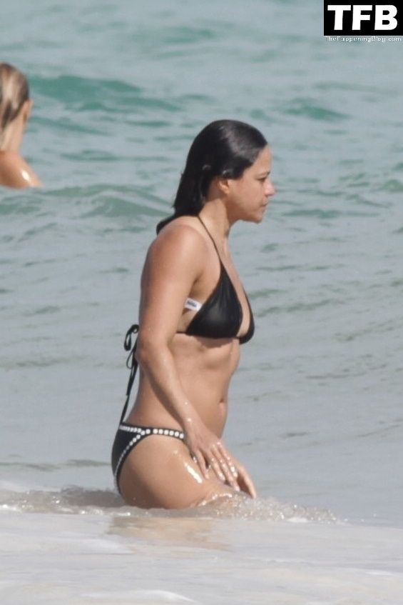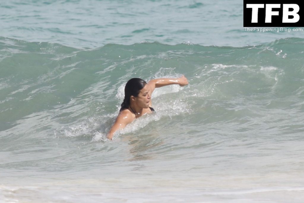 “A atriz de “Velozes e Furiosos” Michelle Rodriguez é vista passando sua temporada de férias aproveitando o sol nas praias de areia de Tulum, México, 20/12/2021. Michelle está toda sorridente enquanto se diverte na água com uma amiga.