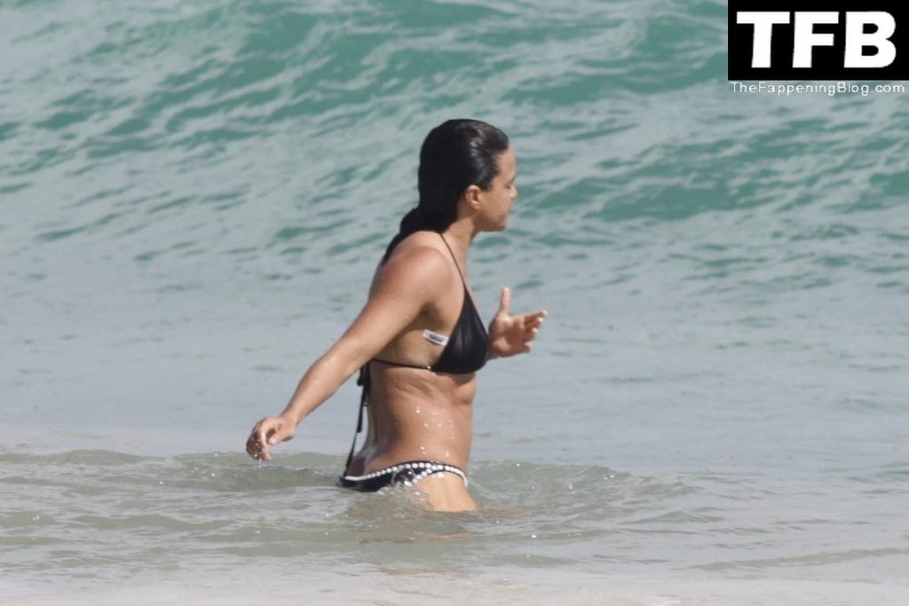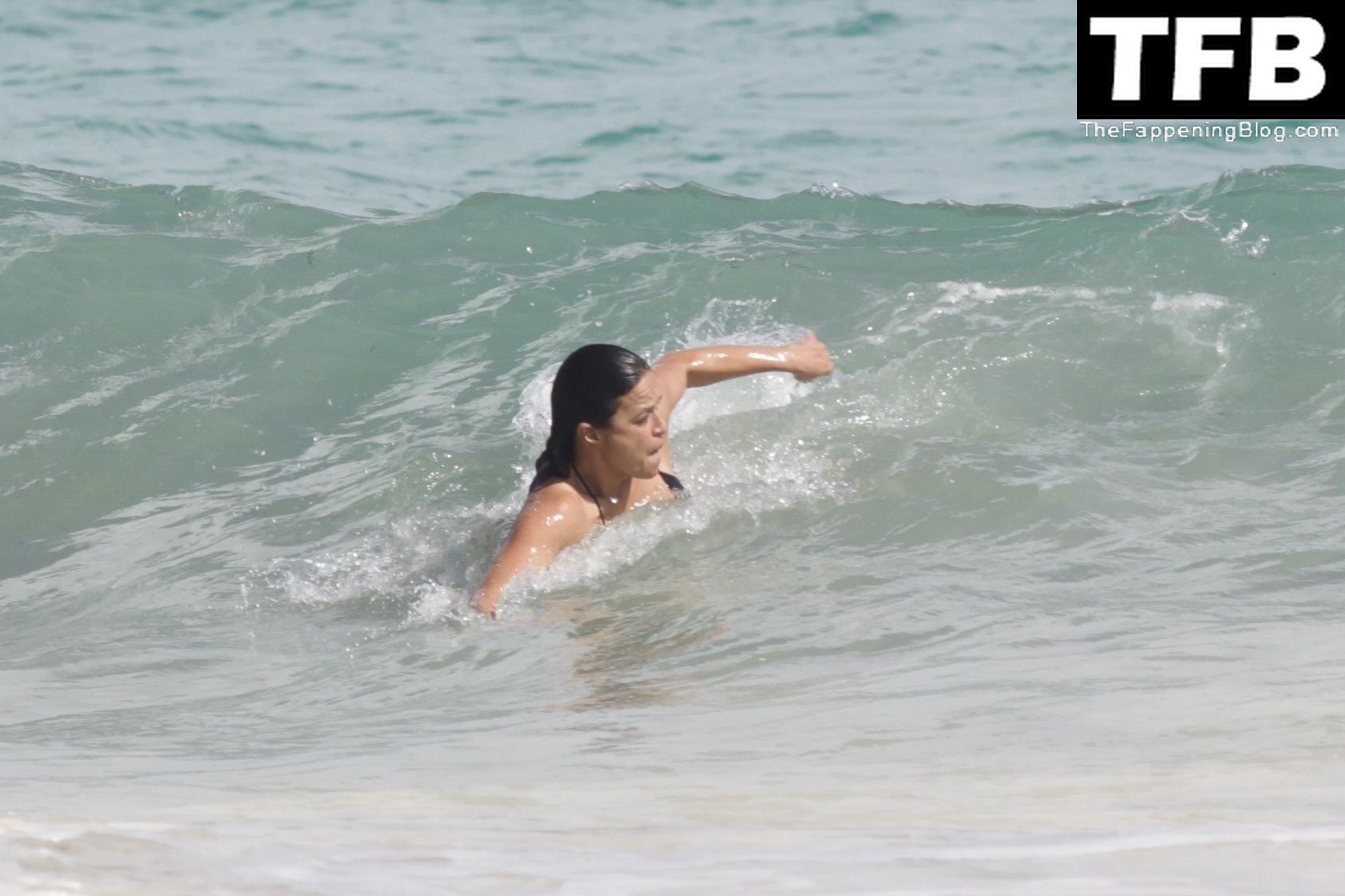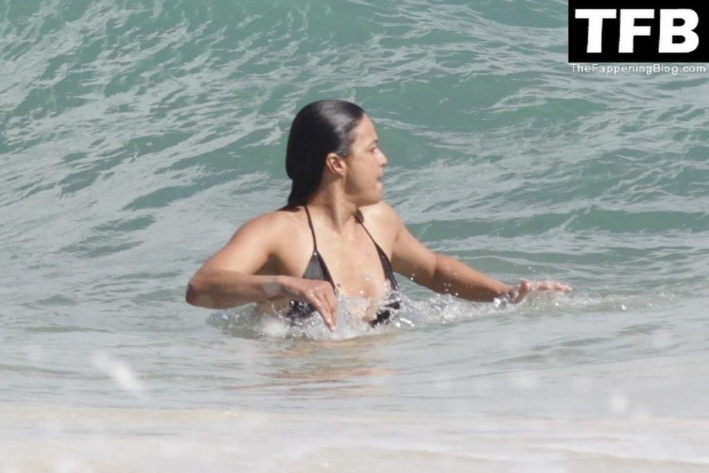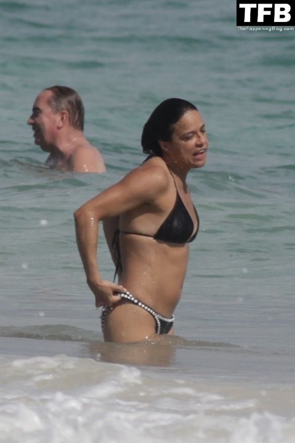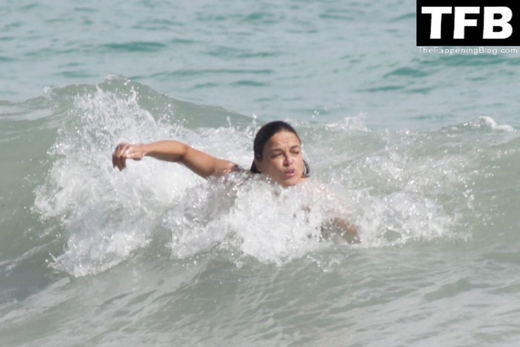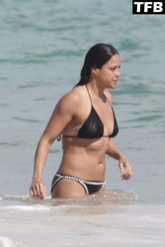 “A atriz de “Velozes e Furiosos” Michelle Rodriguez é vista passando sua temporada de férias aproveitando o sol nas praias de areia de Tulum, México, 20/12/2021. Michelle está toda sorridente enquanto se diverte na água com uma amiga.