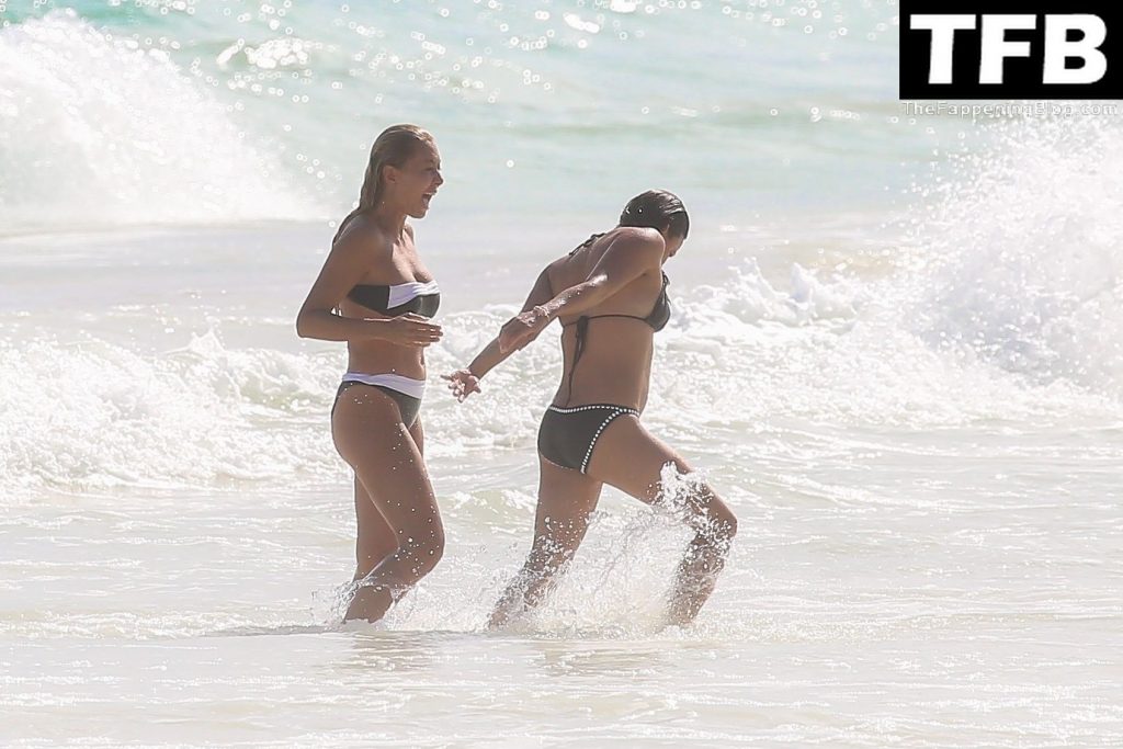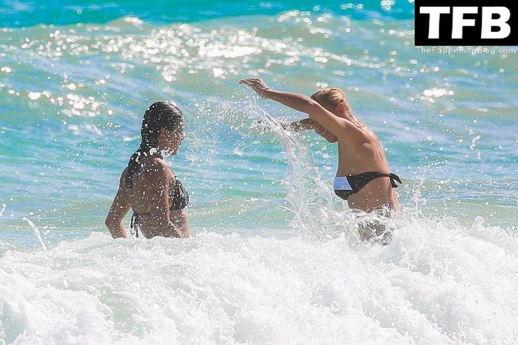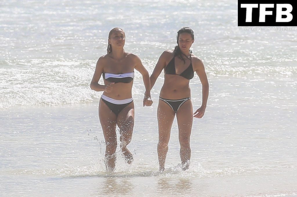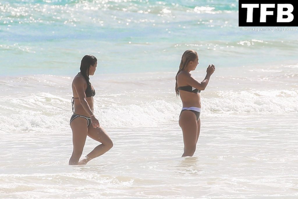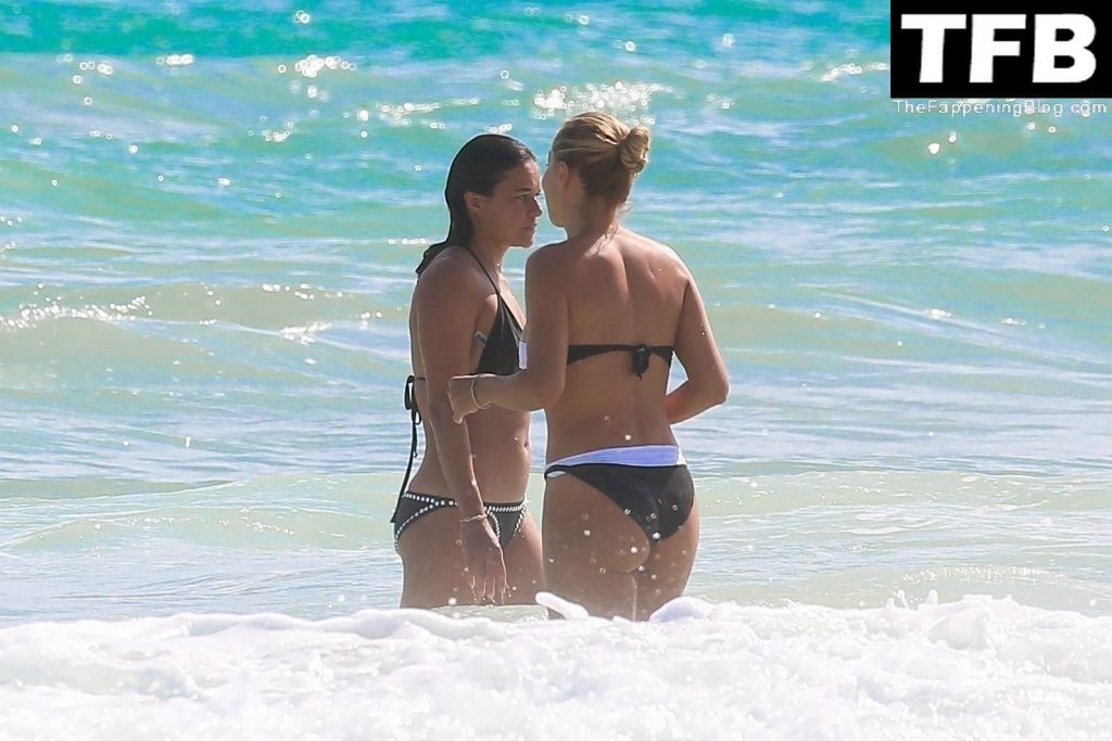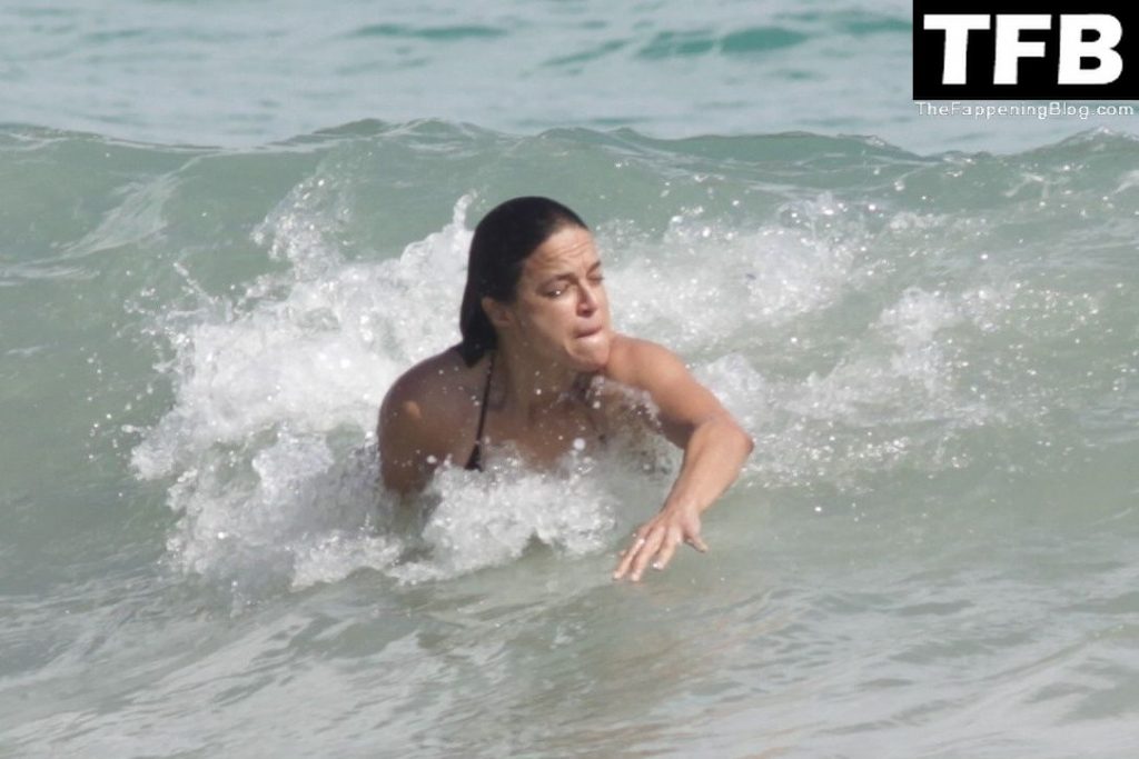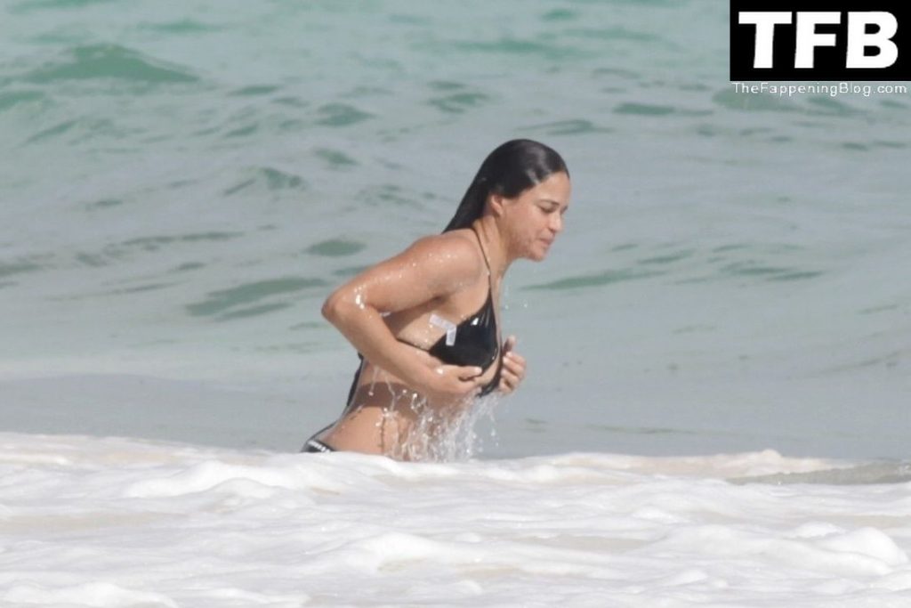 “A atriz de “Velozes e Furiosos” Michelle Rodriguez é vista passando sua temporada de férias aproveitando o sol nas praias de areia de Tulum, México, 20/12/2021. Michelle está toda sorridente enquanto se diverte na água com uma amiga.