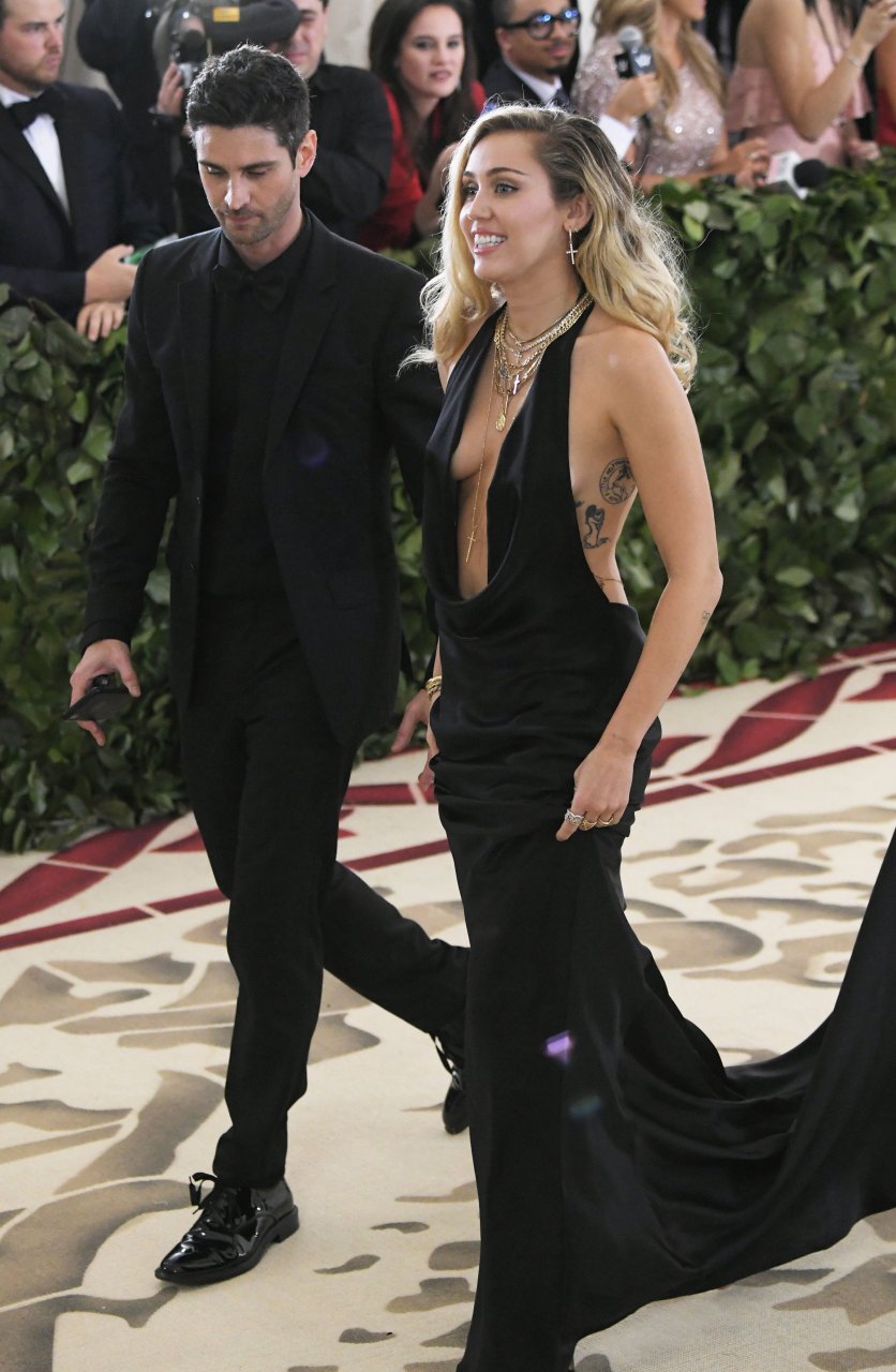Miley Cyrus comparece ao MET Costume Institute Gala em Nova York, 07/05/2018. A cantora de 25 anos usou um deslumbrante vestido preto sem sutiã.